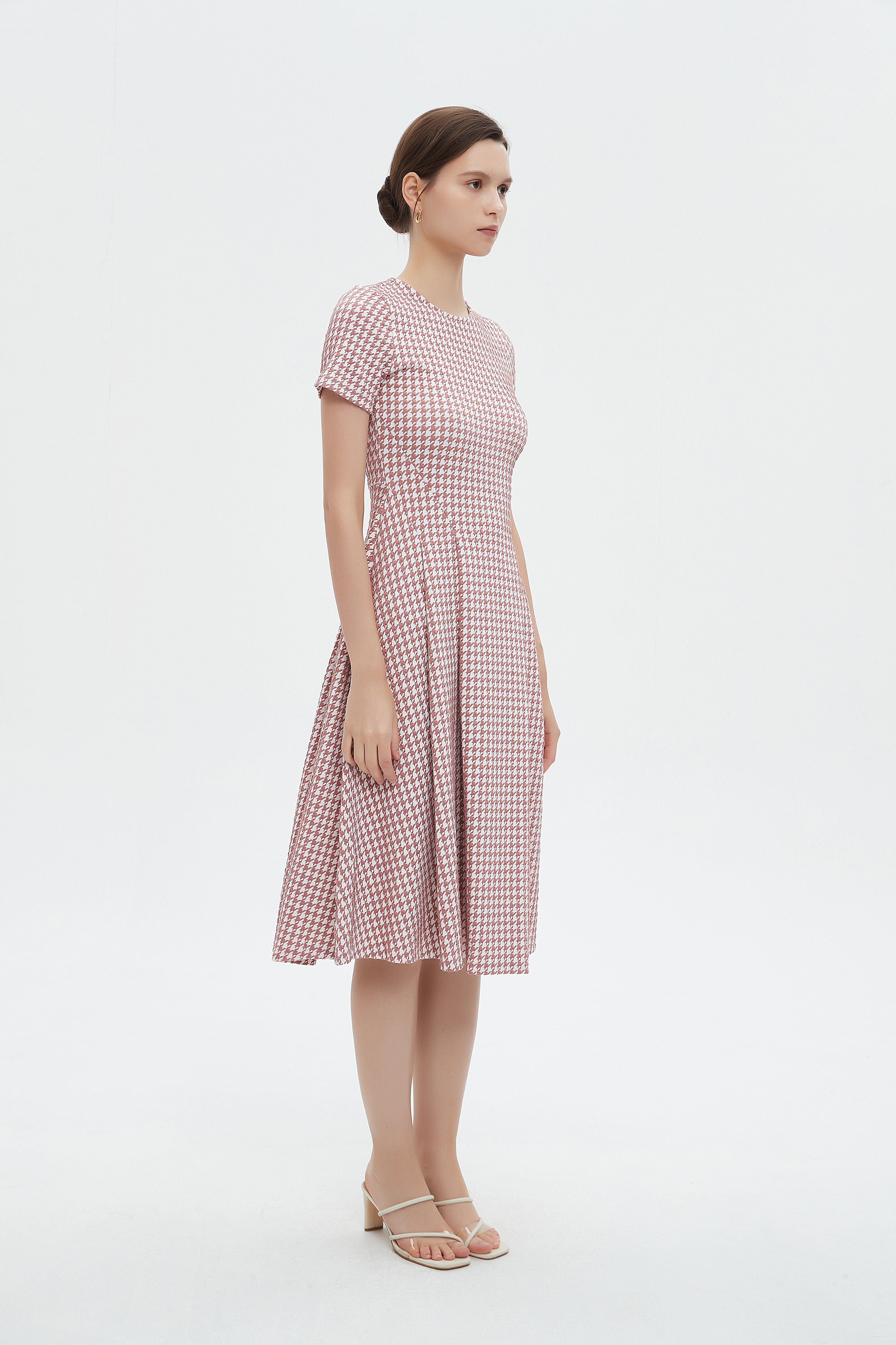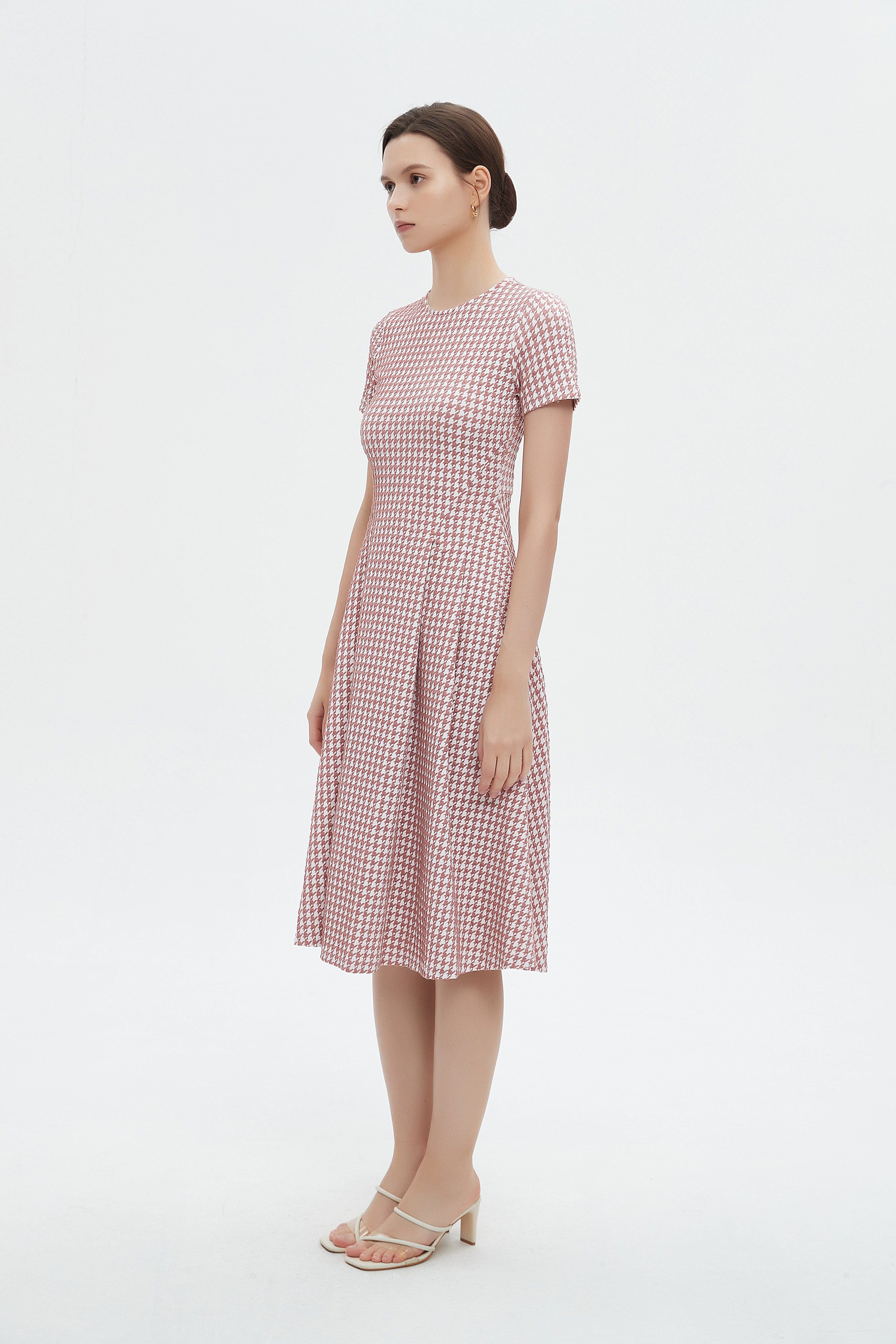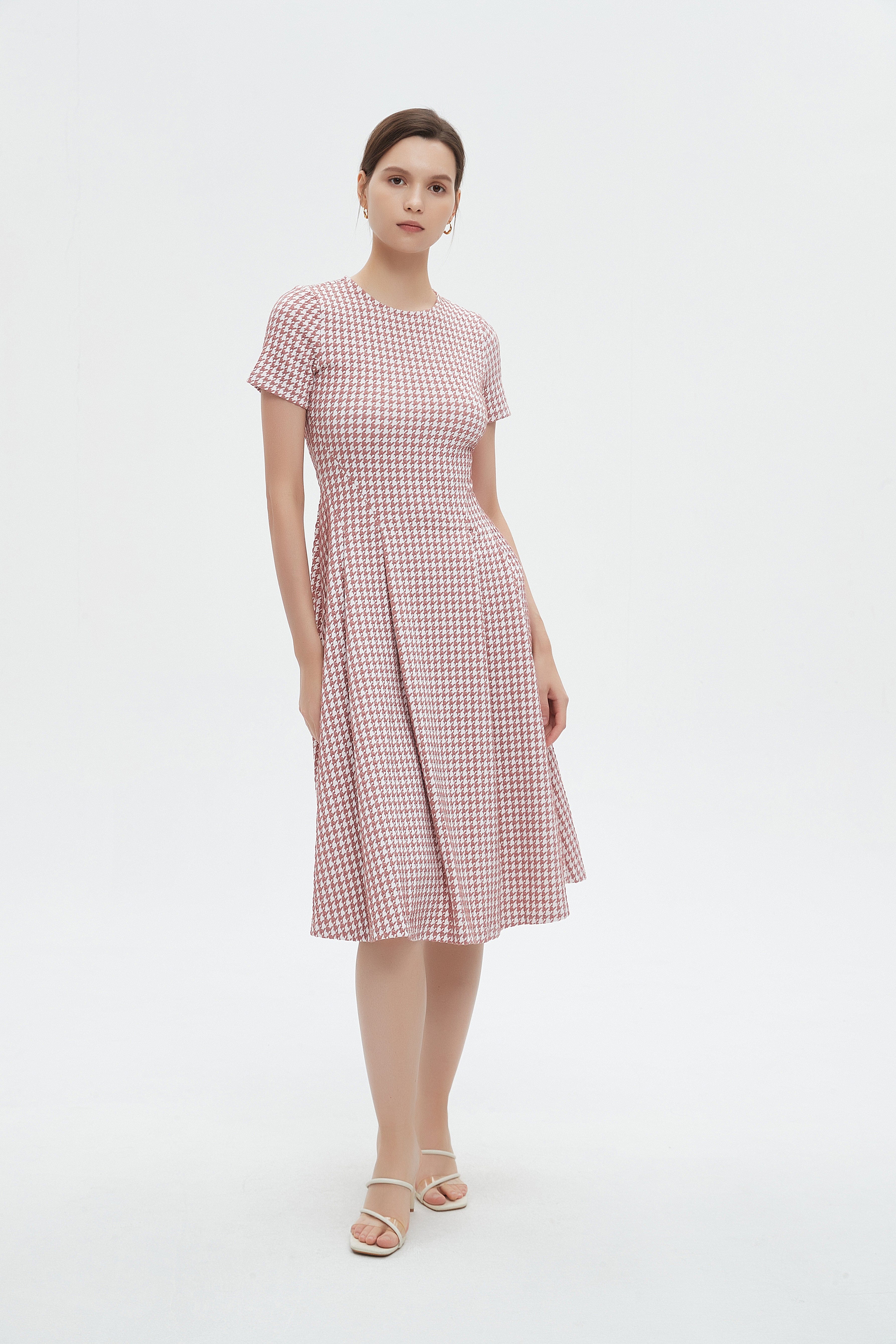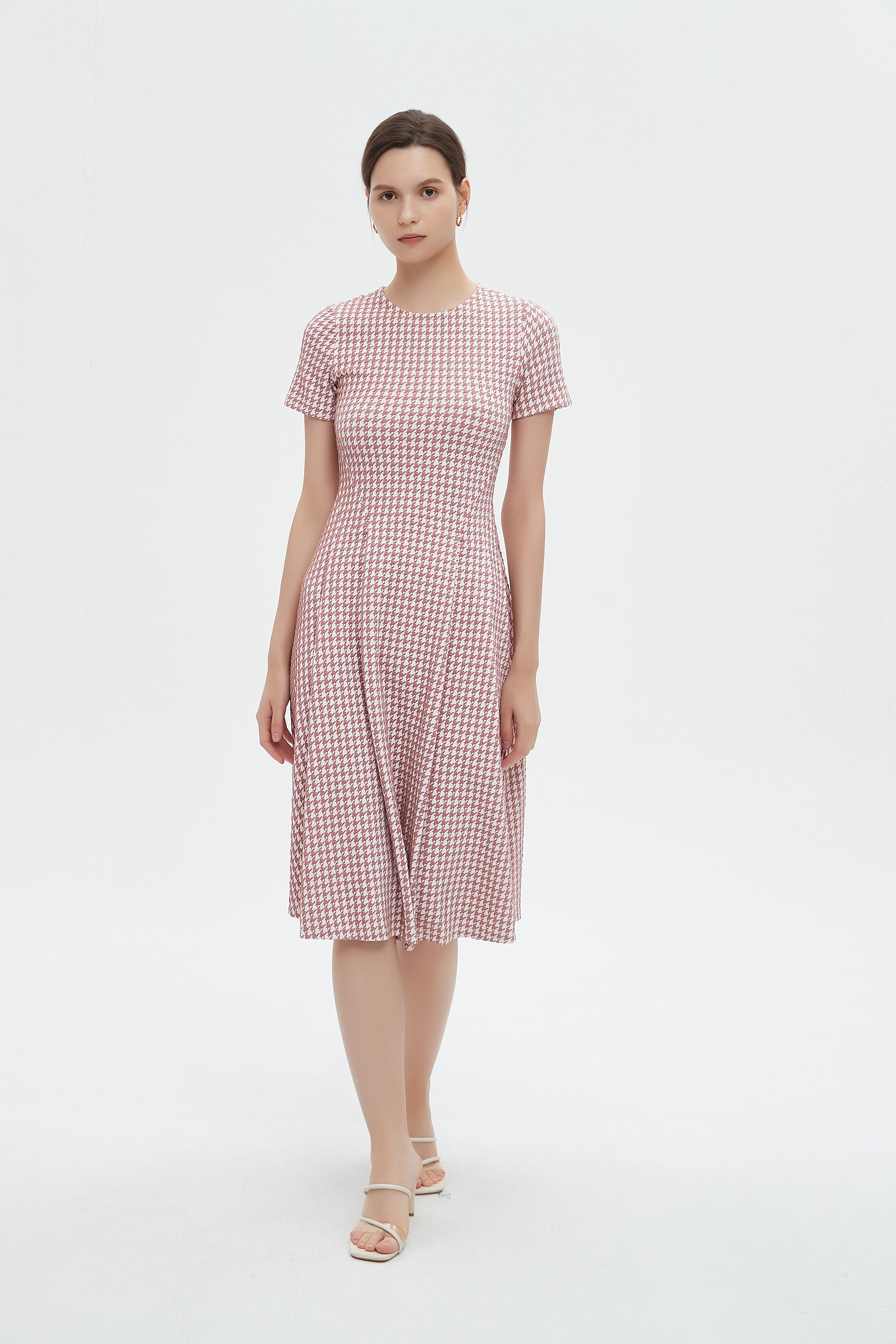 فستان ميدي بأكمام قصيرة بكسرات على اخصر
