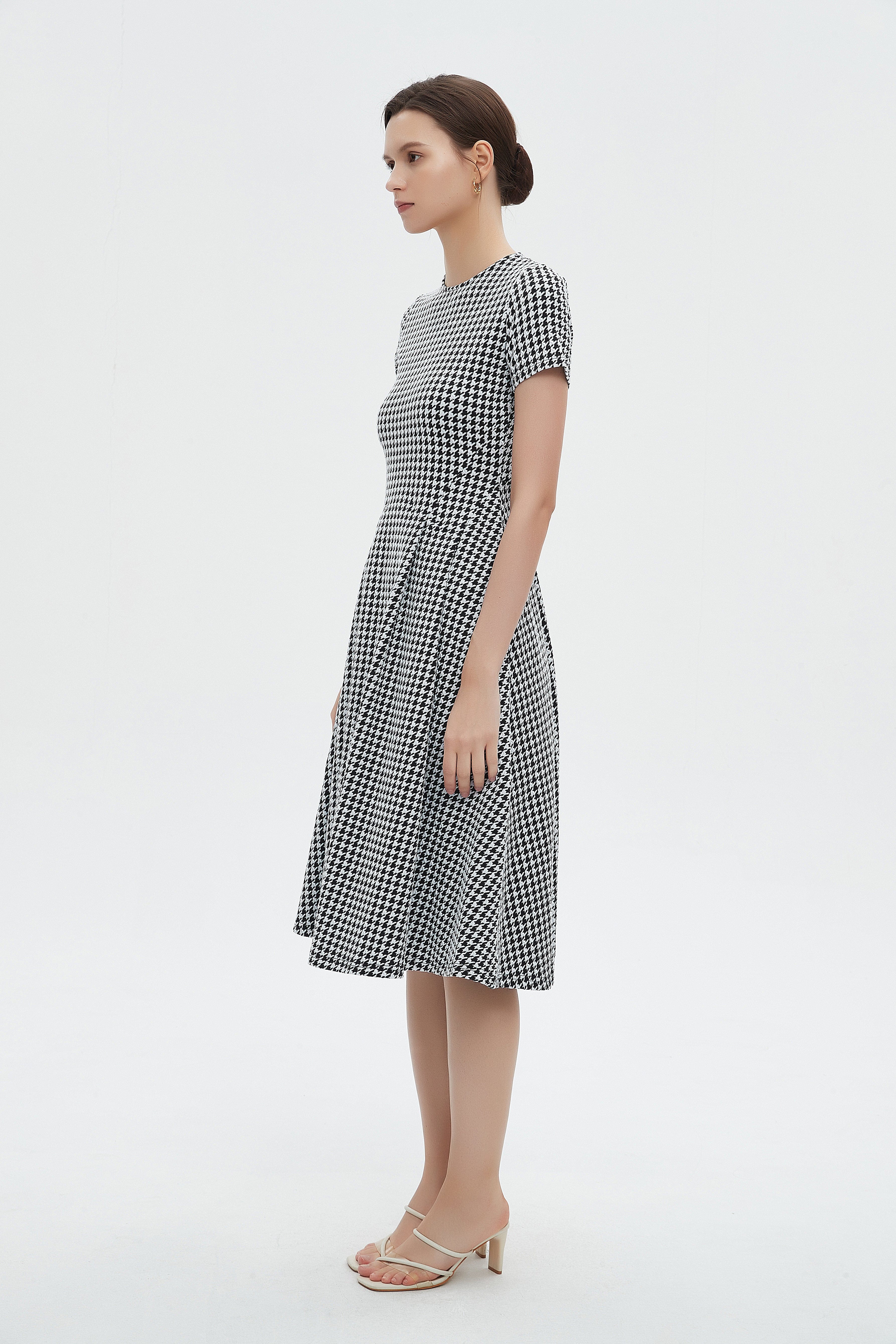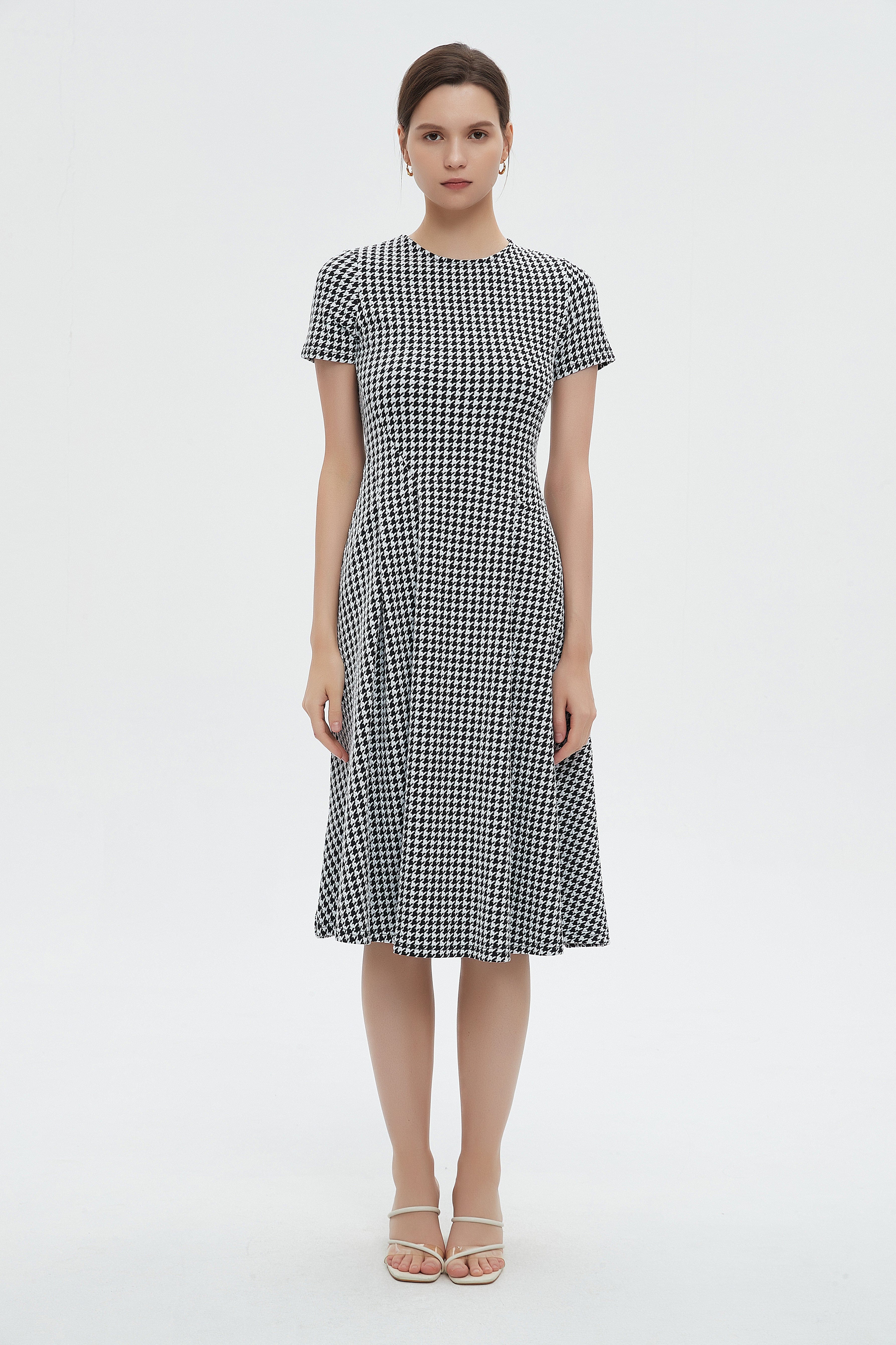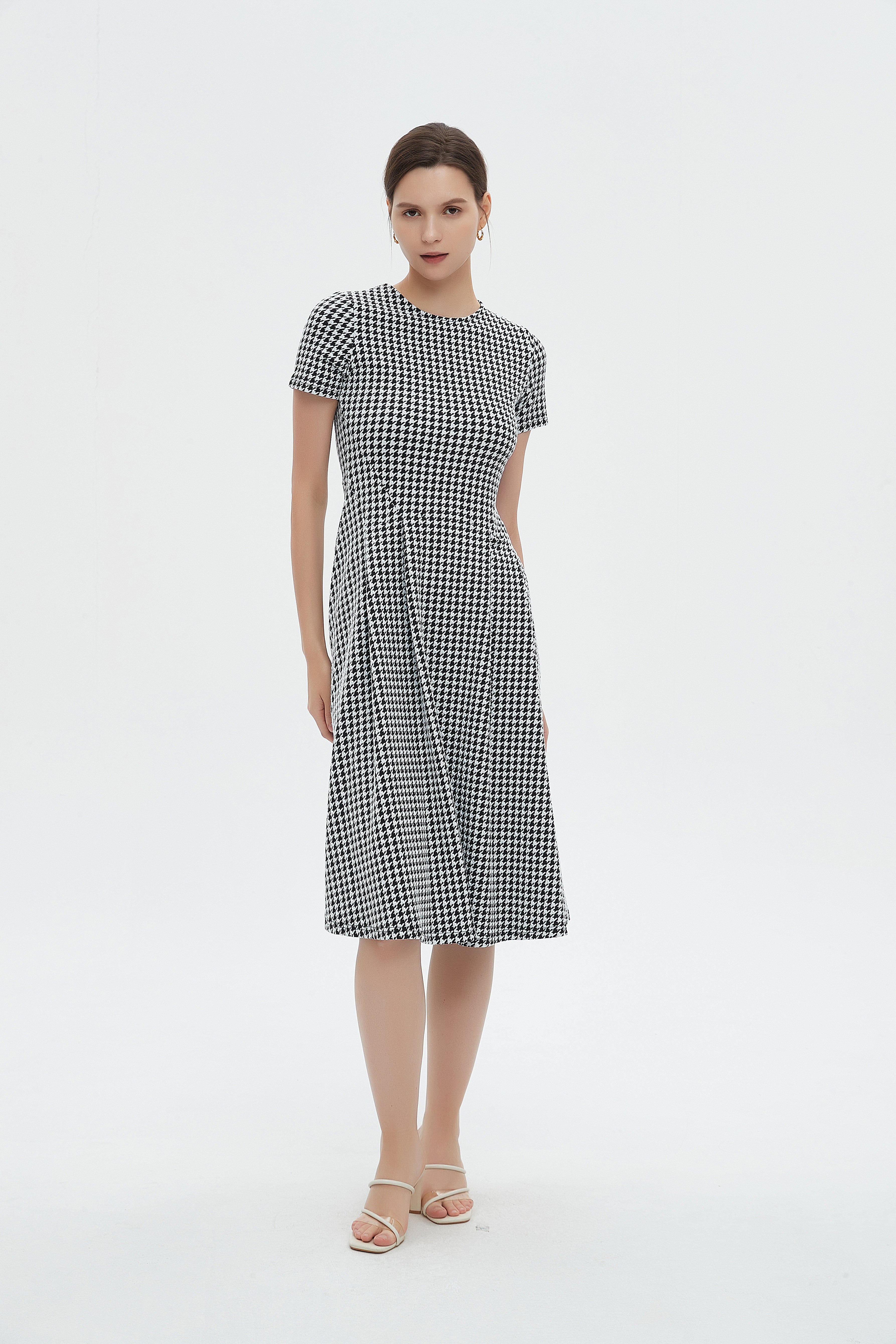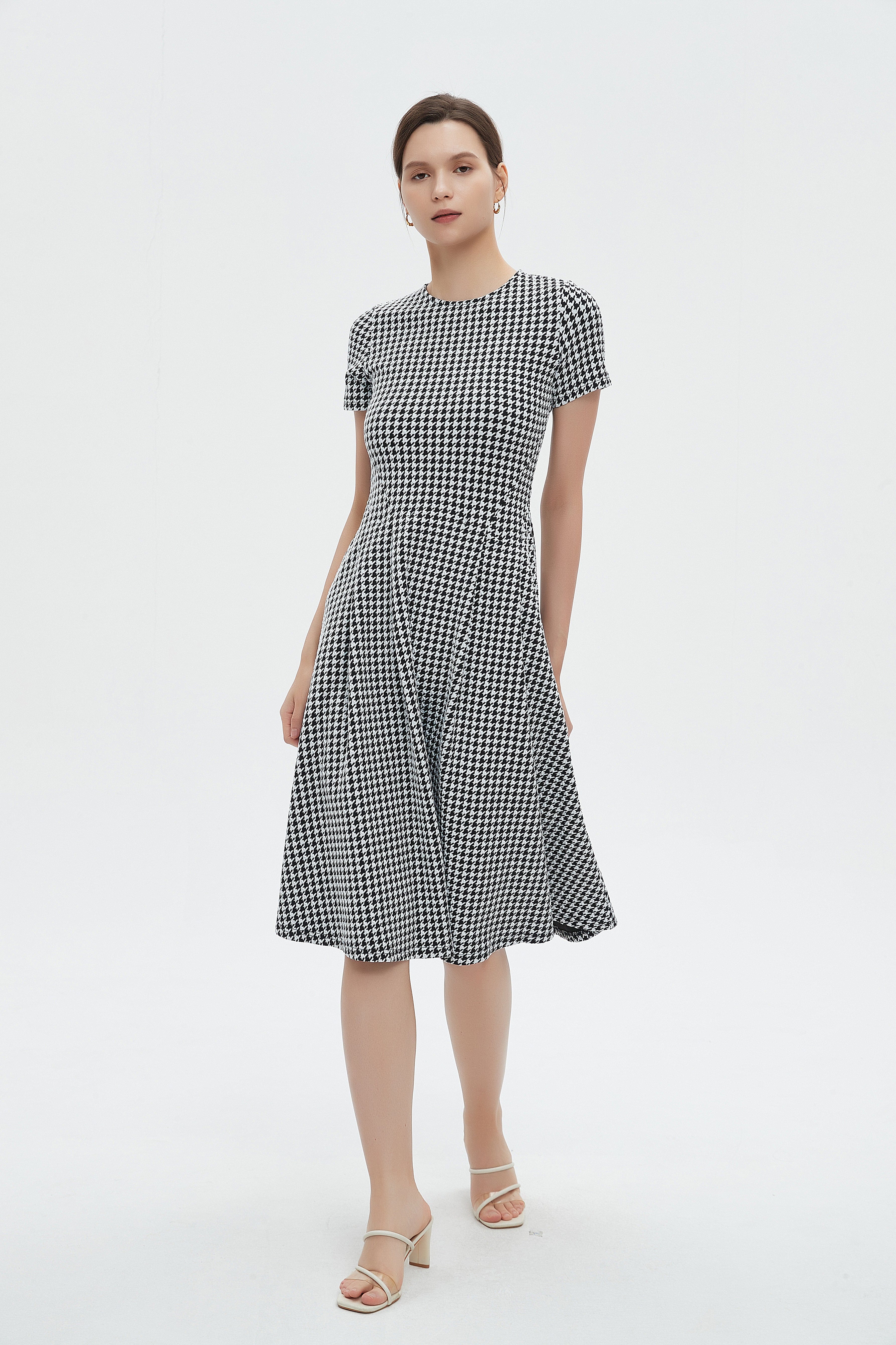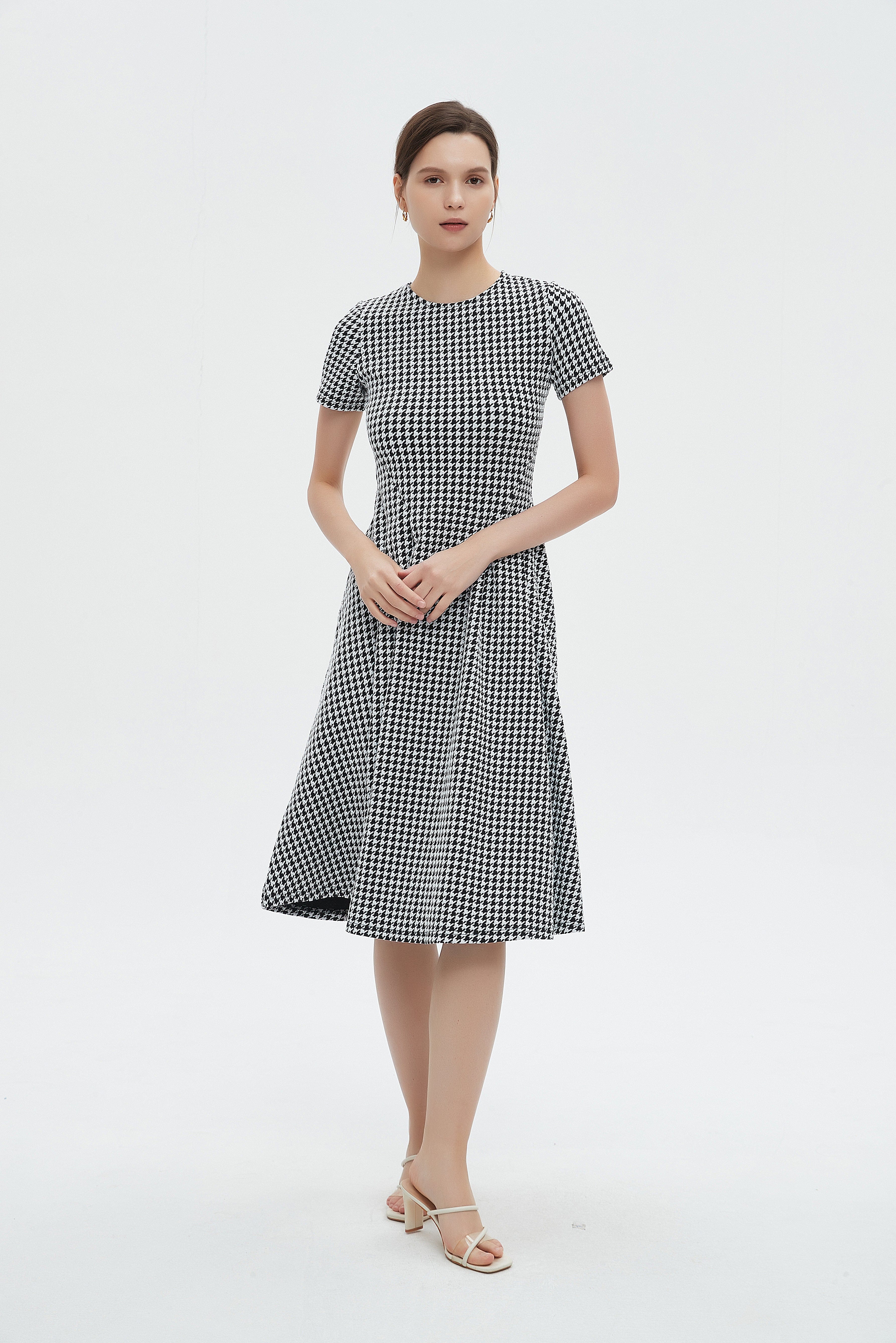 لو تبحثين عن فستان يجمع الراحة مع لمسة عصرية، هذا الفستان بقصة A هو خيارك المثالي. قماشه مزيج بوليستر 95% وإيلاستين 5% يمنحك مرونة خفيفة ويحافظ على الشكل حتى بعد الاستخدام، بسماكة متوسطة مناسبة لكل المواسم. التصميم بطول ميدي وياقة مستديرة مع كم قصير يخلق إطلالة سهلة ومريحة، ونقوشه الهندسية بالأسود والأبيض تضيف شخصية واضحة. الفستان بدون بطانة وبدون جيوب وبدون حزام مما يجعله بسيطاً وأنيقاً في آنٍ واحد، وقصة عادية تعطي ملاءمة مريحة للبالغات. مثالي للخروجات الكاجوال، جلسات القهوة أو لقاءات مسائية هادئة؛ ستحبين كيف يتحرك معك ويظل عملياً في خزانة ملابسك. اعثري على مقاسك في فاشن السعودية وأضيفي هذه القطعة المتنوعة إلى خزانة ملابسك اليوم.