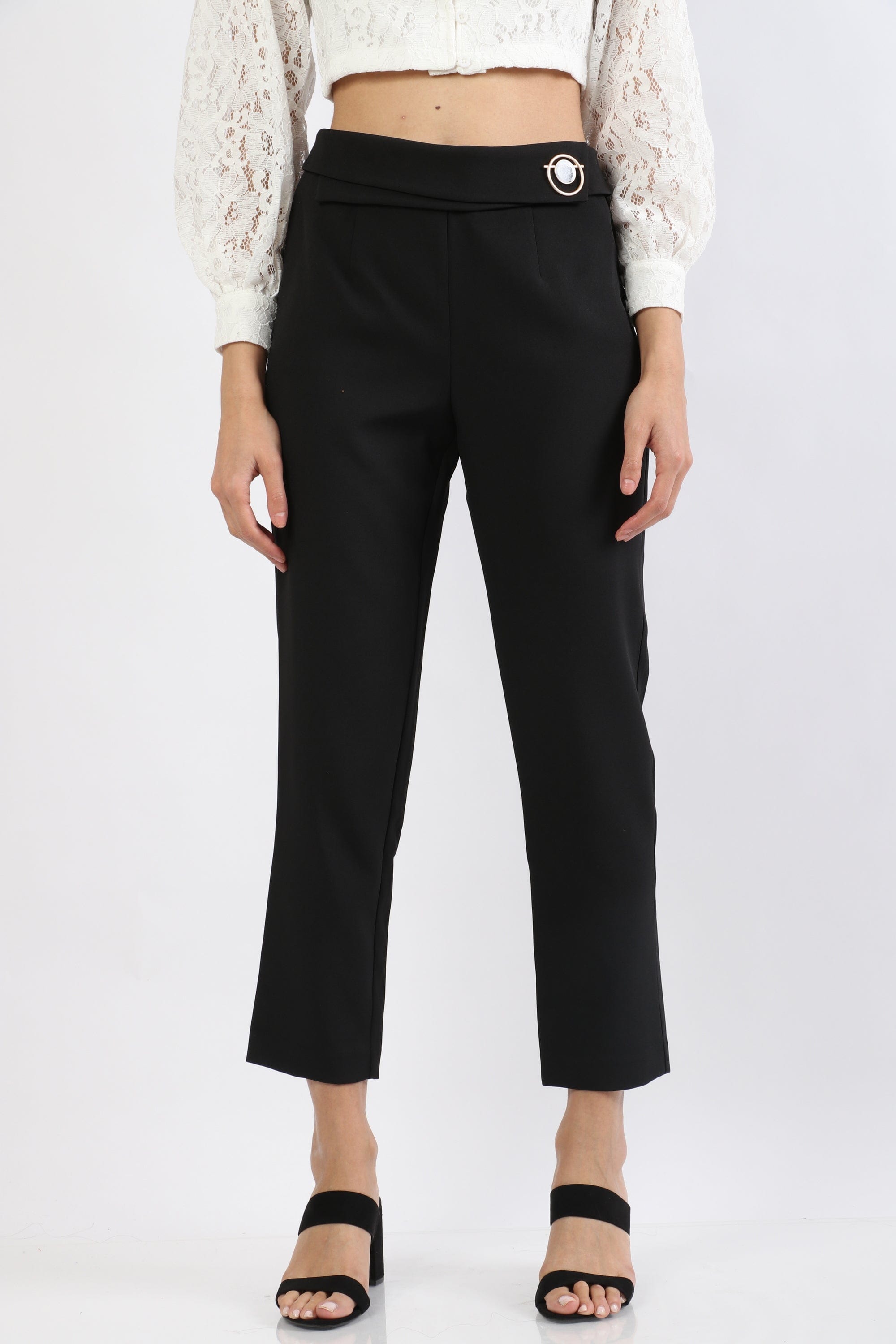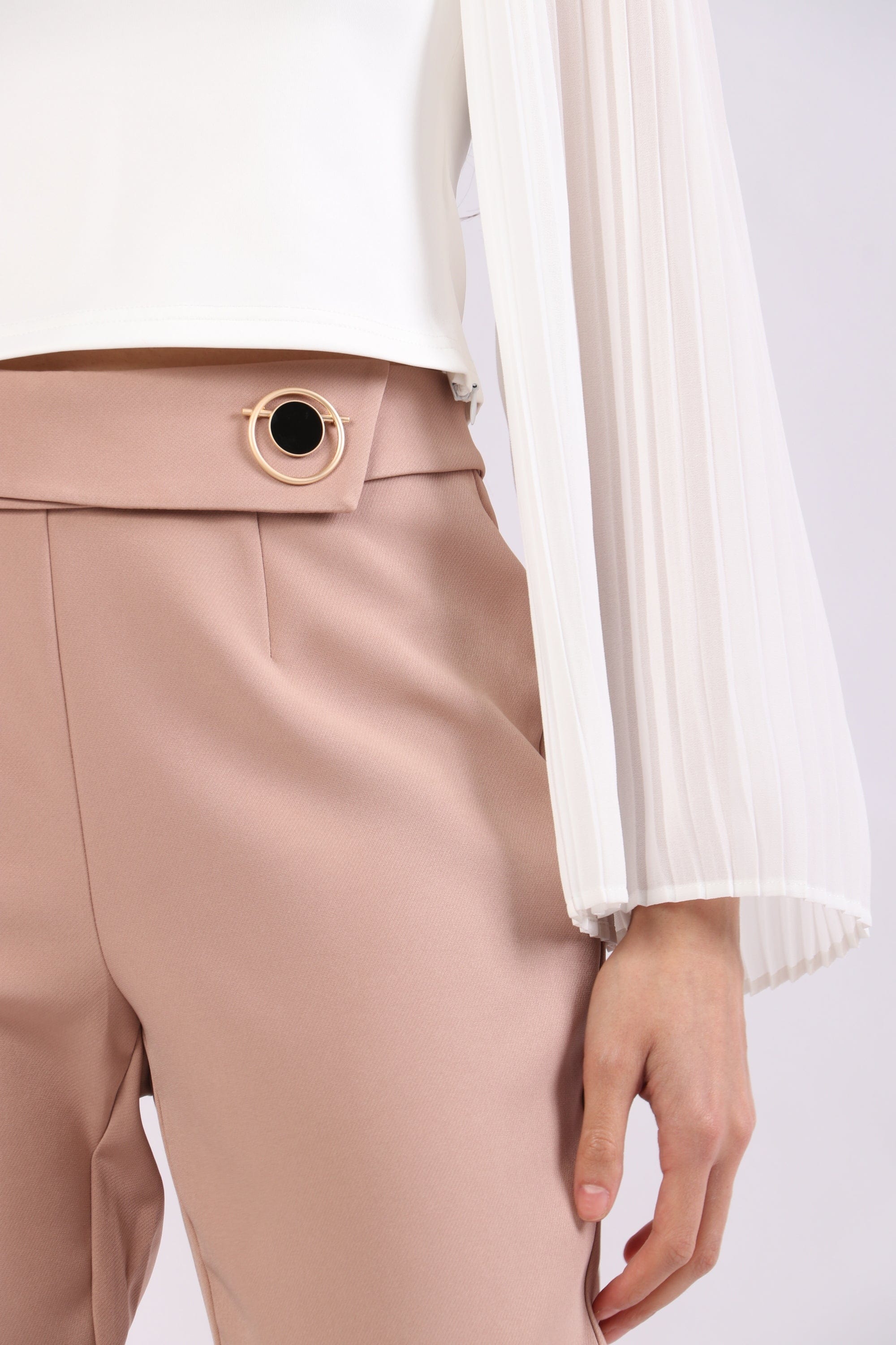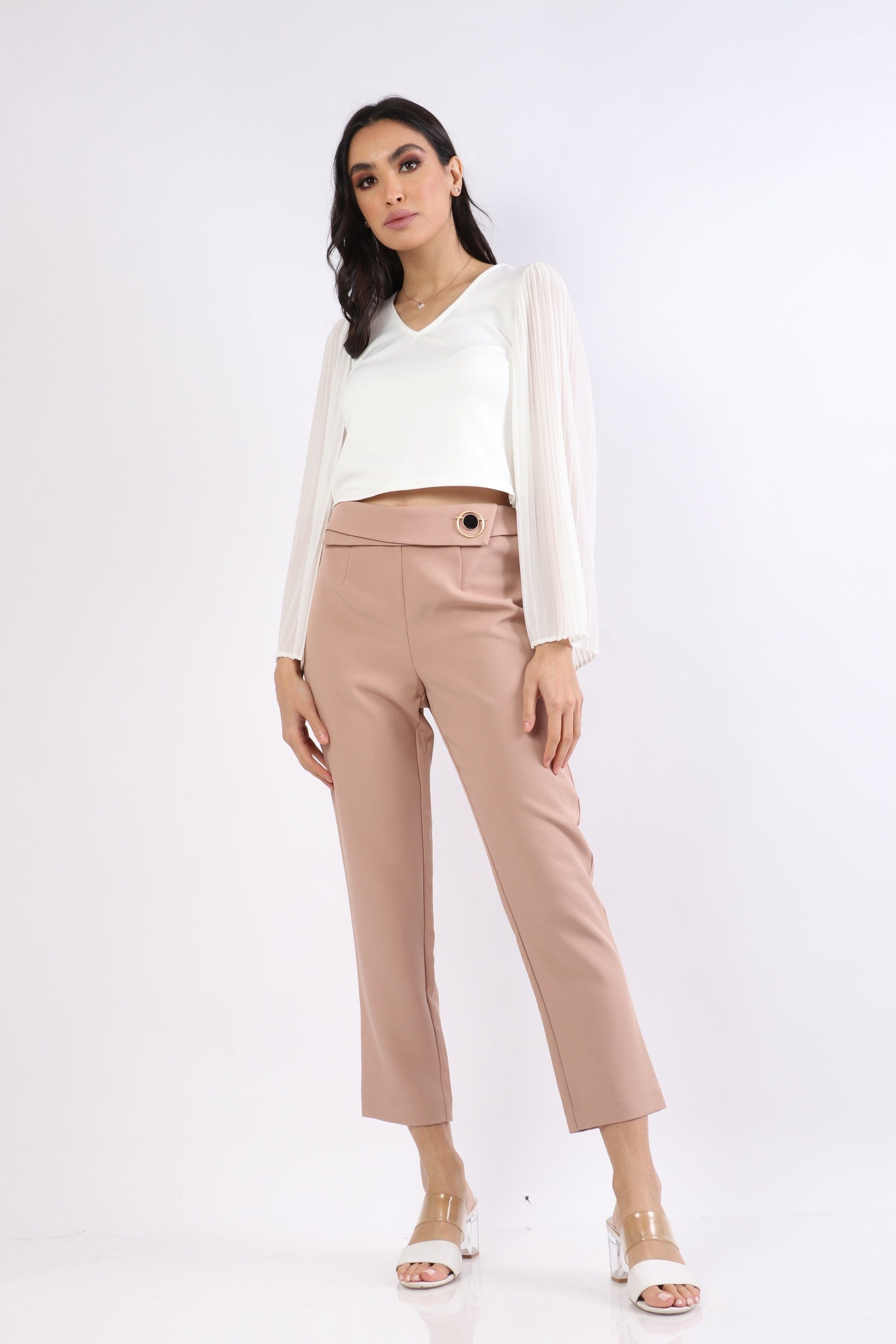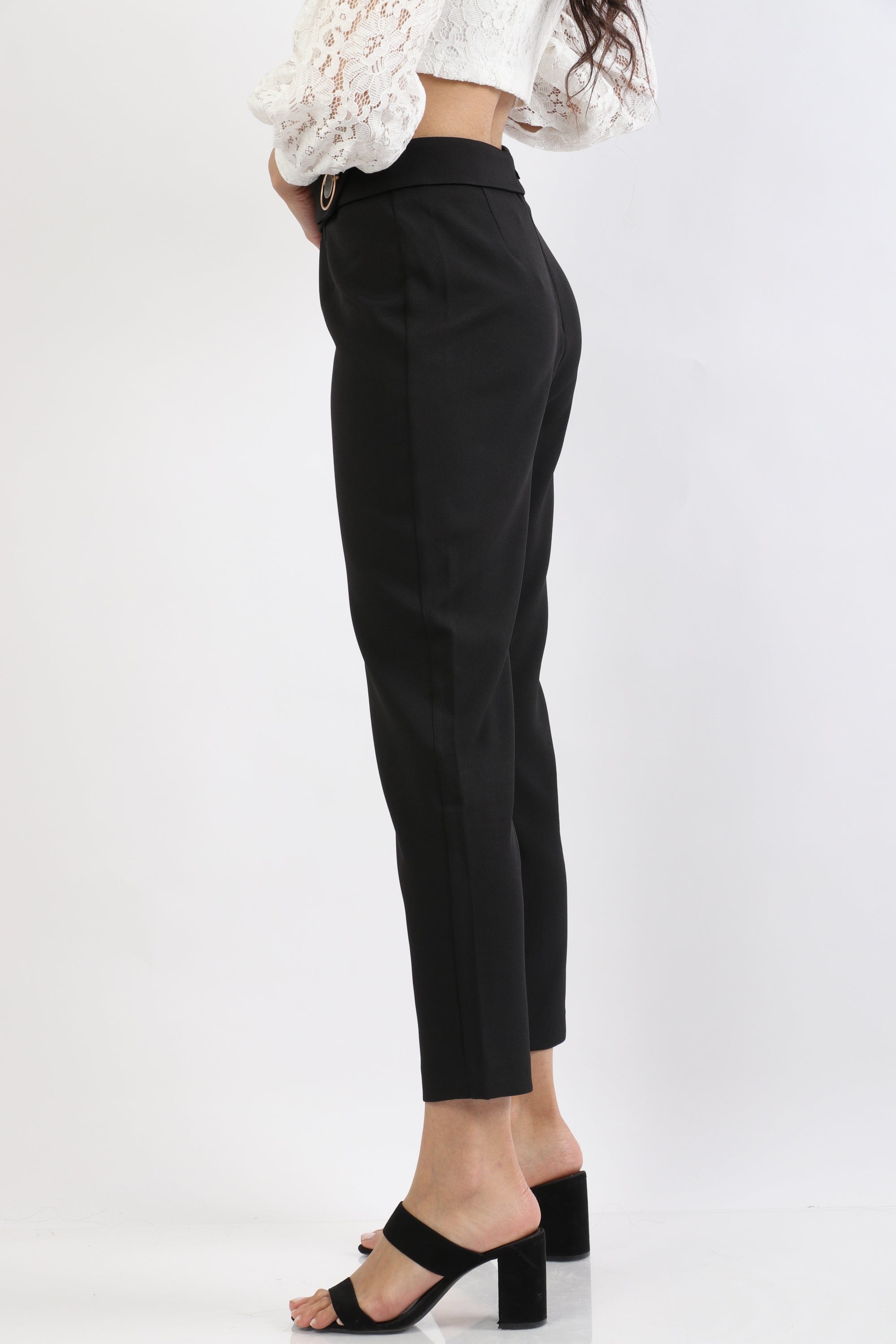 بنطلون كلاسيك سادة طويل مع حلقة على الخصر نسائي