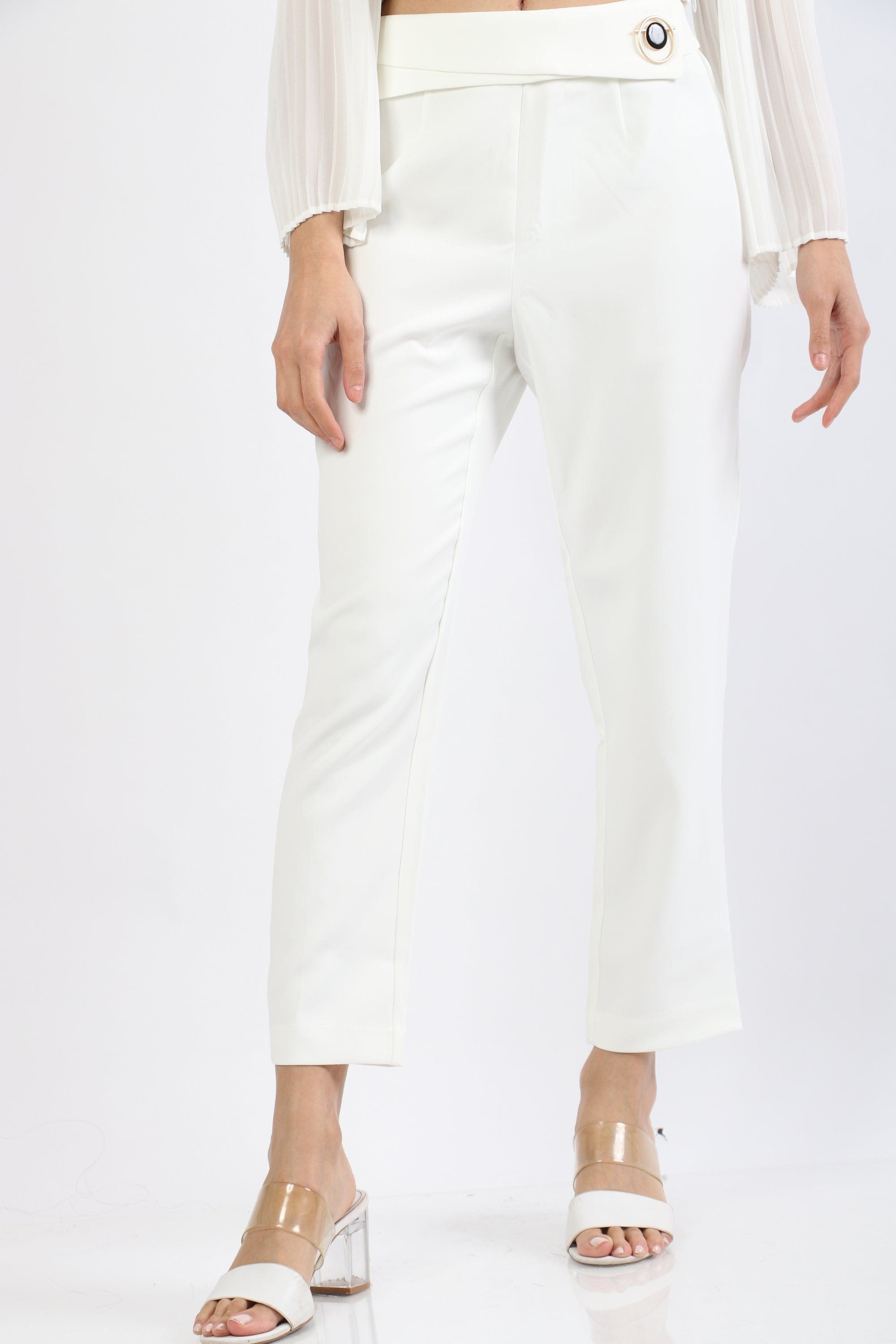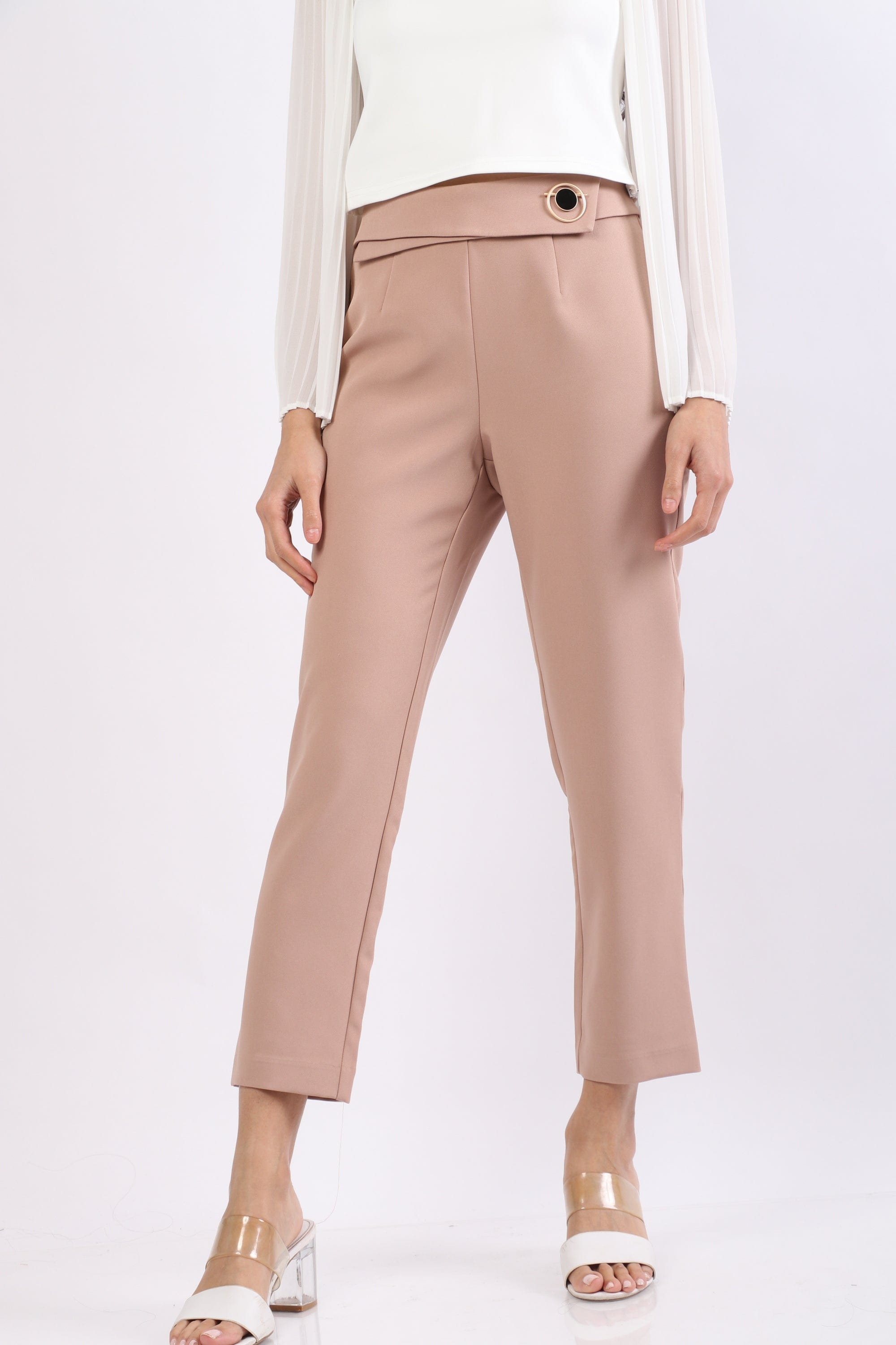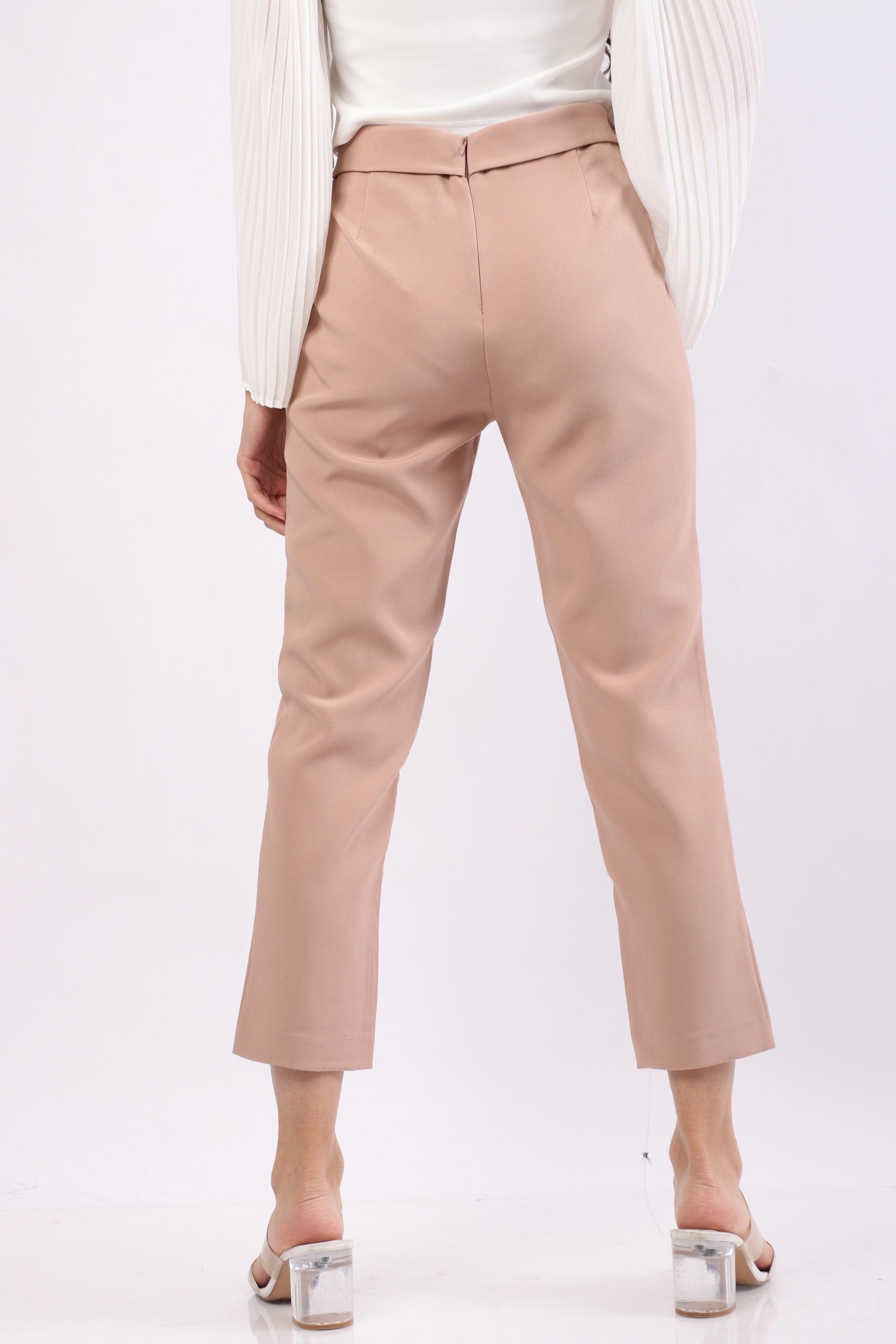 بنطلون كلاسيك سادة طويل مع حلقة على الخصر نسائي