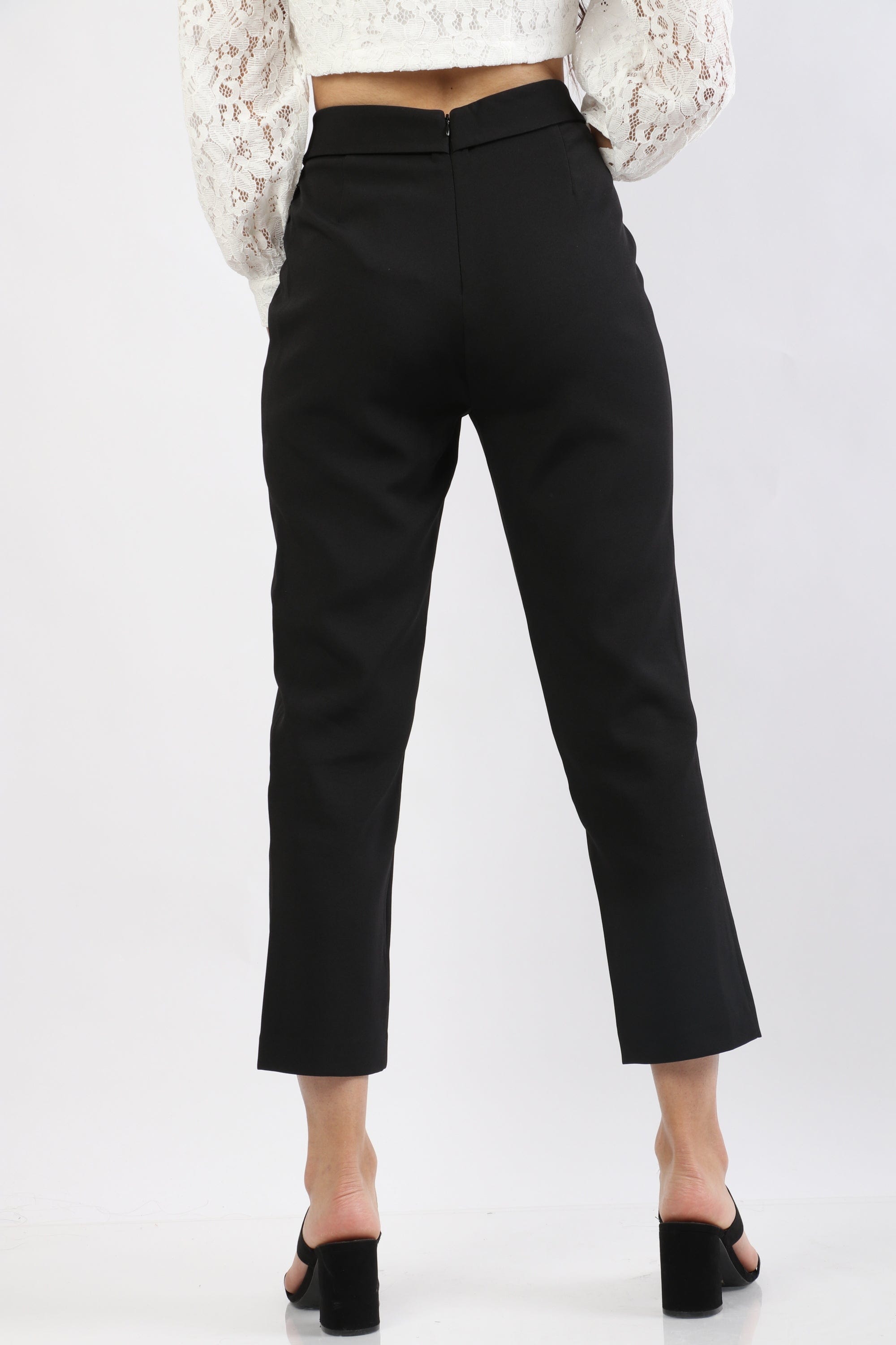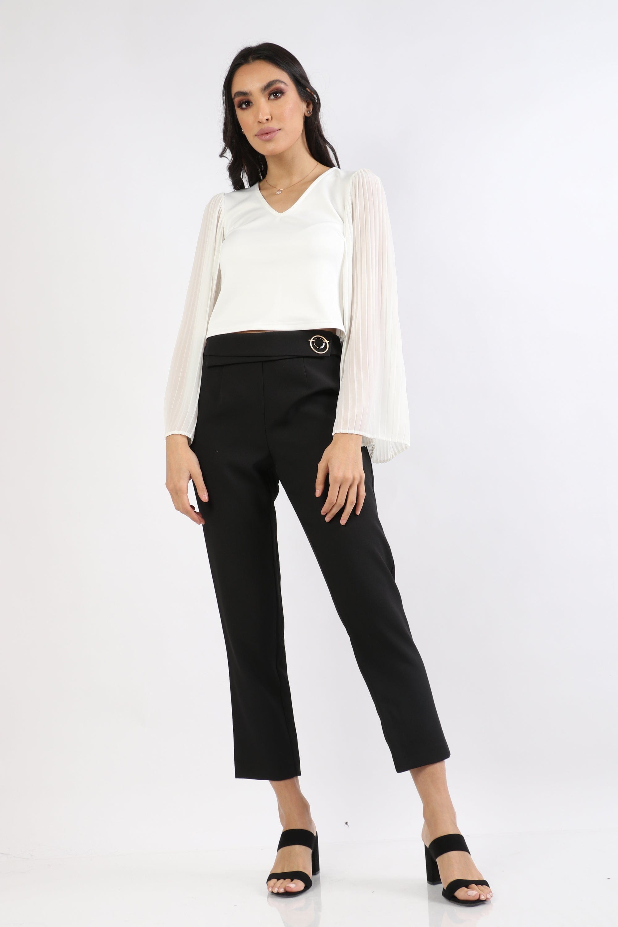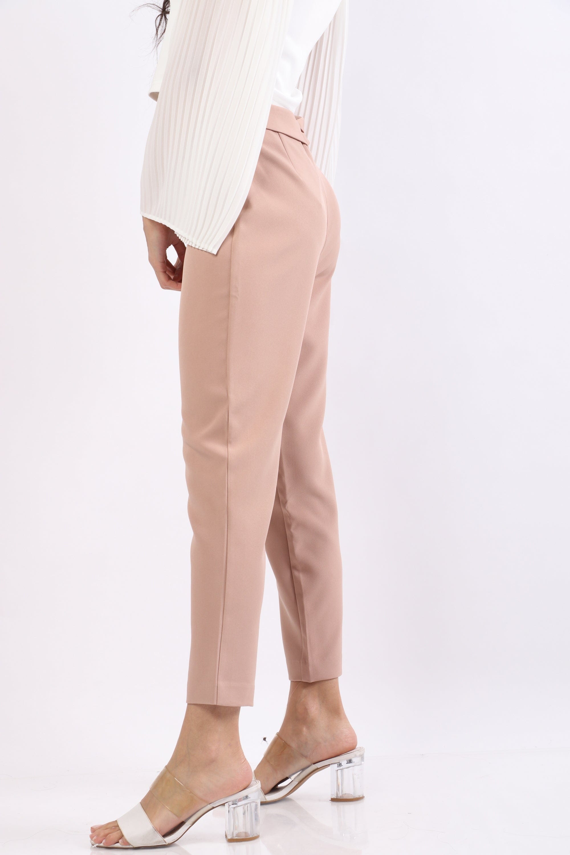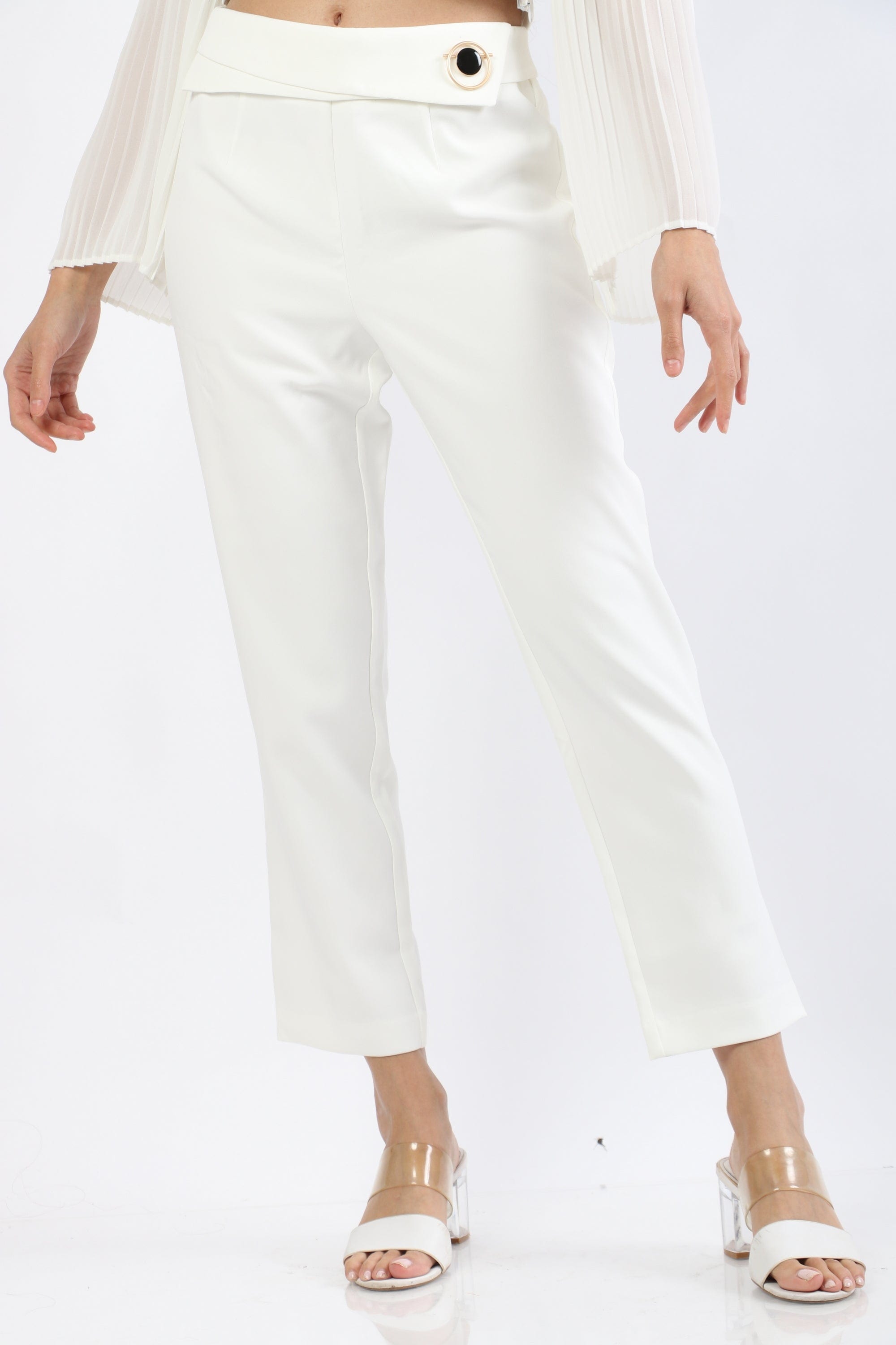 بنطلون كلاسيك سادة طويل مع حلقة على الخصر نسائي
