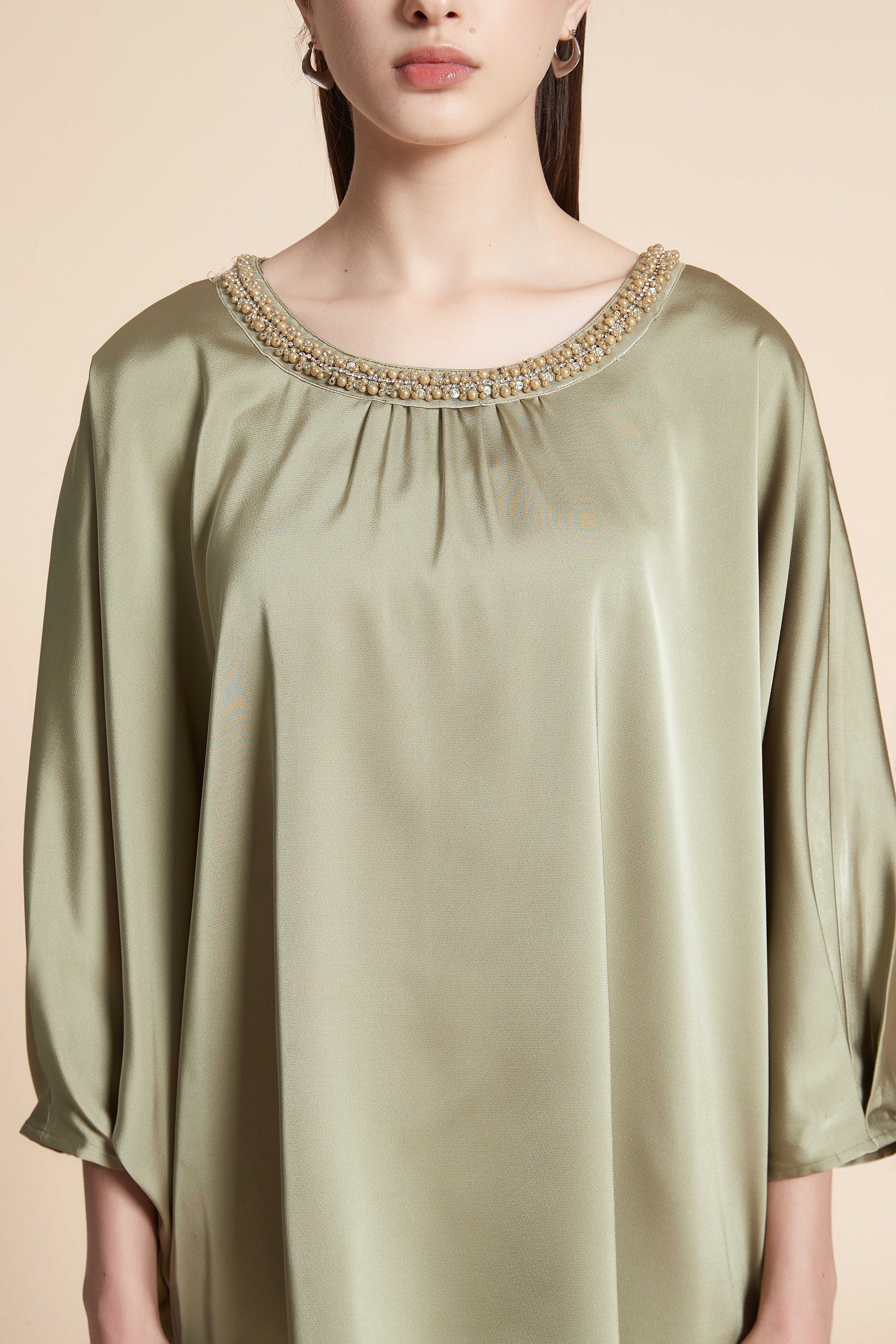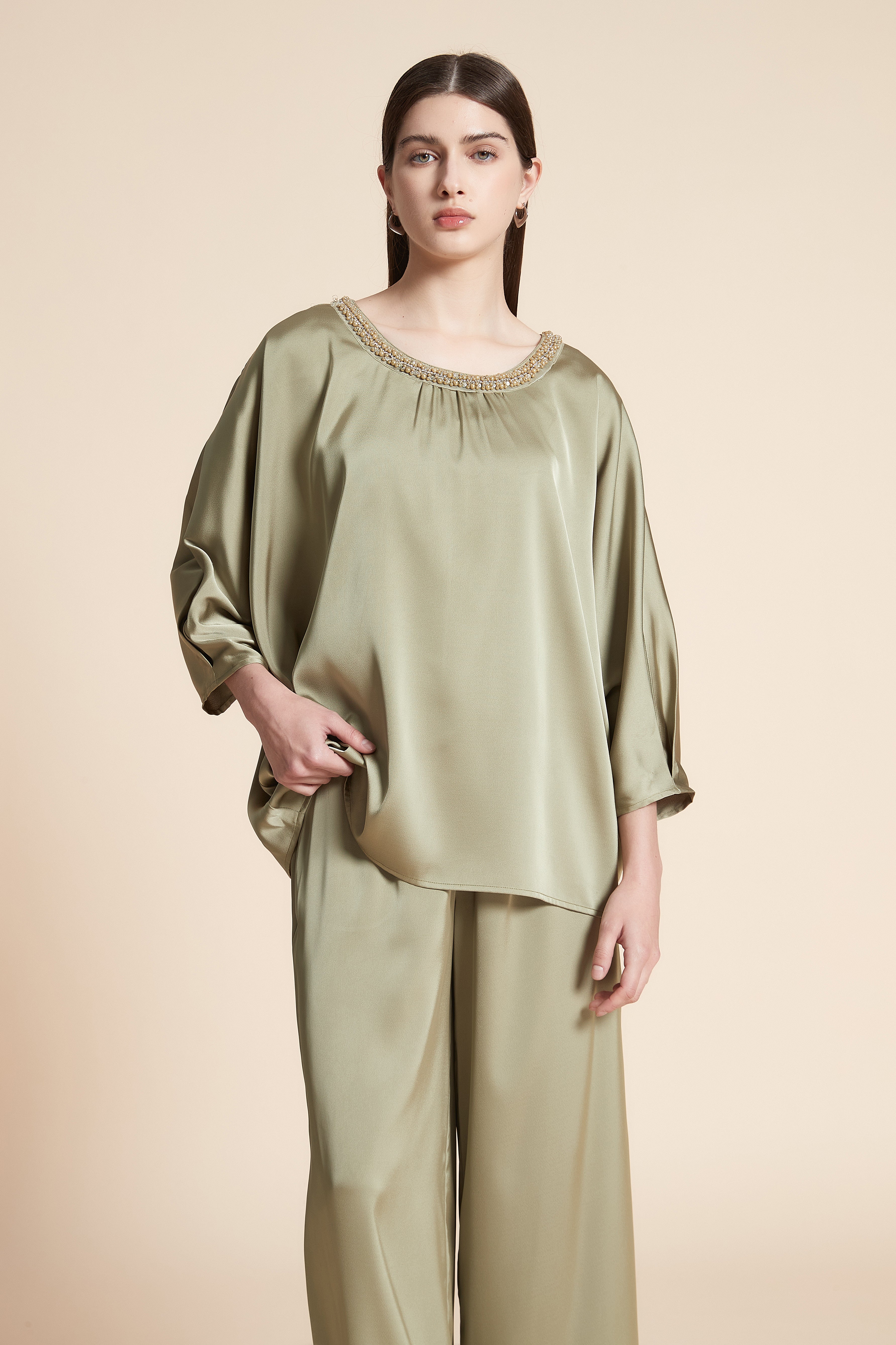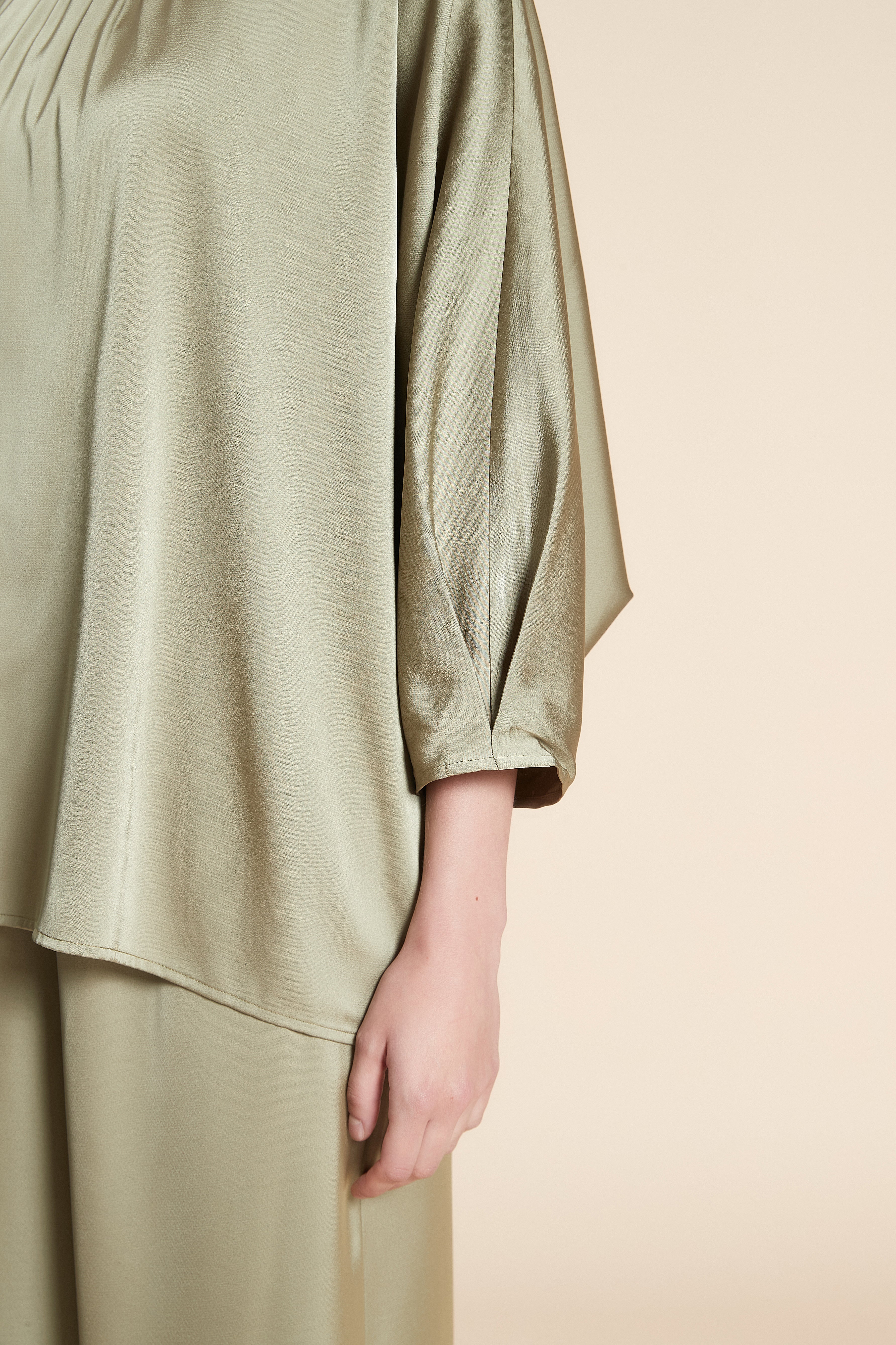 بلوزة بطول الخصر سادة ستان 3/4 كم