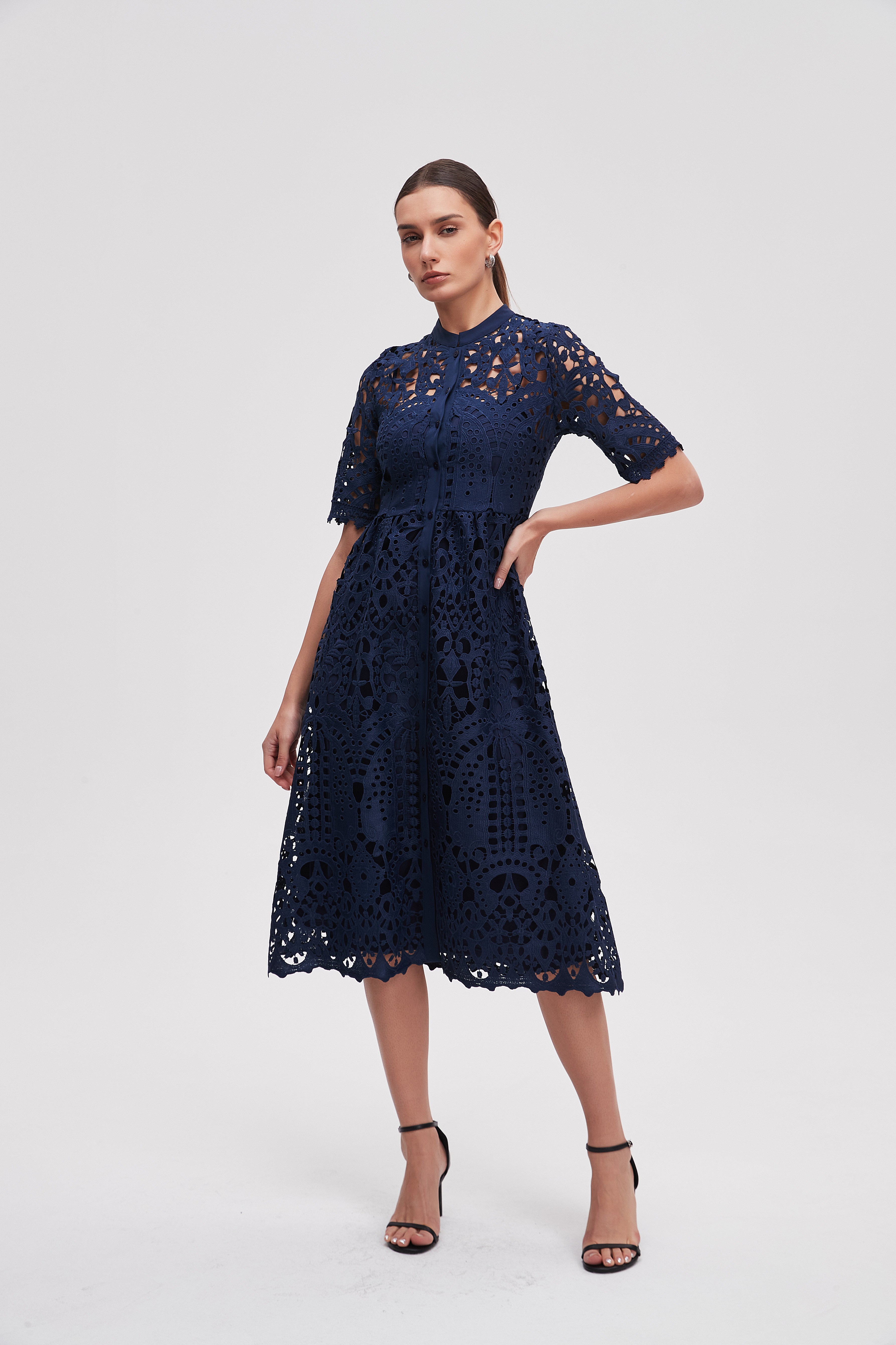 فستان ميدي دانتيل كم قصير