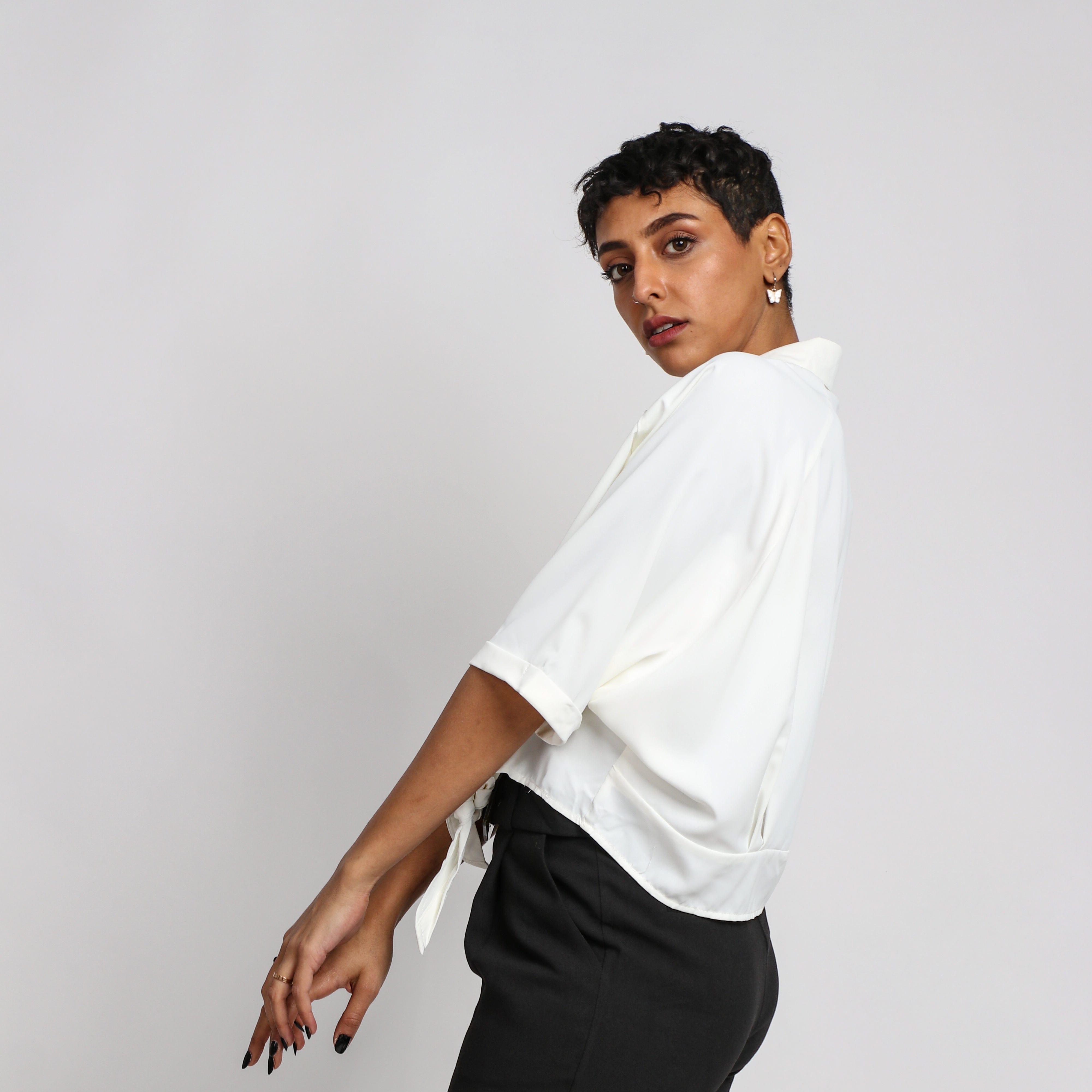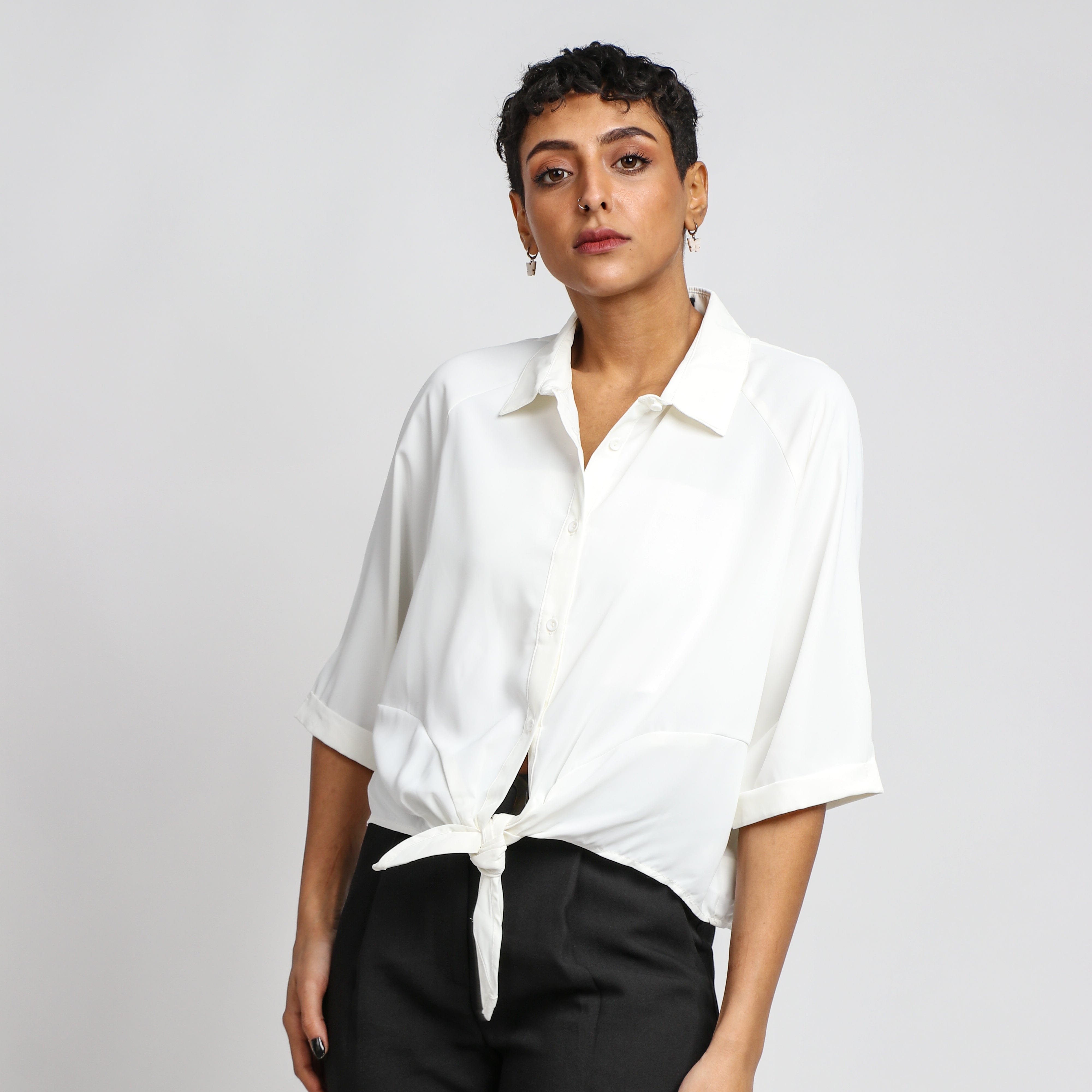 قميص سادة بياقة وأزرار أمامية كم طويل وربطة على الخصر نسائي