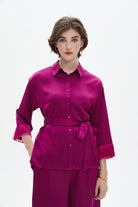 بلوزة نسائية 3/4 كم سادة بحزام خصر