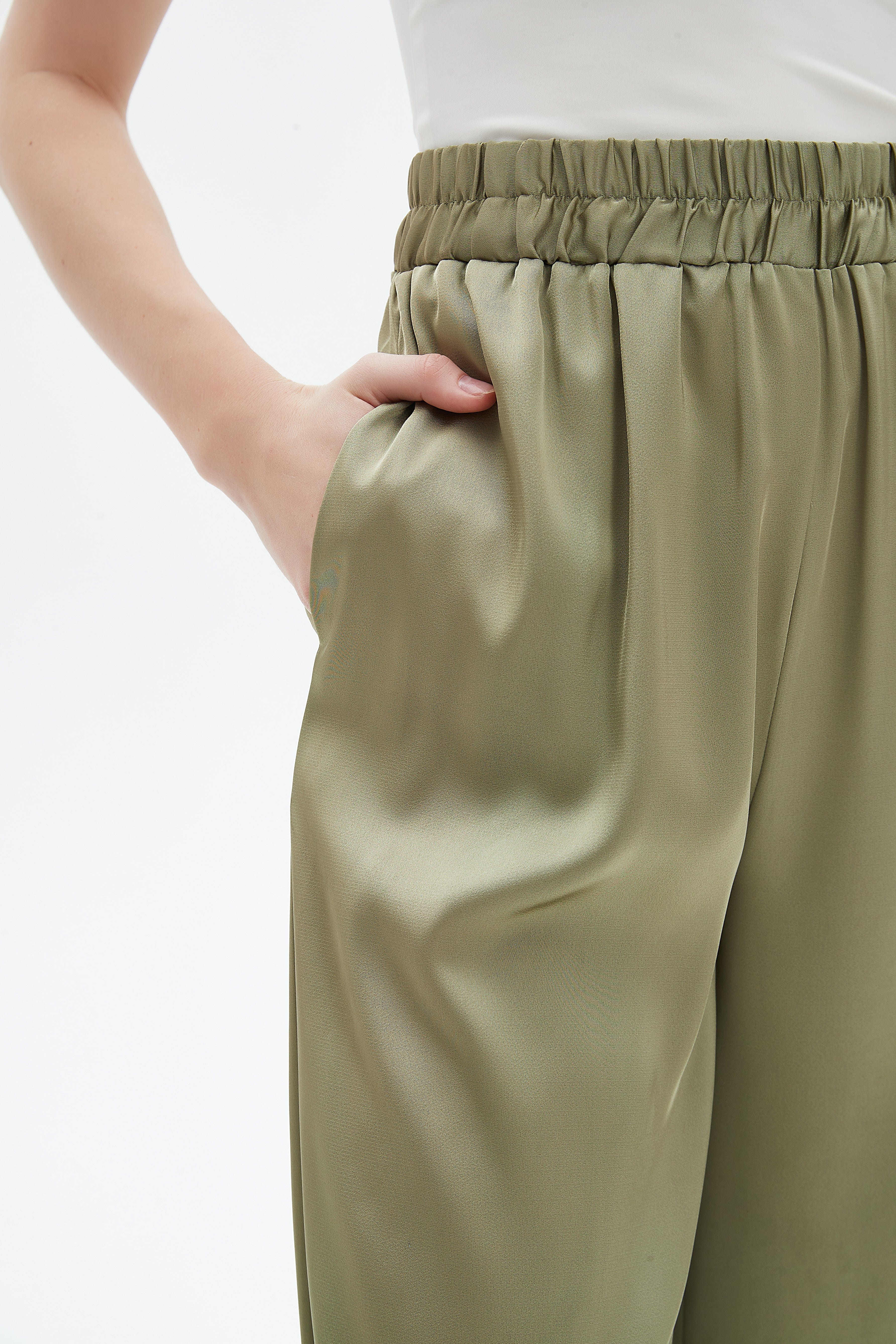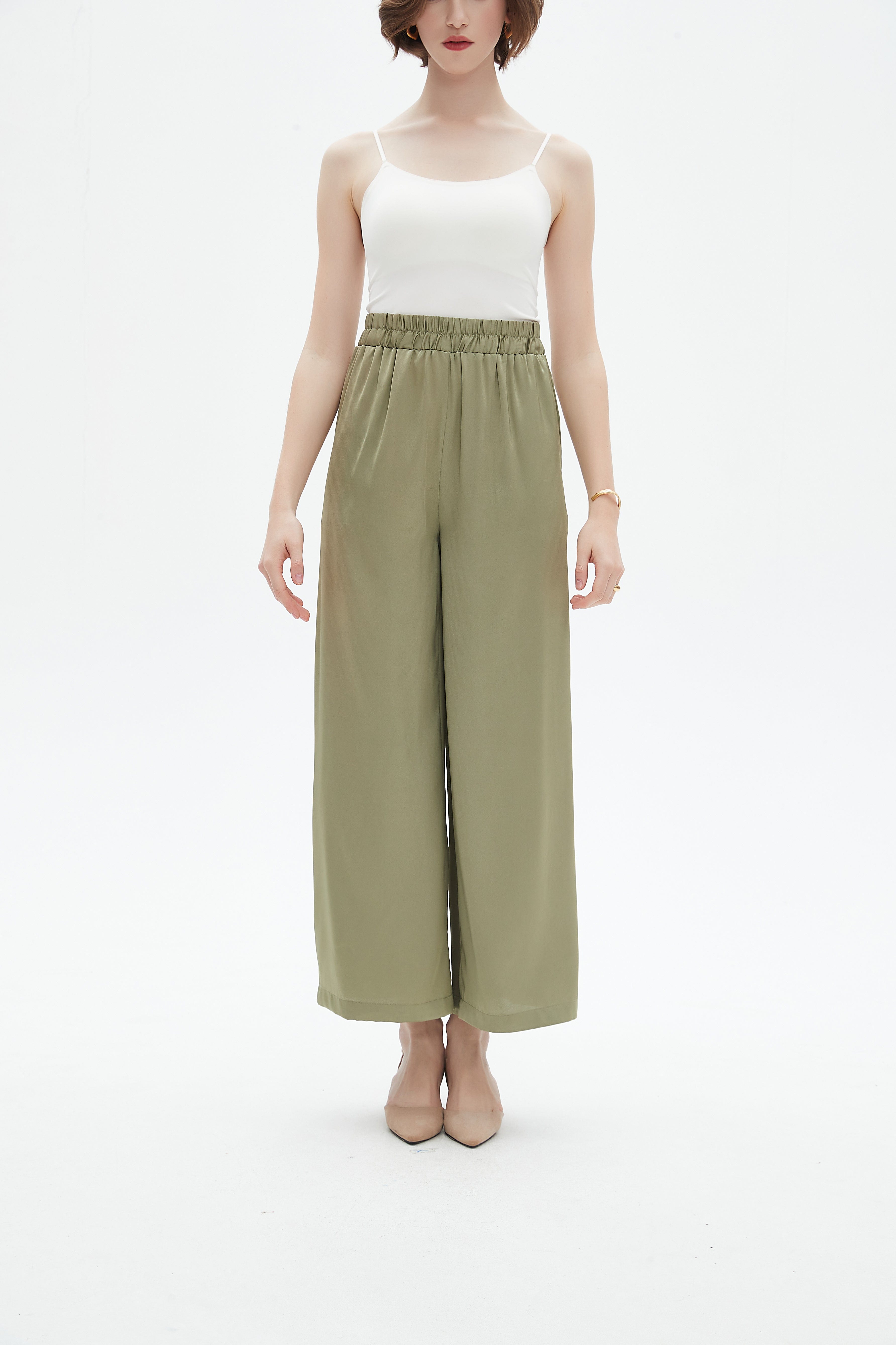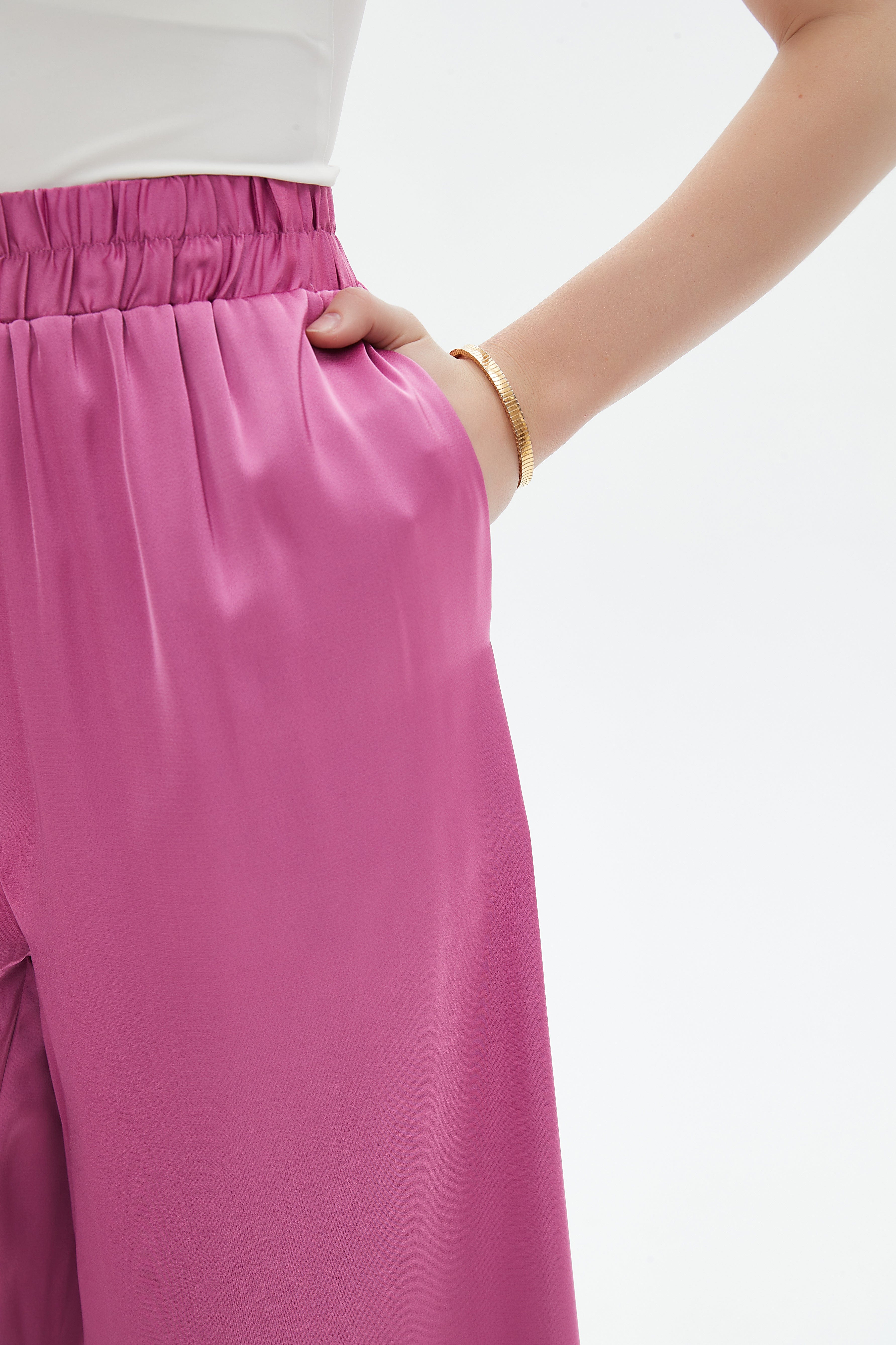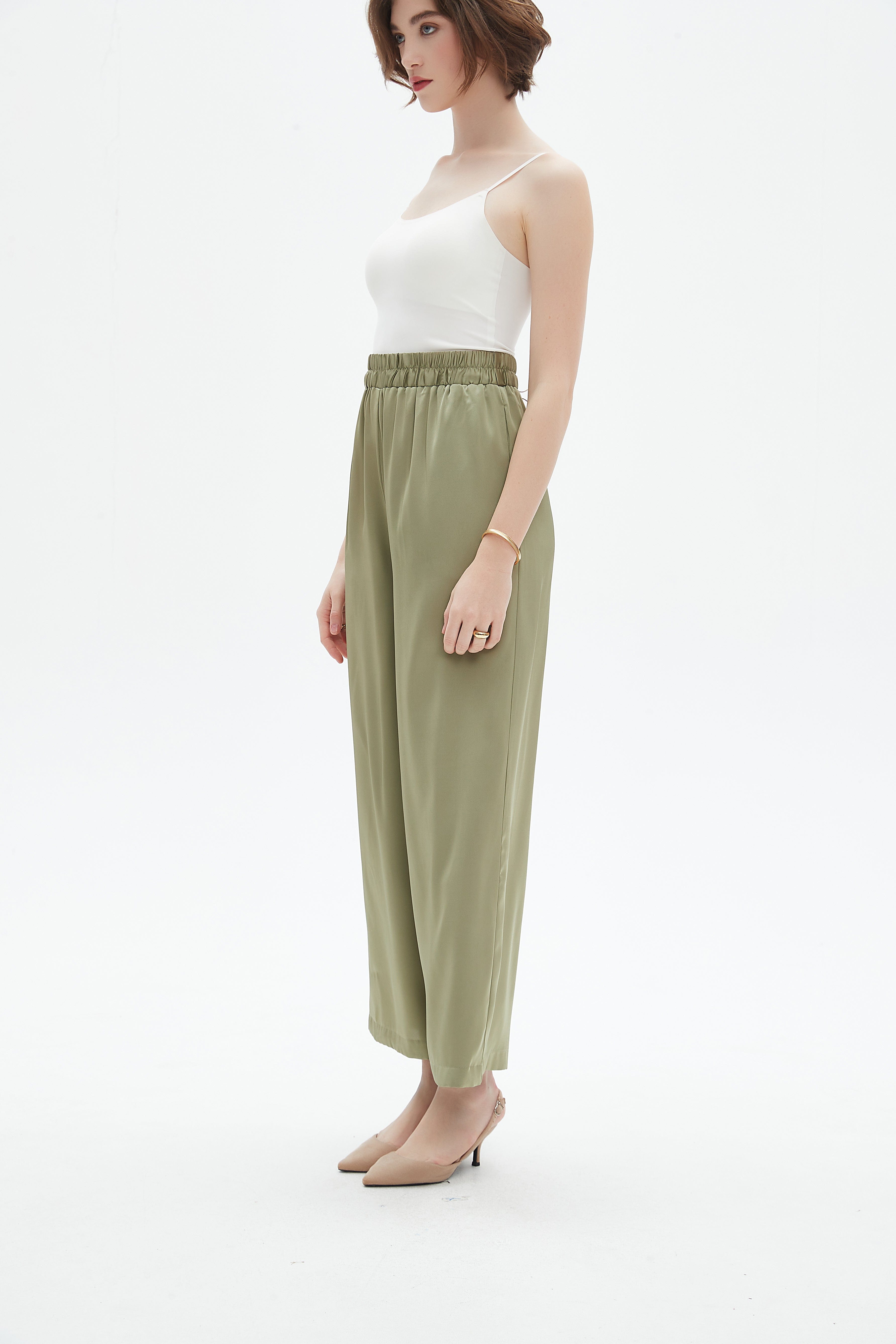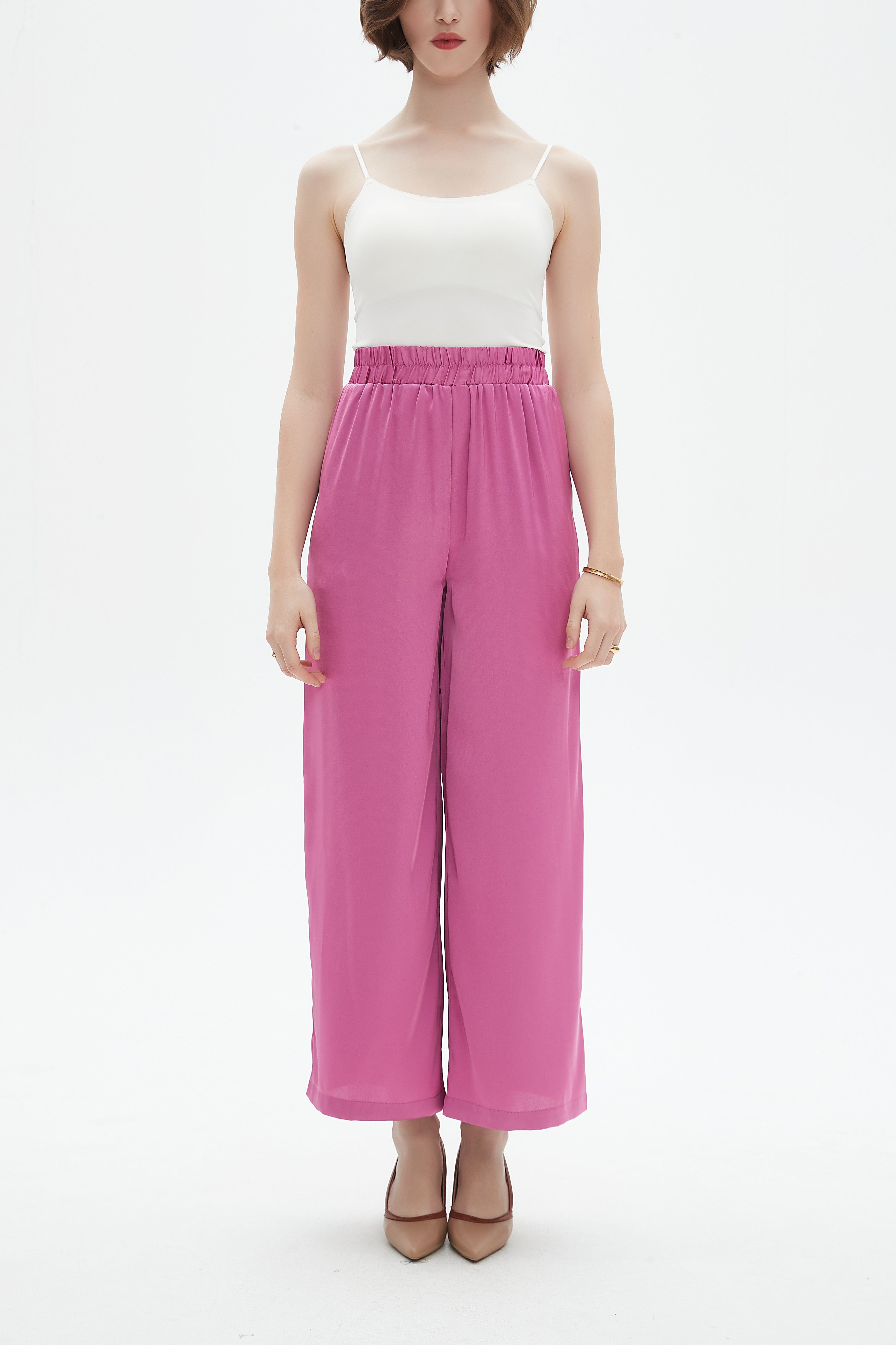 بنطلون نسائي بخصر مطاطي مرتفع قصة مستقيمة