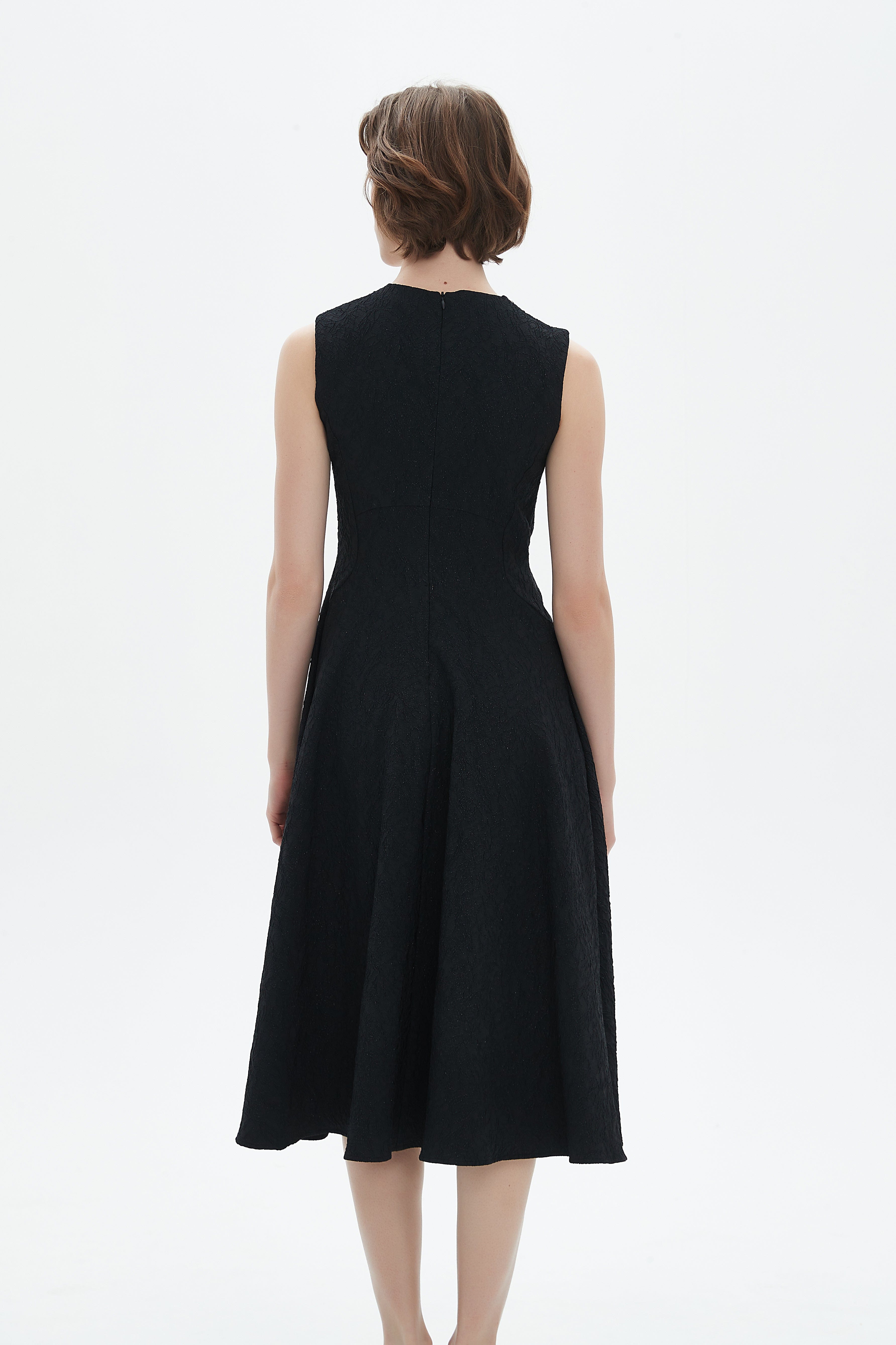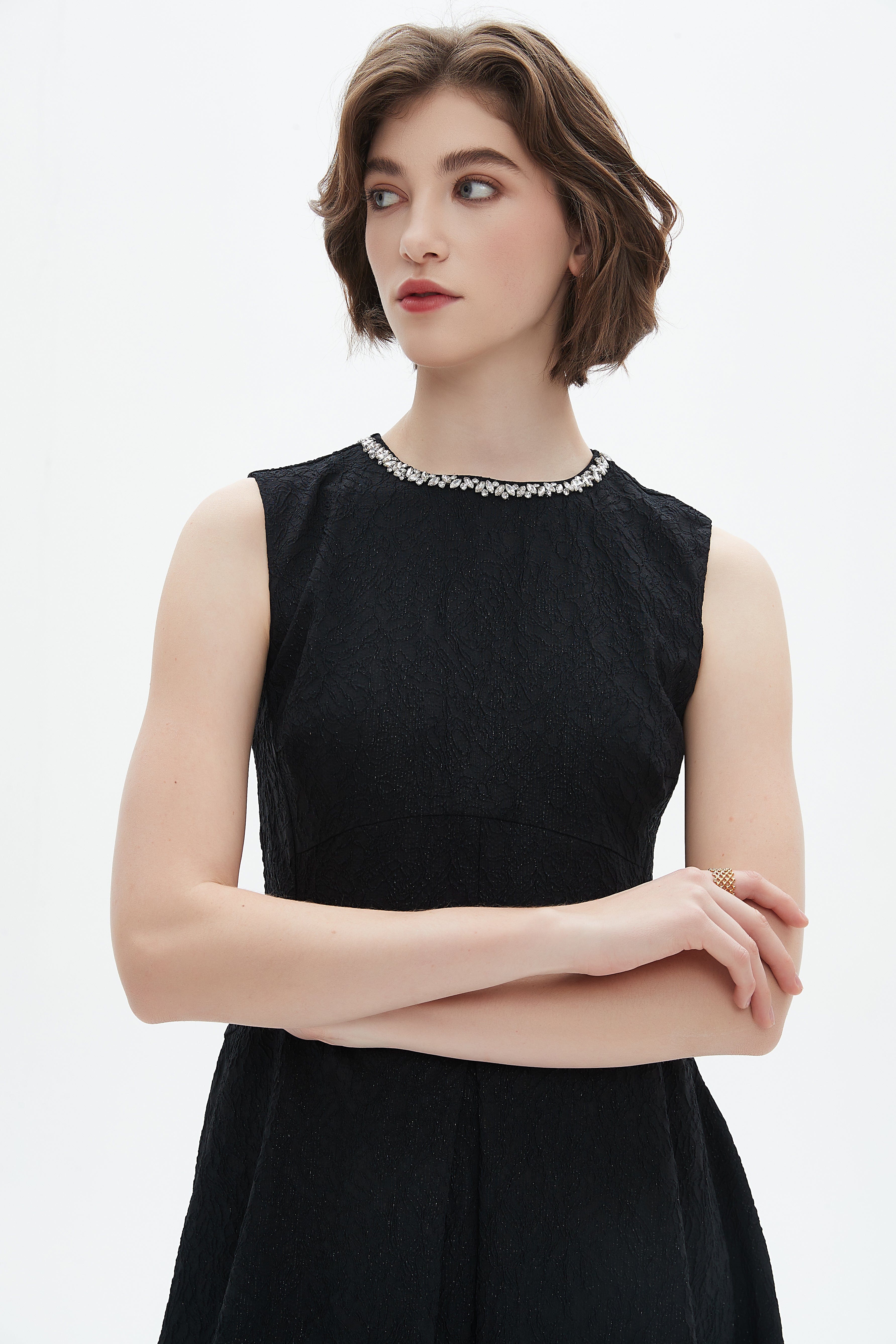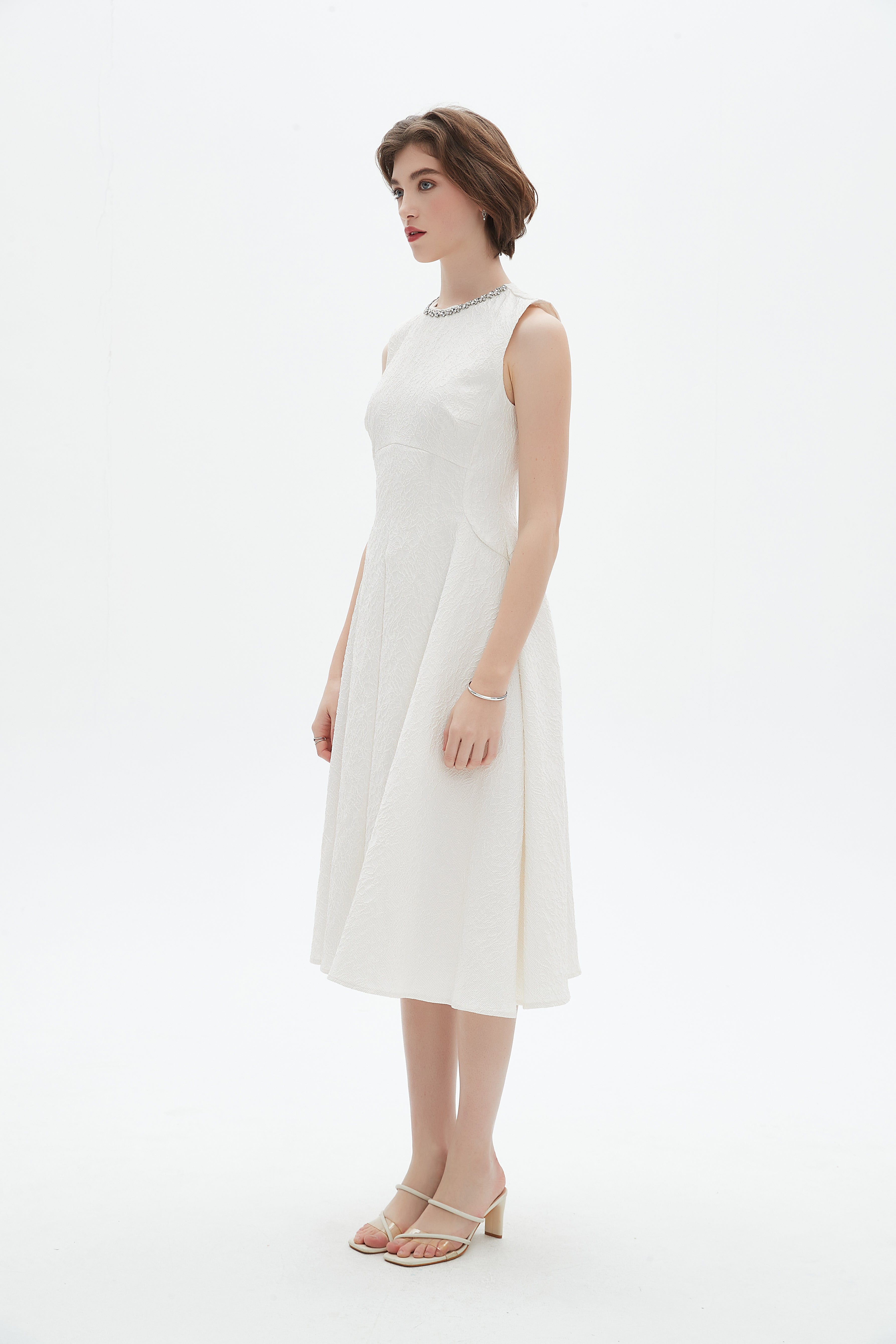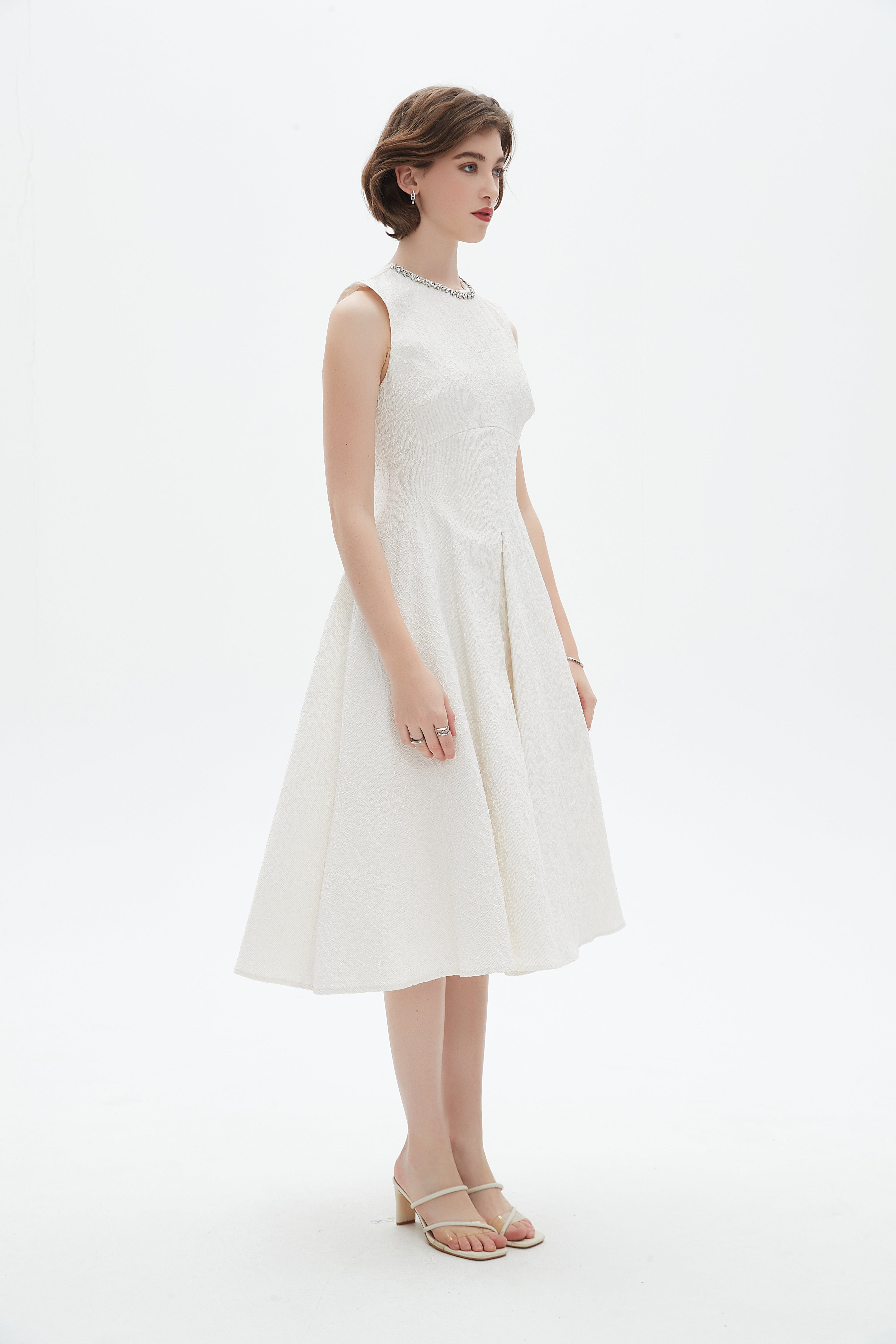 فستان ميدي بدون اكمام مطرز وفتحة رقبة دائرية