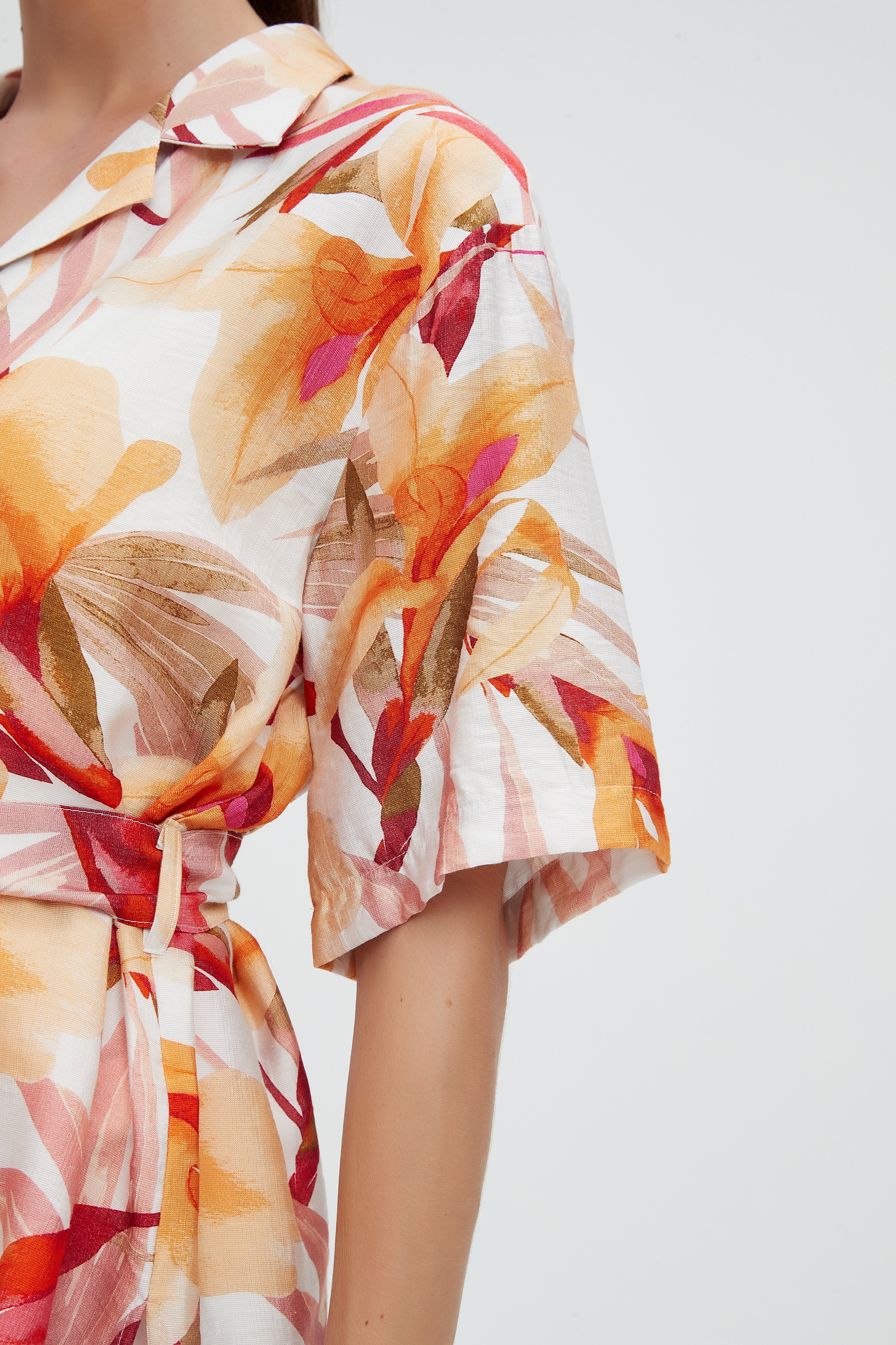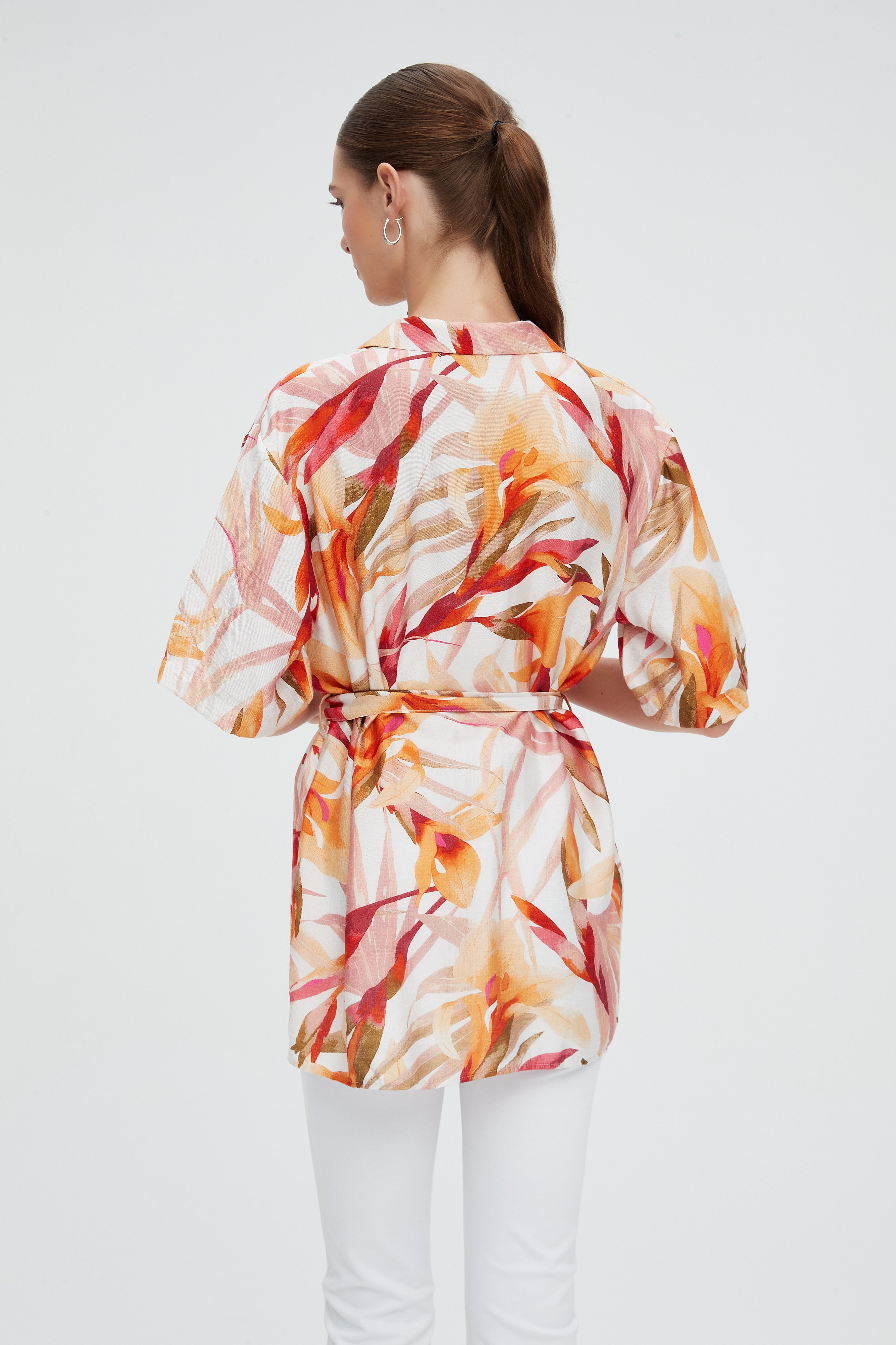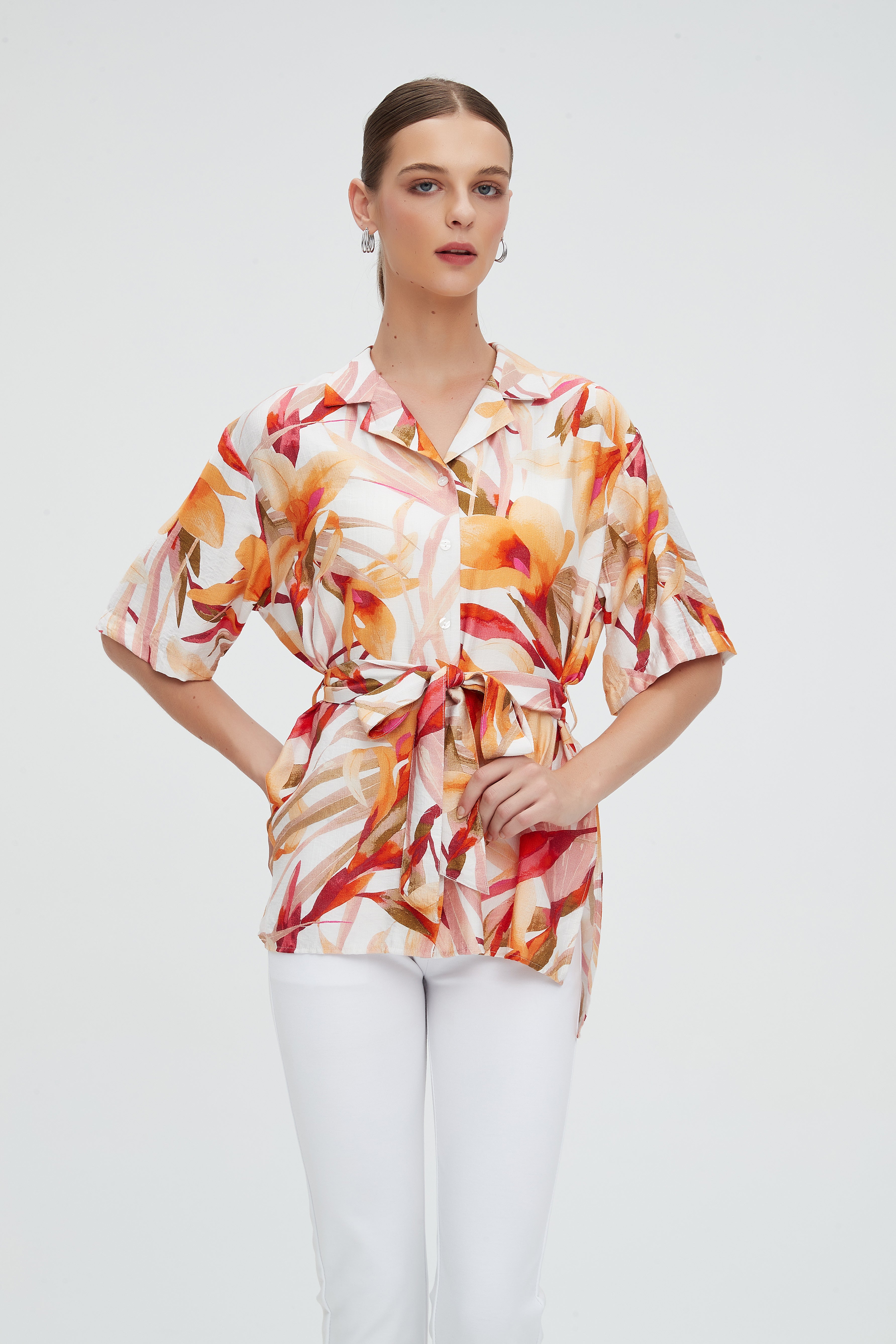 بلوزة بطول الخصر منقوشة وبحزام على الخصر