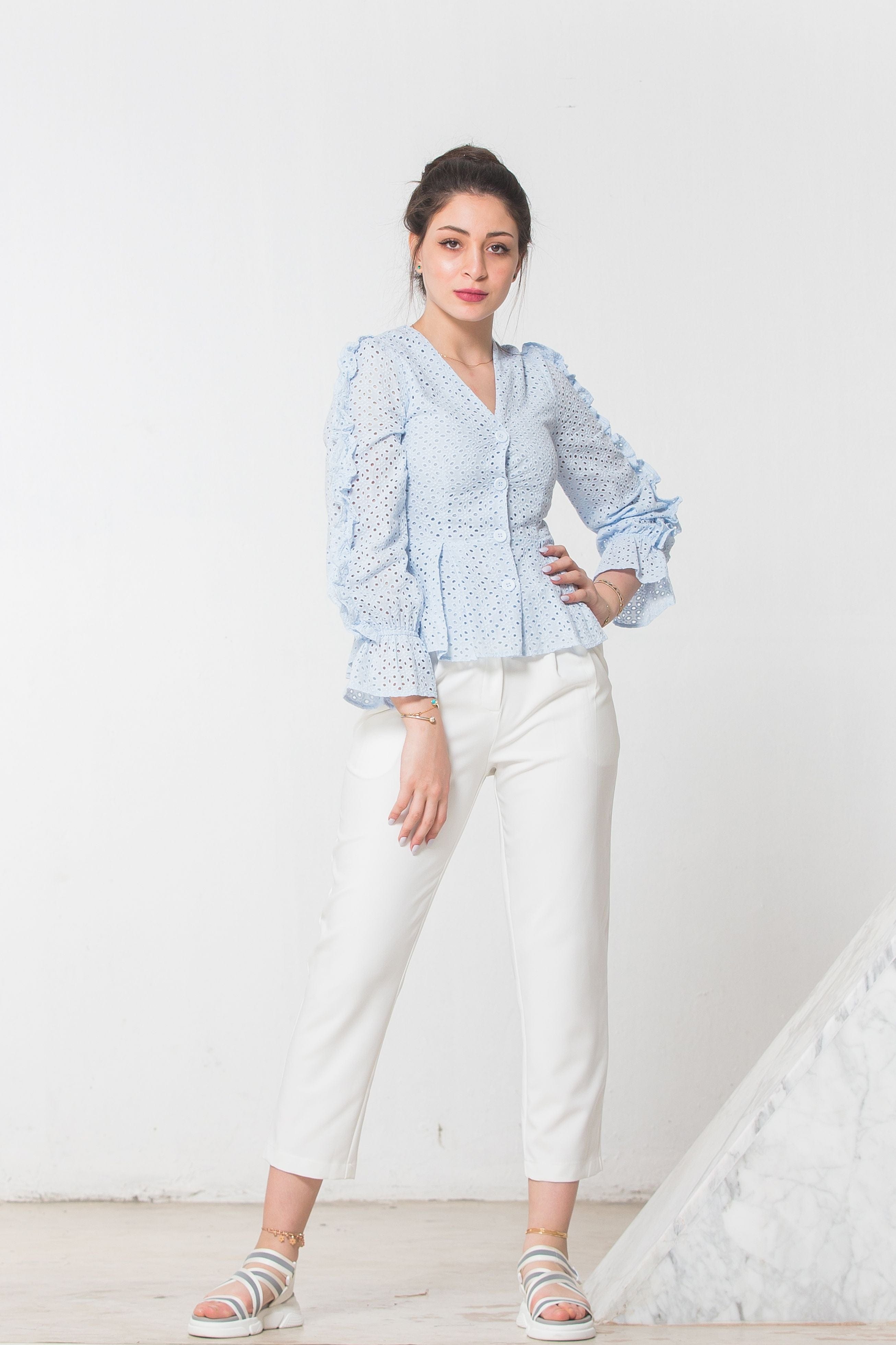 استعدي للتألق ببلوزة رسمية نسائية مخرمة من نتشي، متوفرة بألوان جذابة ومتنوعة تشمل الأزرق الفاتح والأبيض الكريمي. تصميم مخرم يضفي لمسة أنيقة ومميزة على هذه البلوزة. مصنوعة من خامات عالية الجودة لتضمن لك الراحة والأناقة في آن واحد. تتميز بقصة مريحة وأكمام طويلة، مما يجعلها مثالية للمناسبات الرسمية والاستخدام اليومي. يمكنك ارتداؤها مع السراويل أو التنانير لإطلالة متميزة في جميع المناسبات. احصلي الآن على بلوزة رسمية نسائية مخرمة من نتشي واستعدي للتألق بأناقتك. اشتري الآن واستمتعي بأفضل التصاميم من فاشن السعودية! رقم المنتج: sd65120017