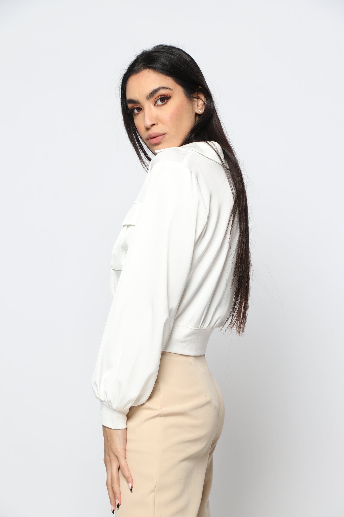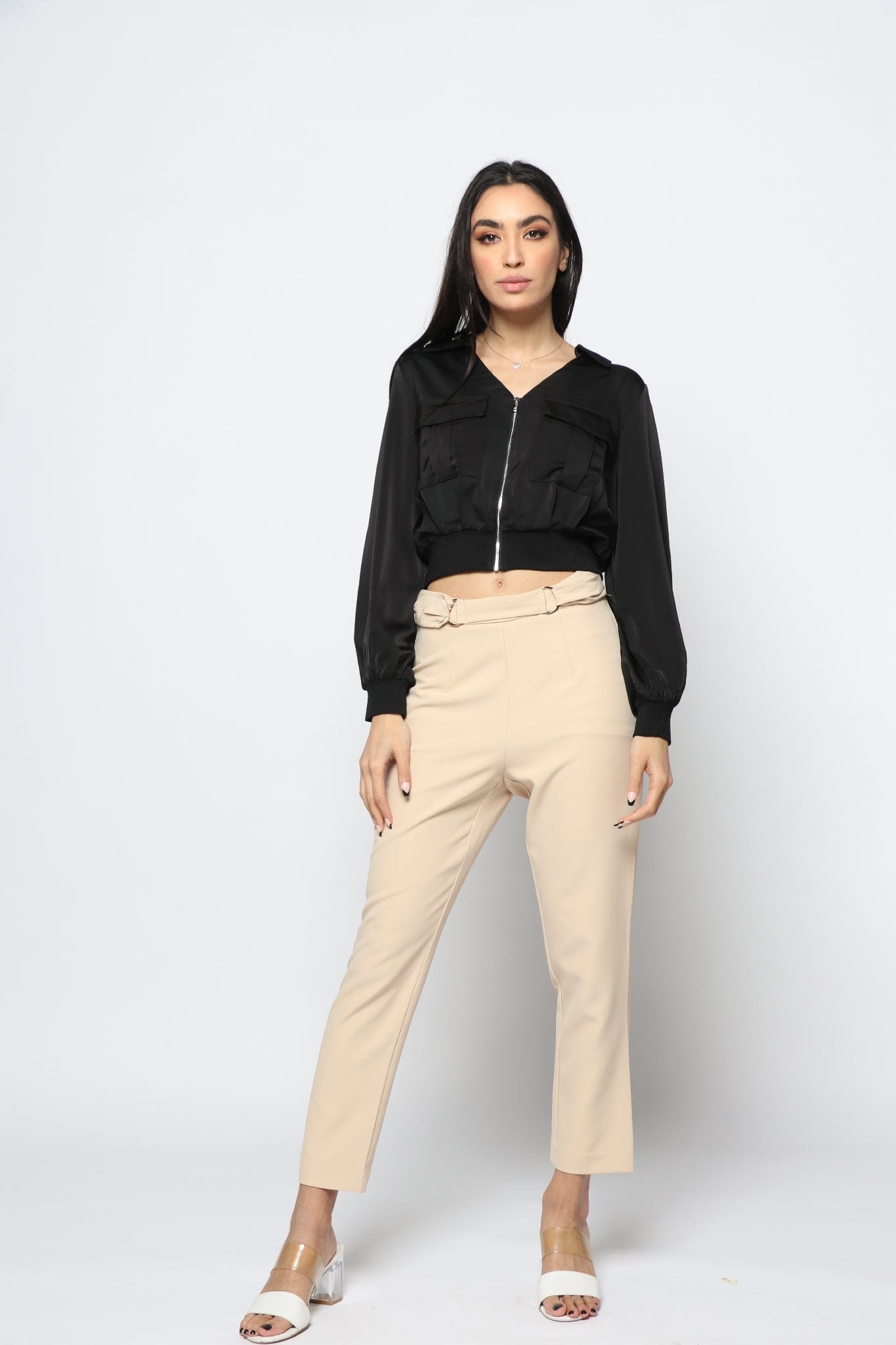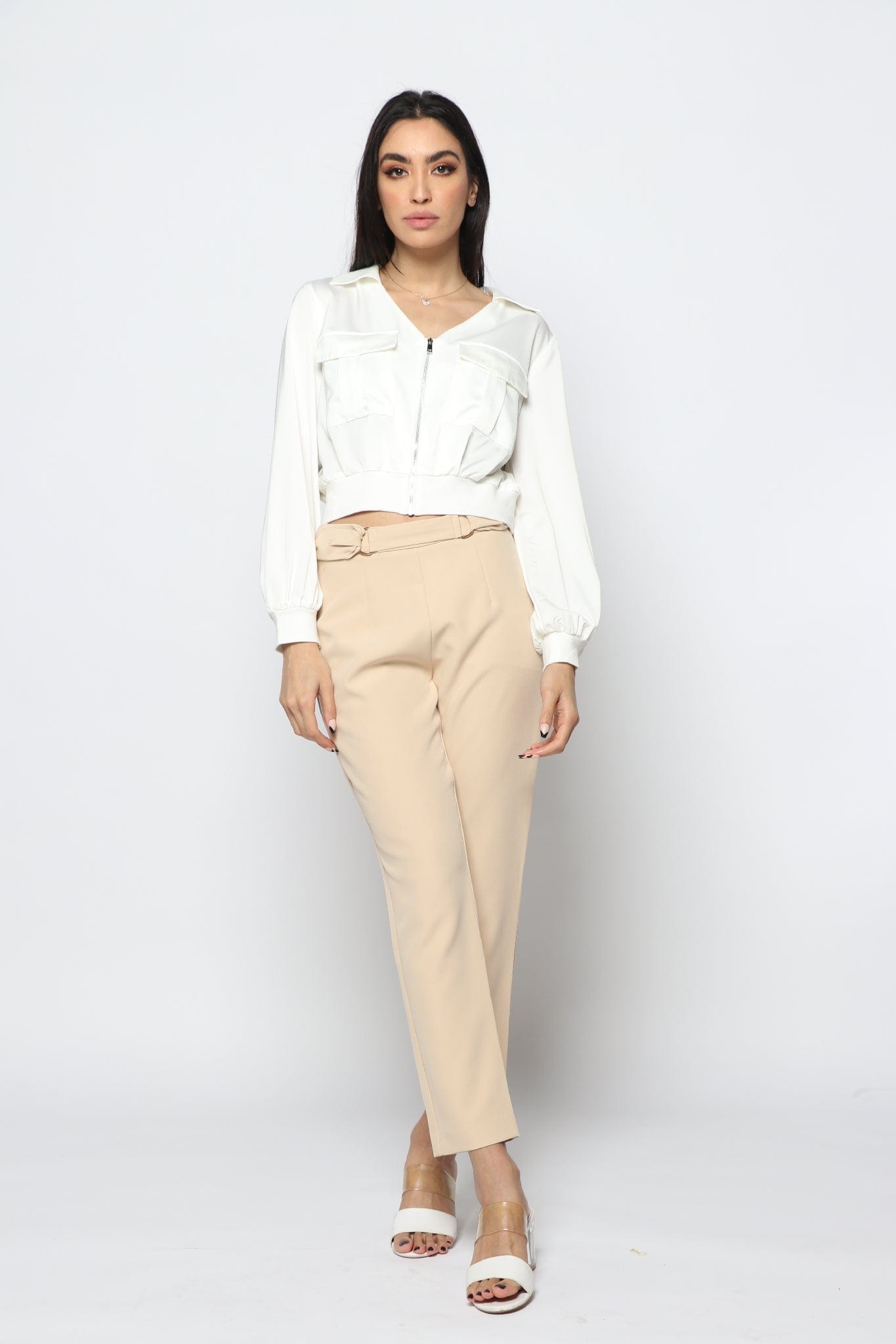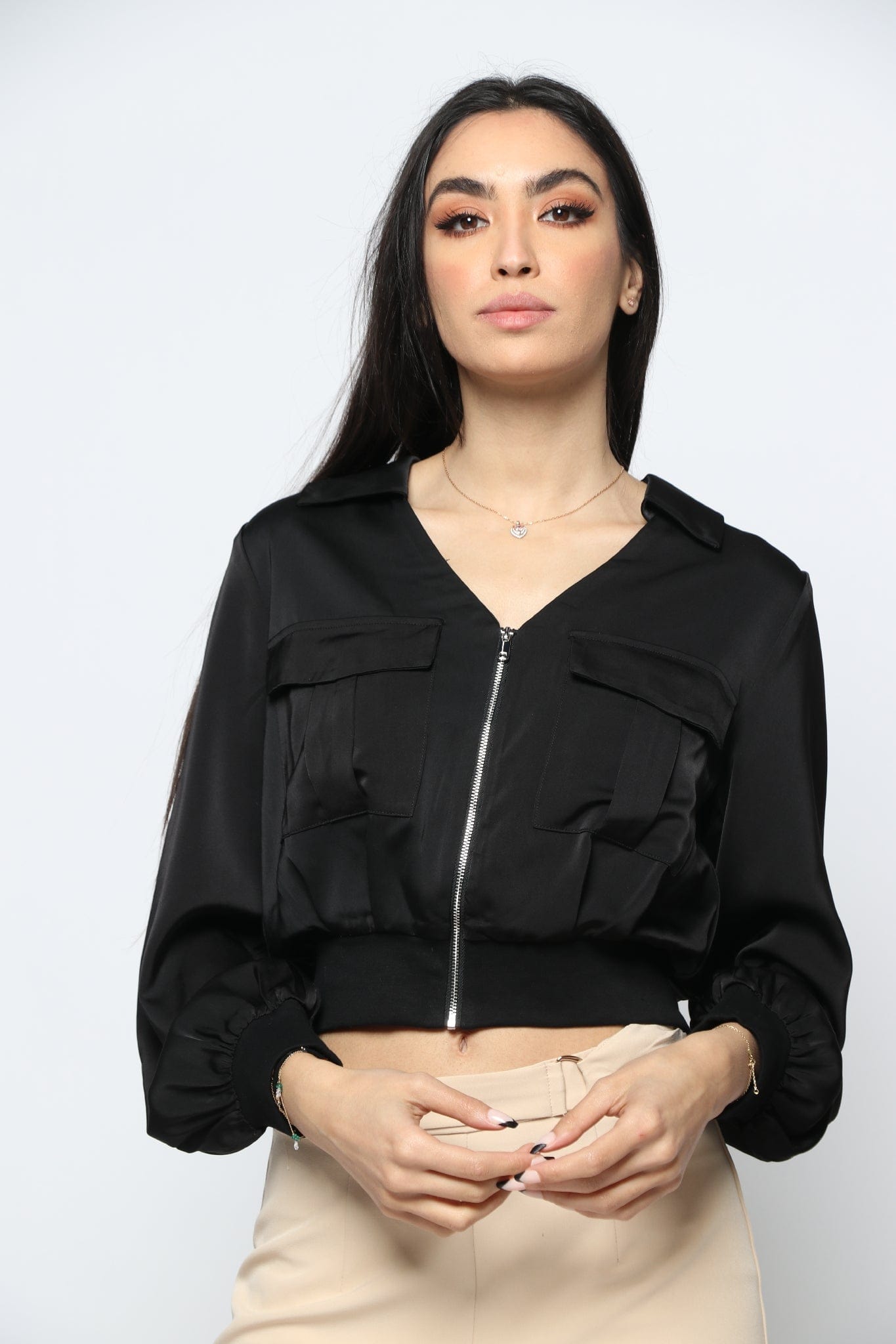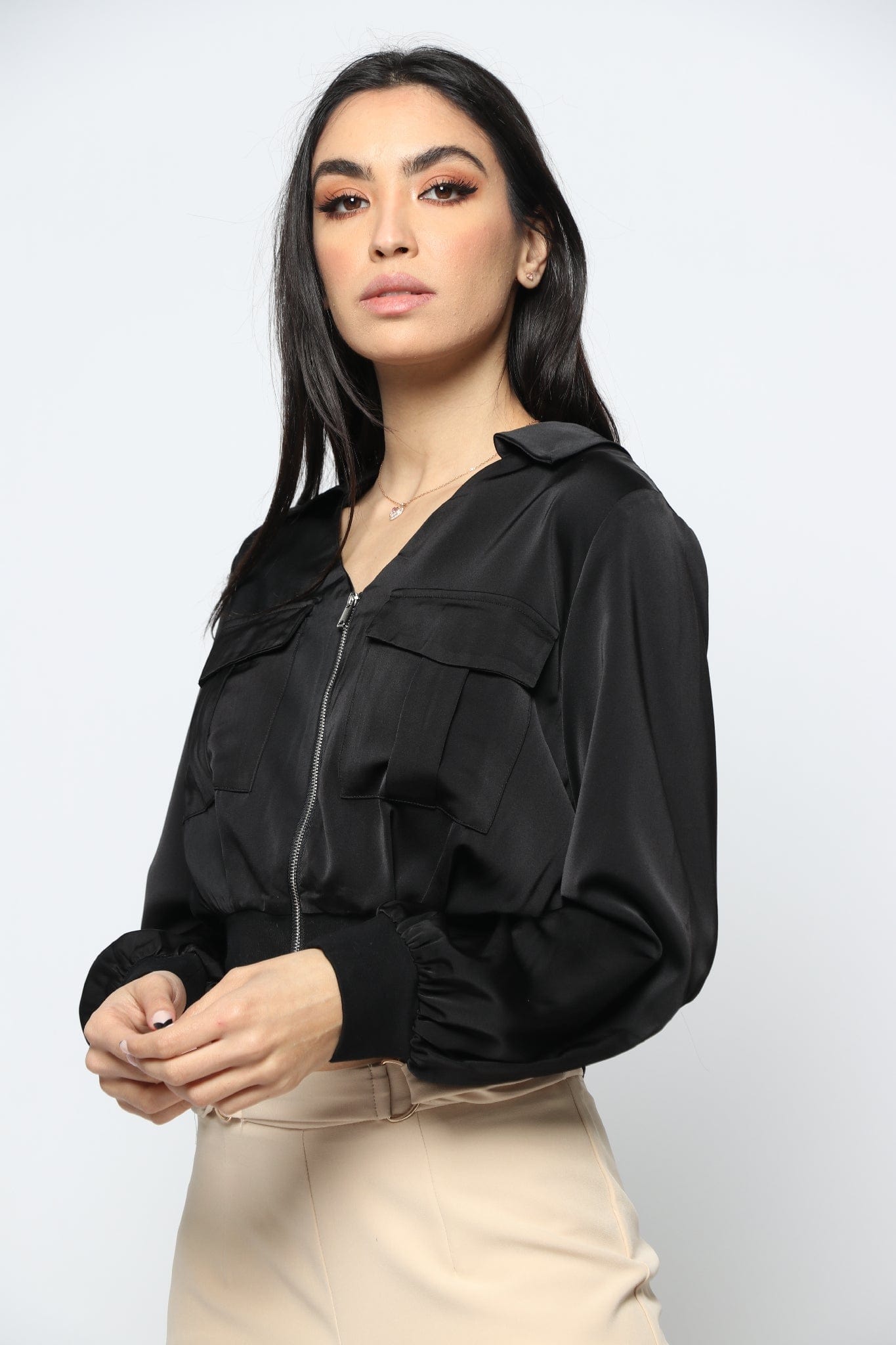 بلوزة نص بطن مخصر بسحاب كم طويل نسائي