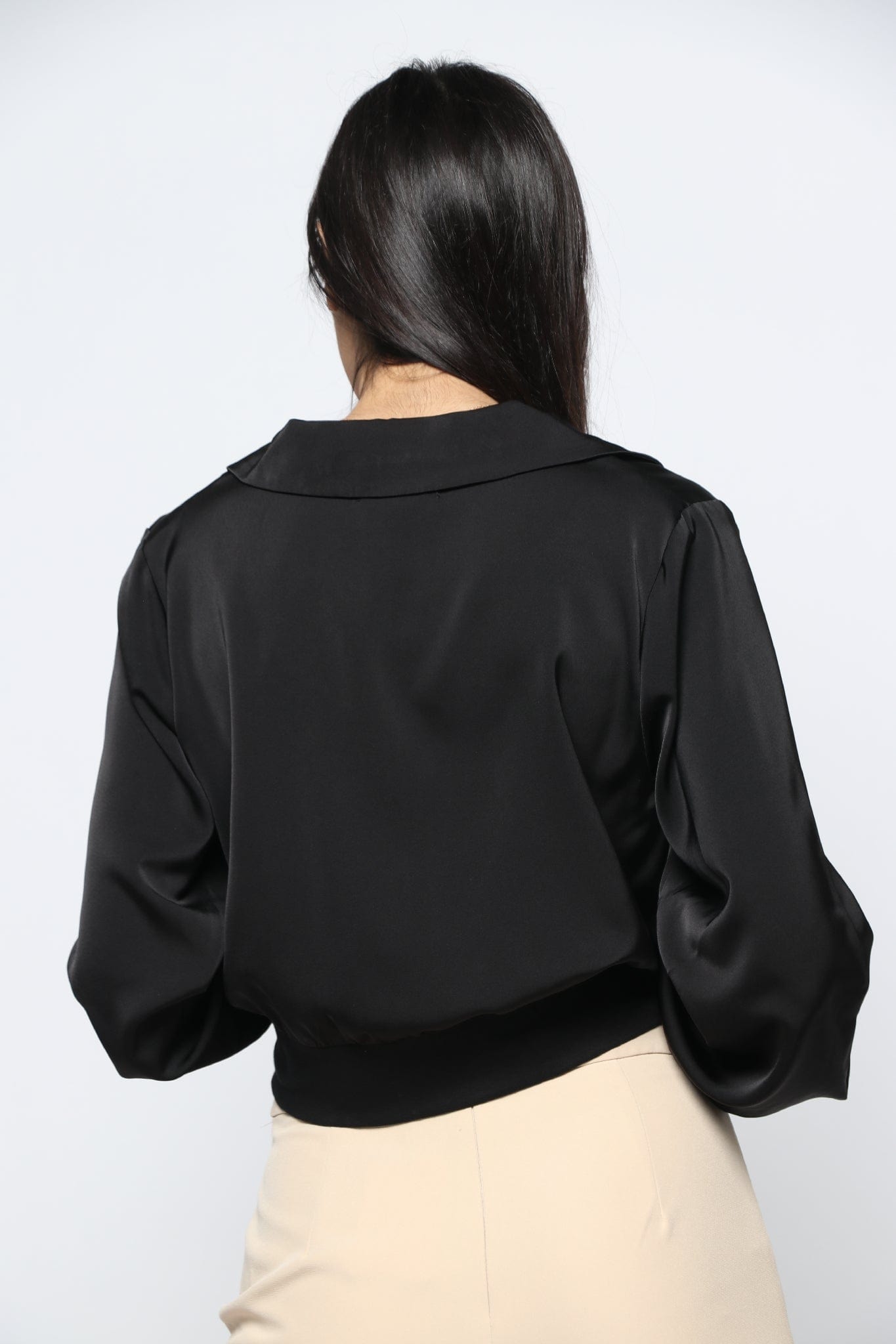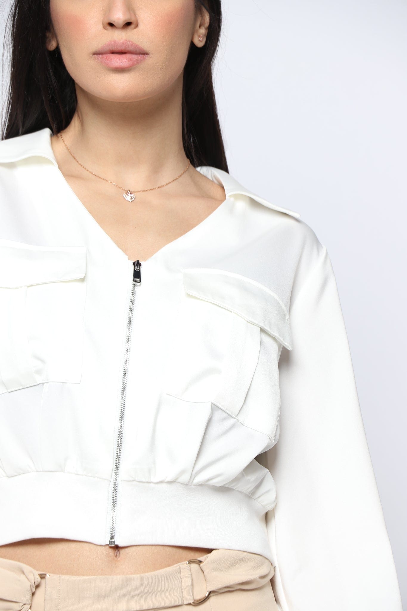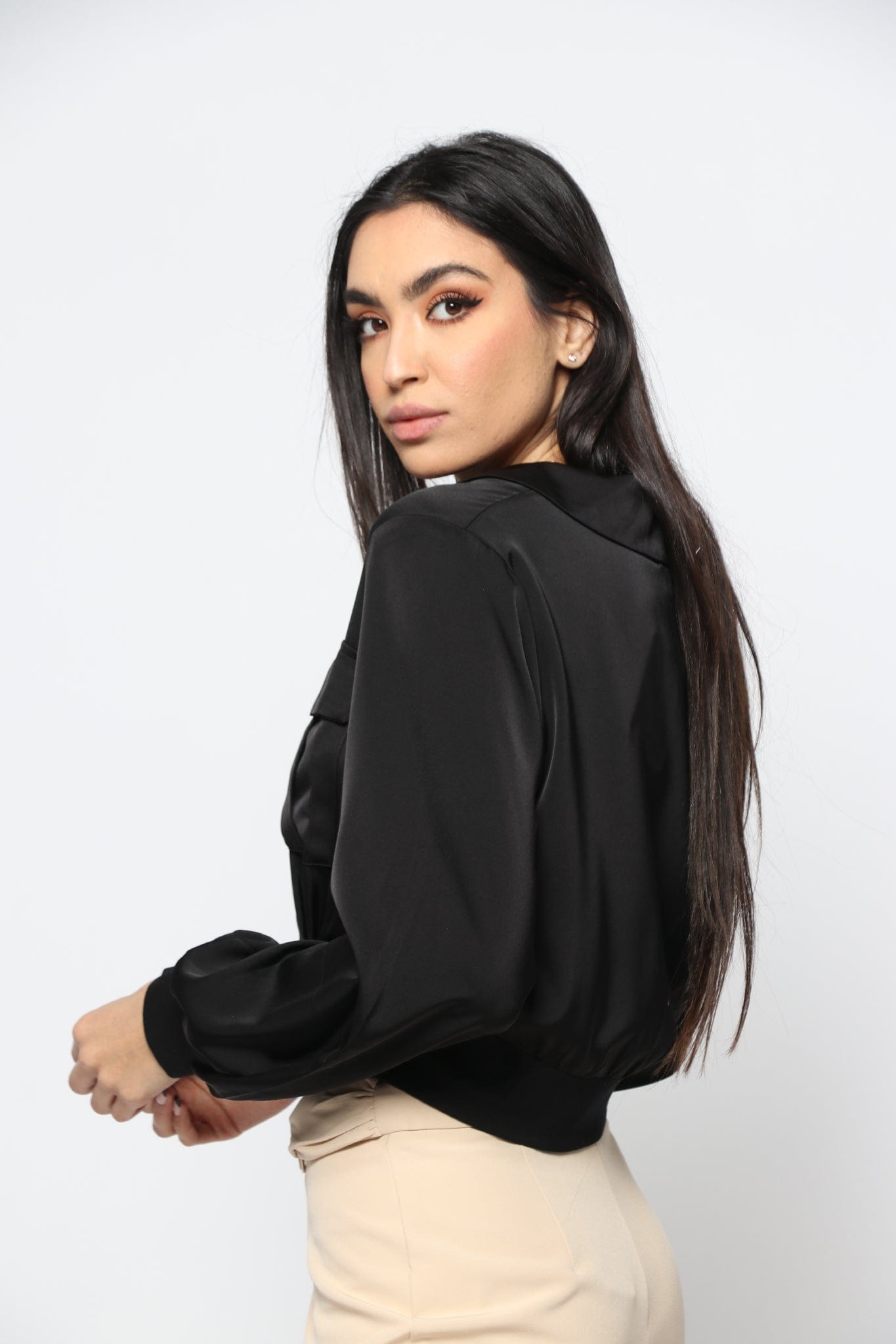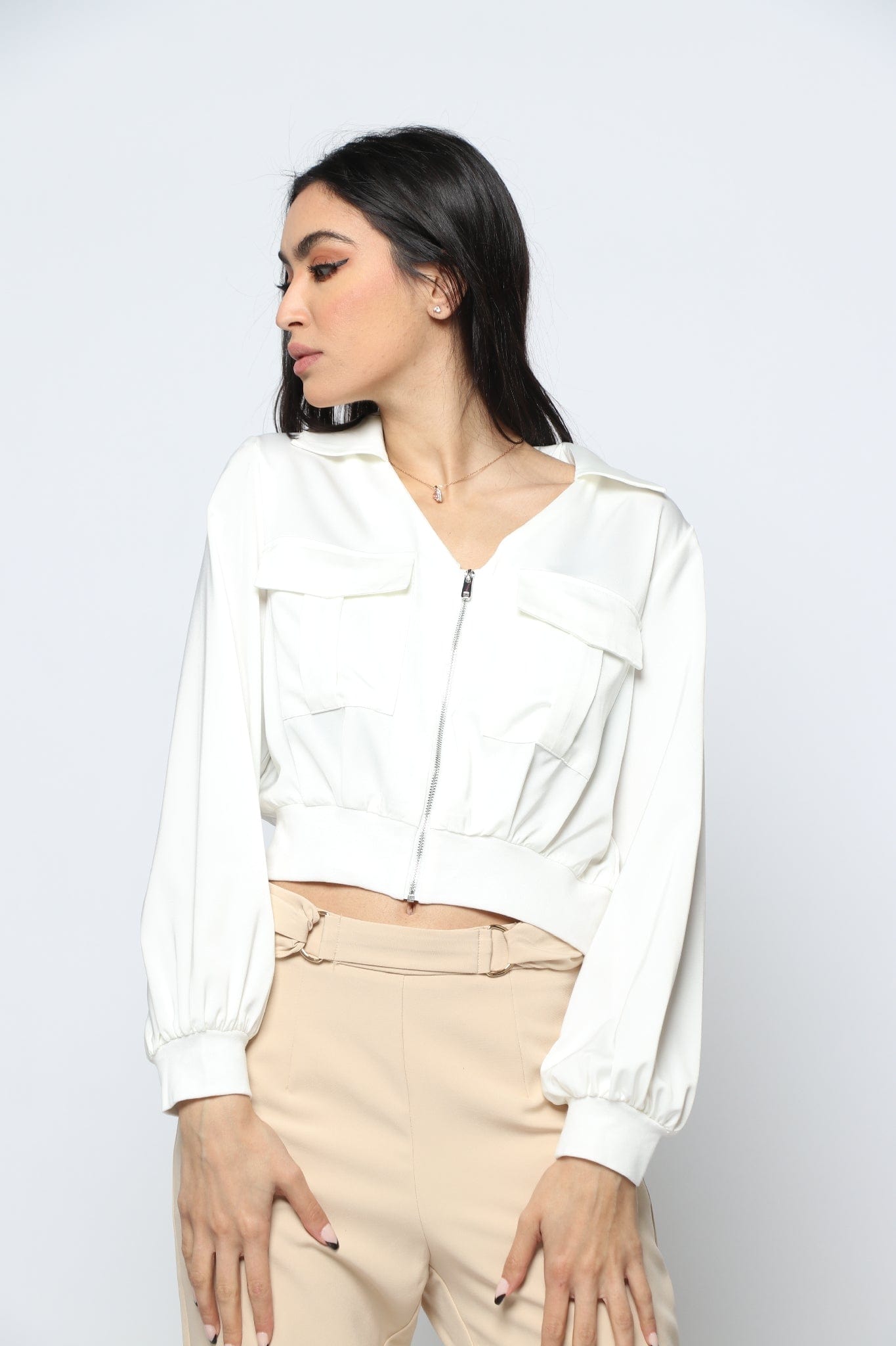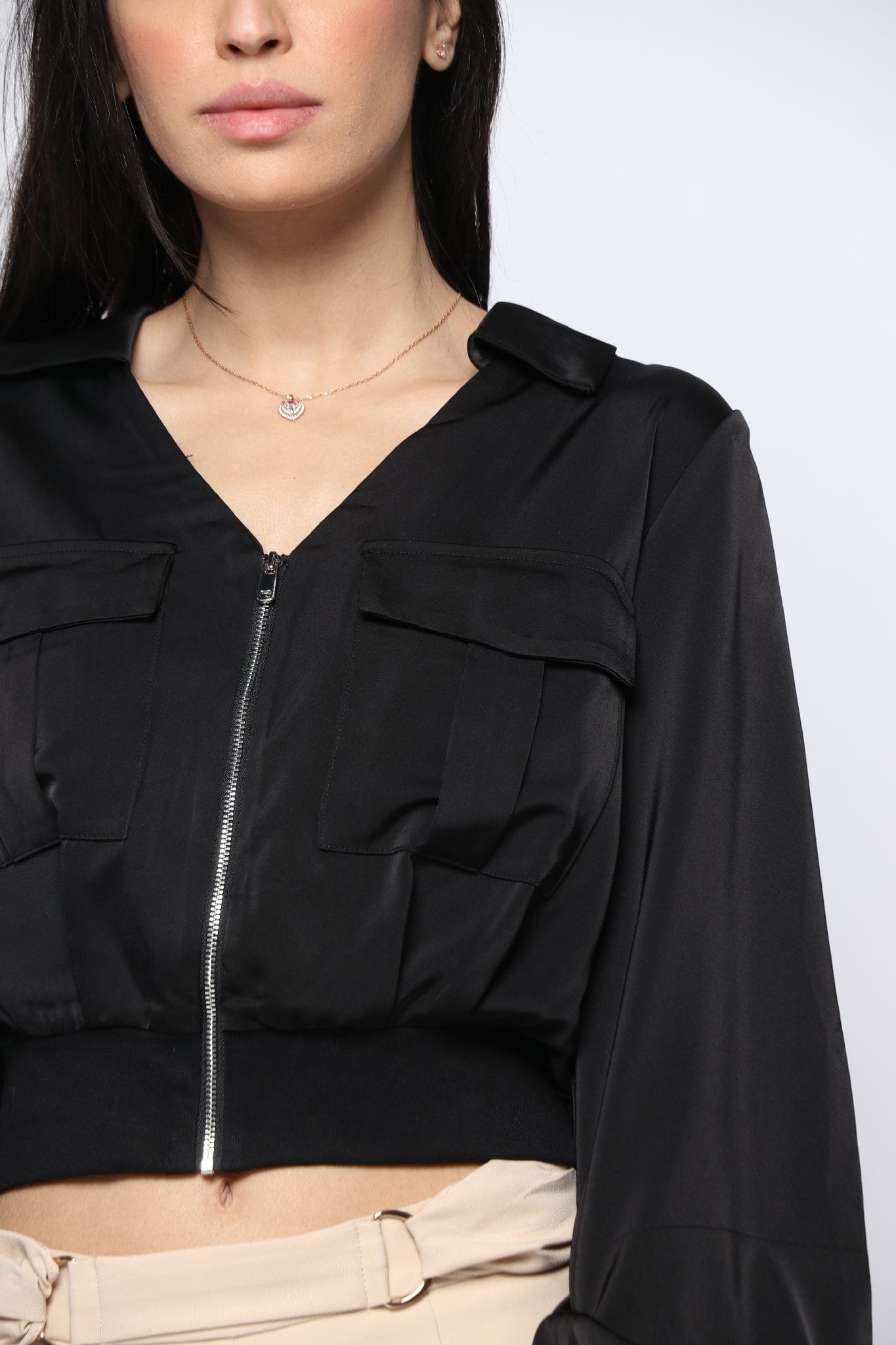بلوزة نص بطن مخصر بسحاب كم طويل نسائي