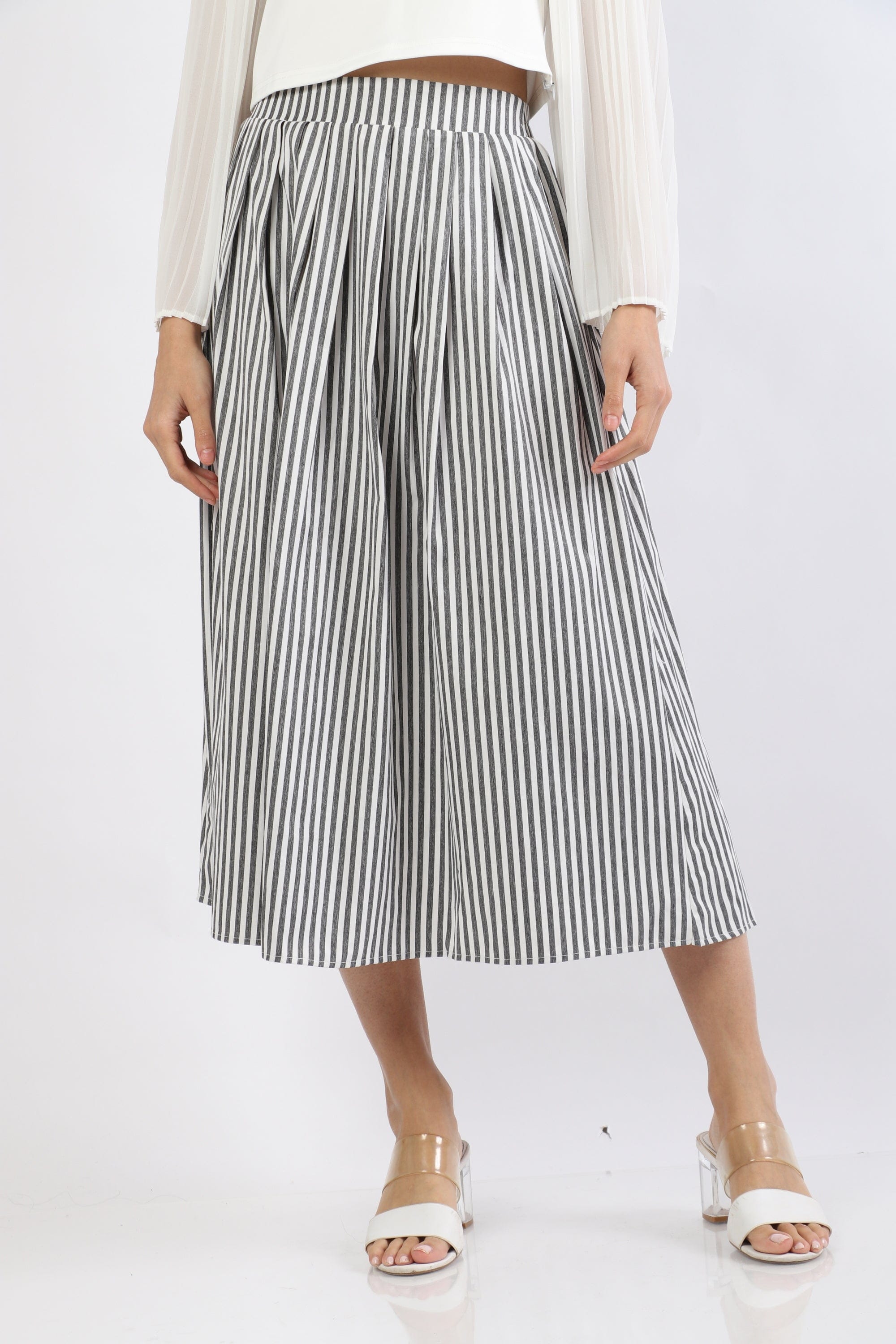 تنورة ميدي مقلمة بالطول بكسرات