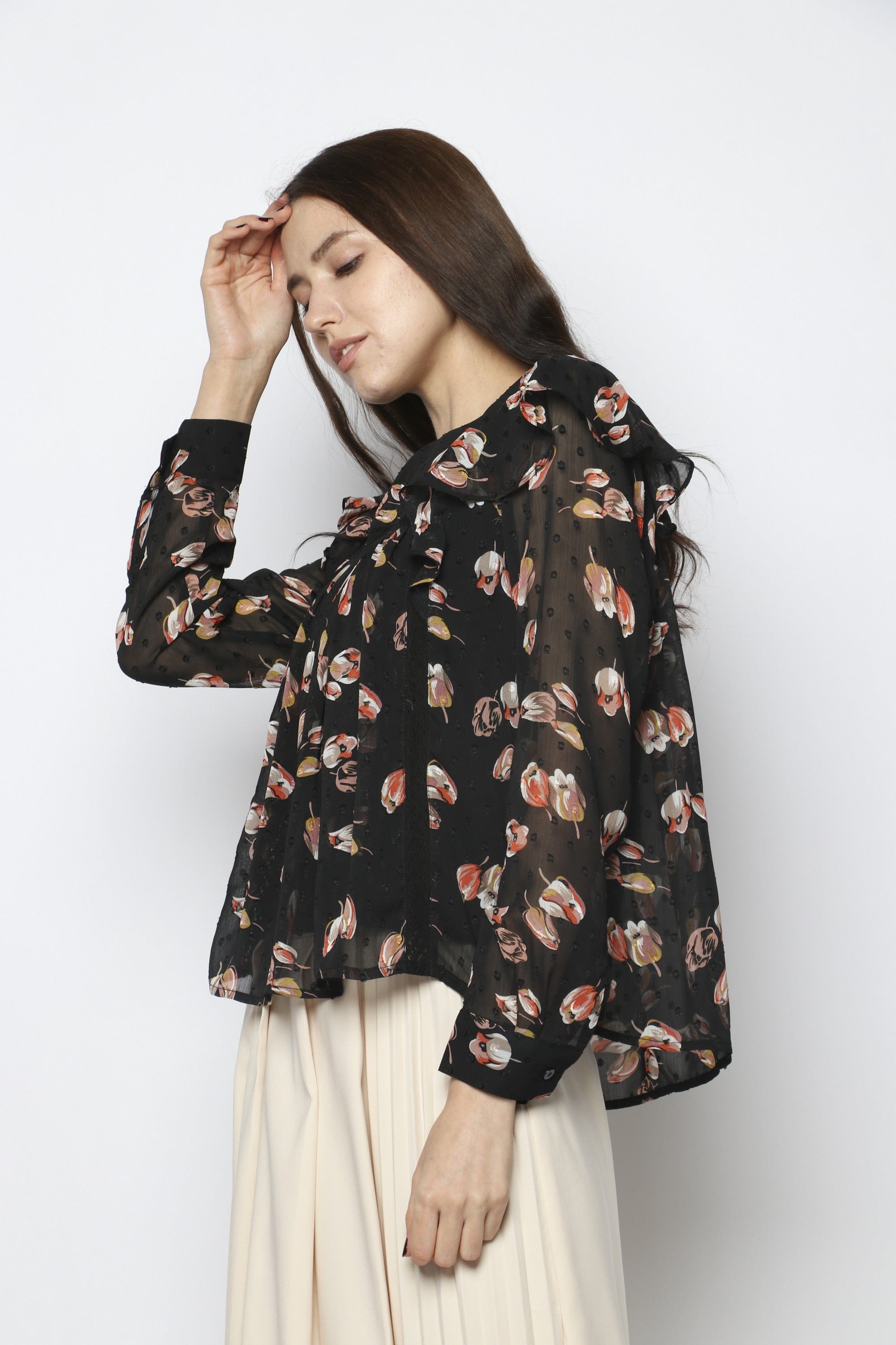 بلوزة مشجرة مزينة بطبعات من الورود نسائي