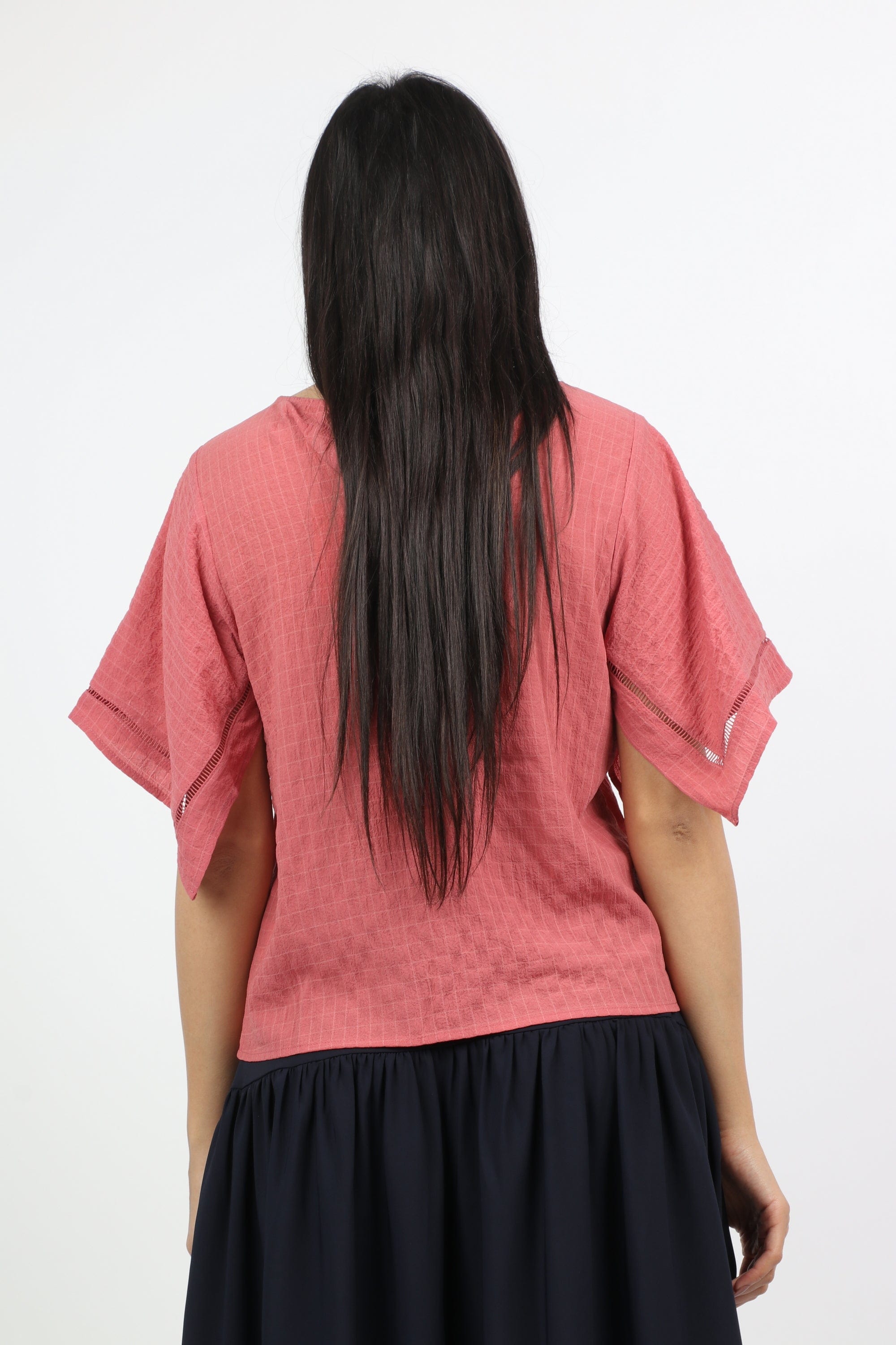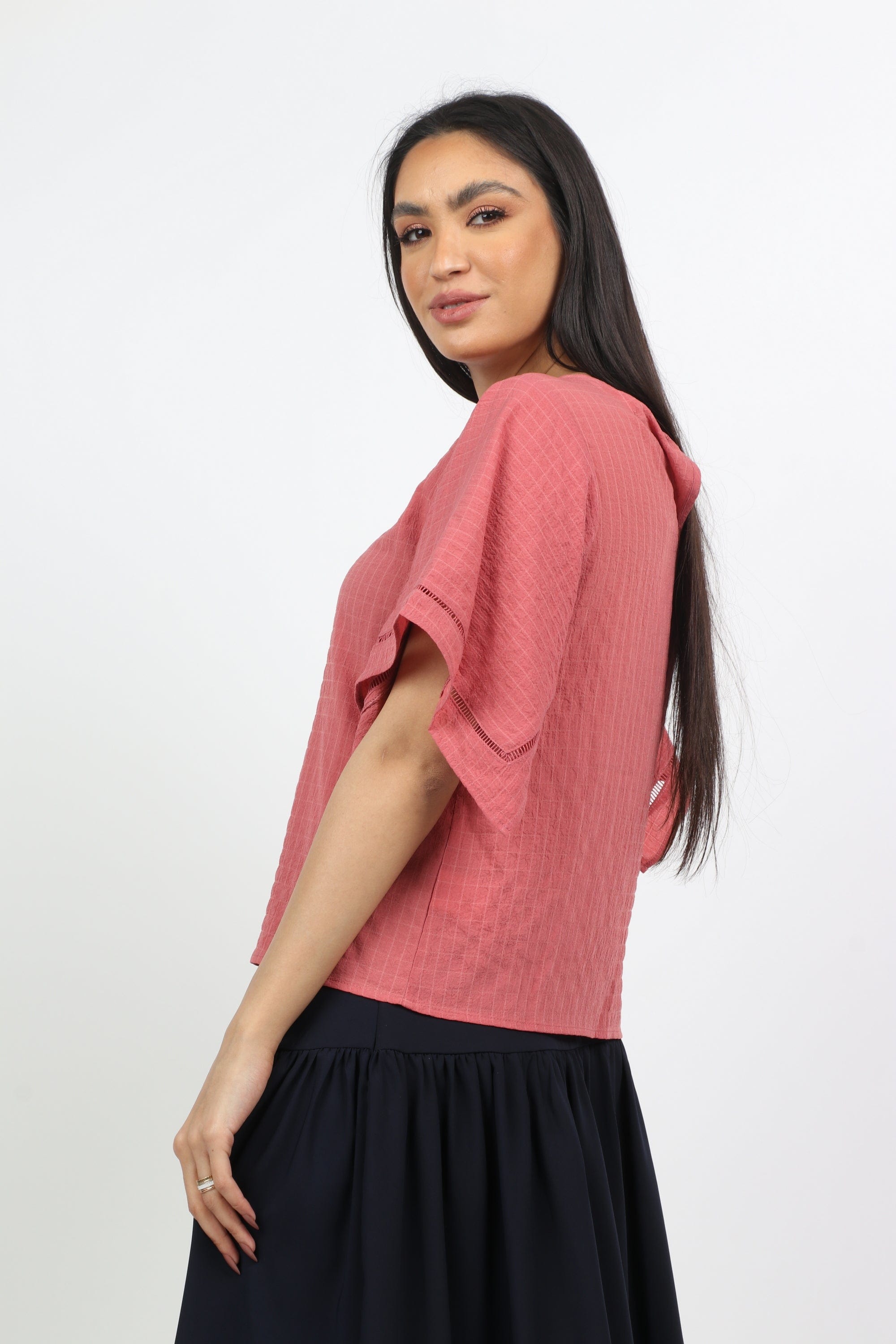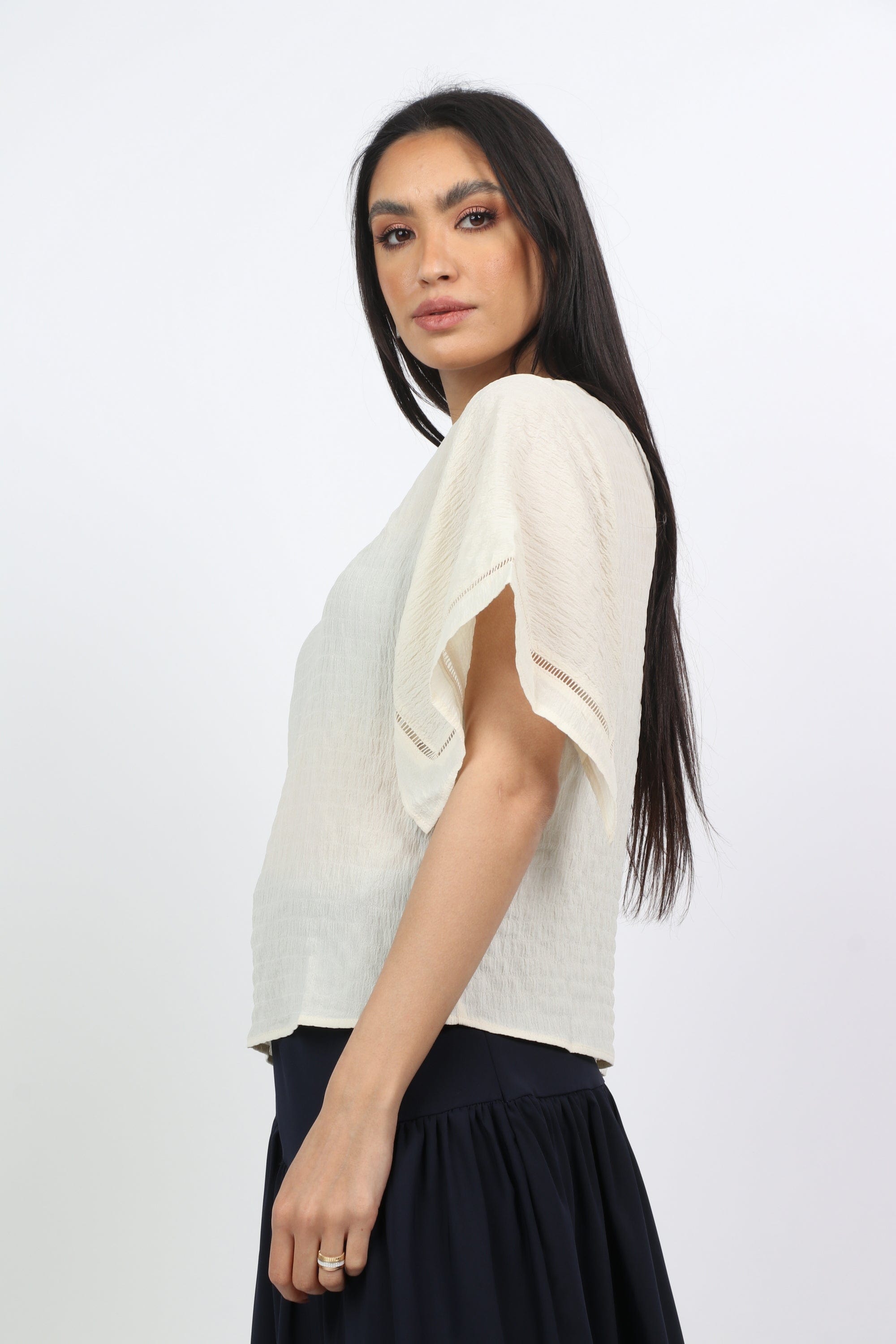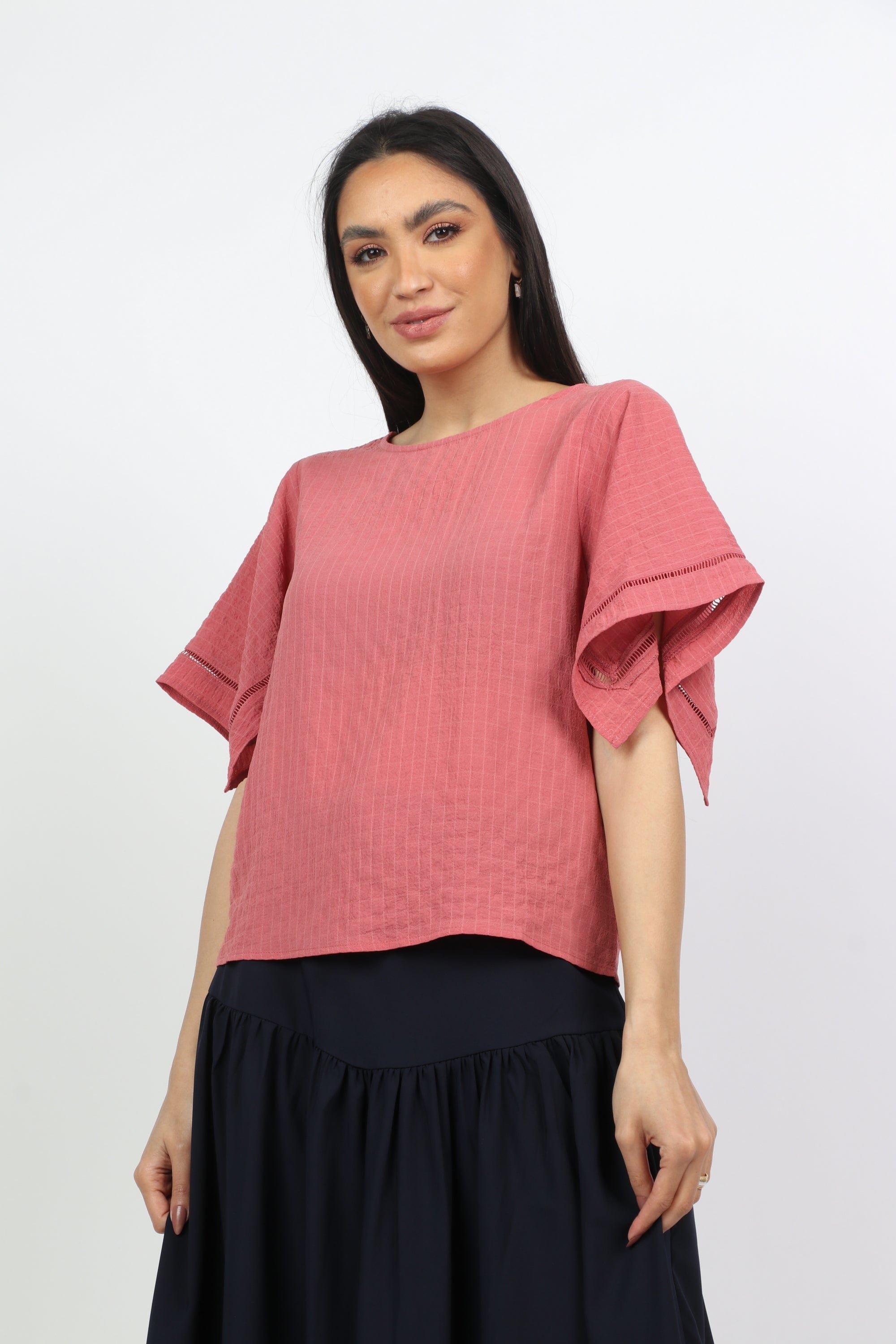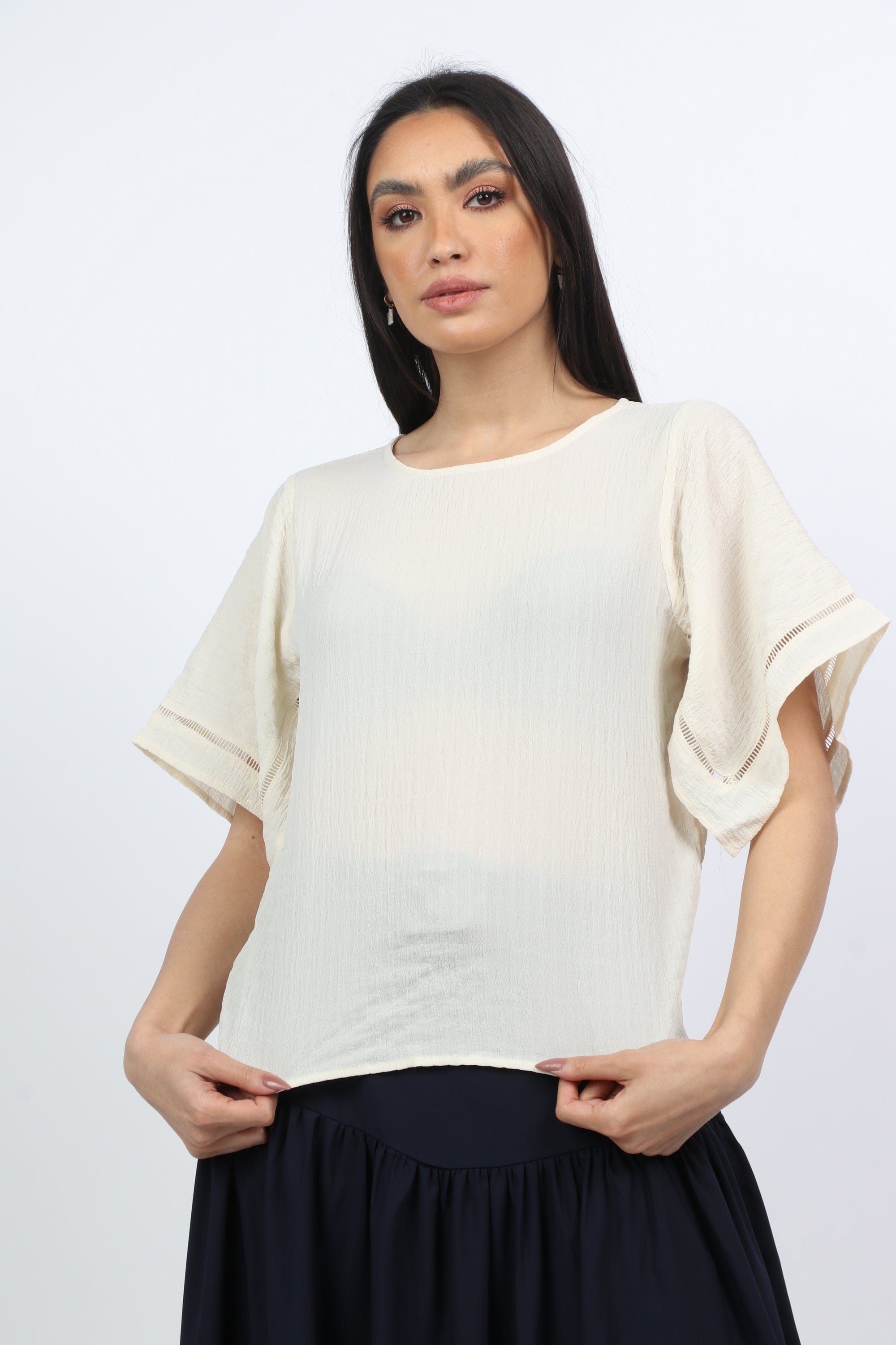 بلوزة بأكمام فراشة ورقبة دائرية