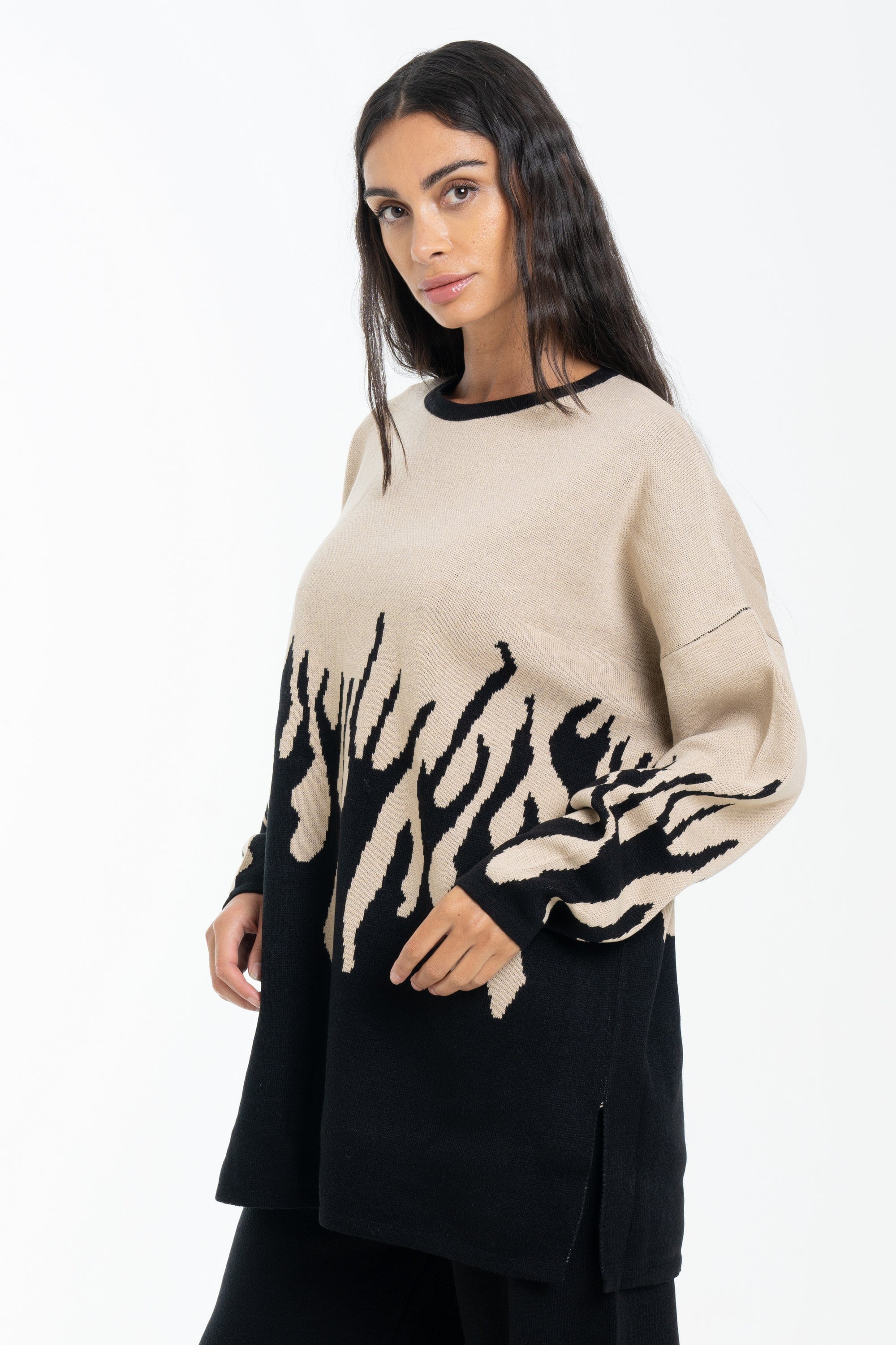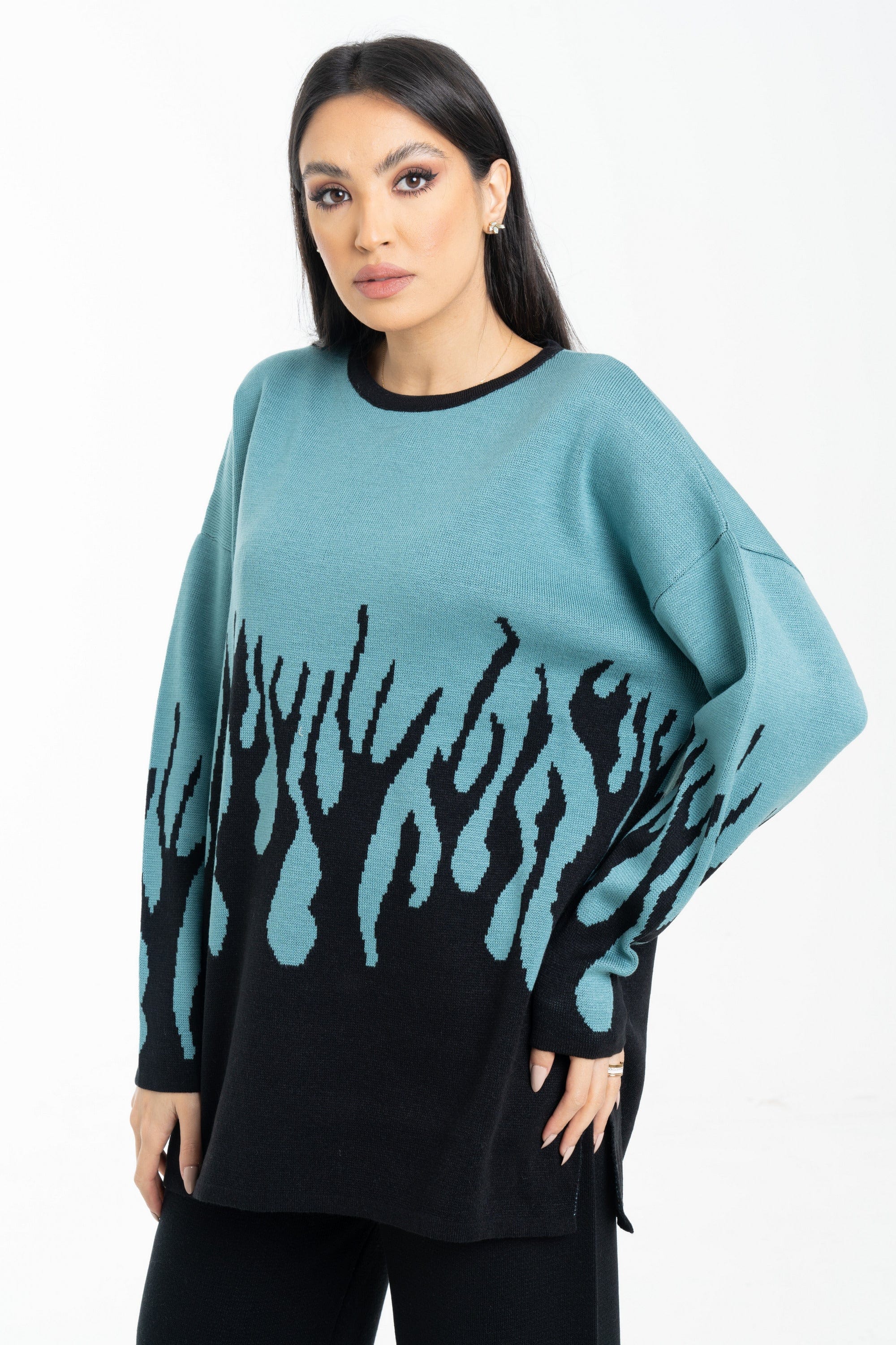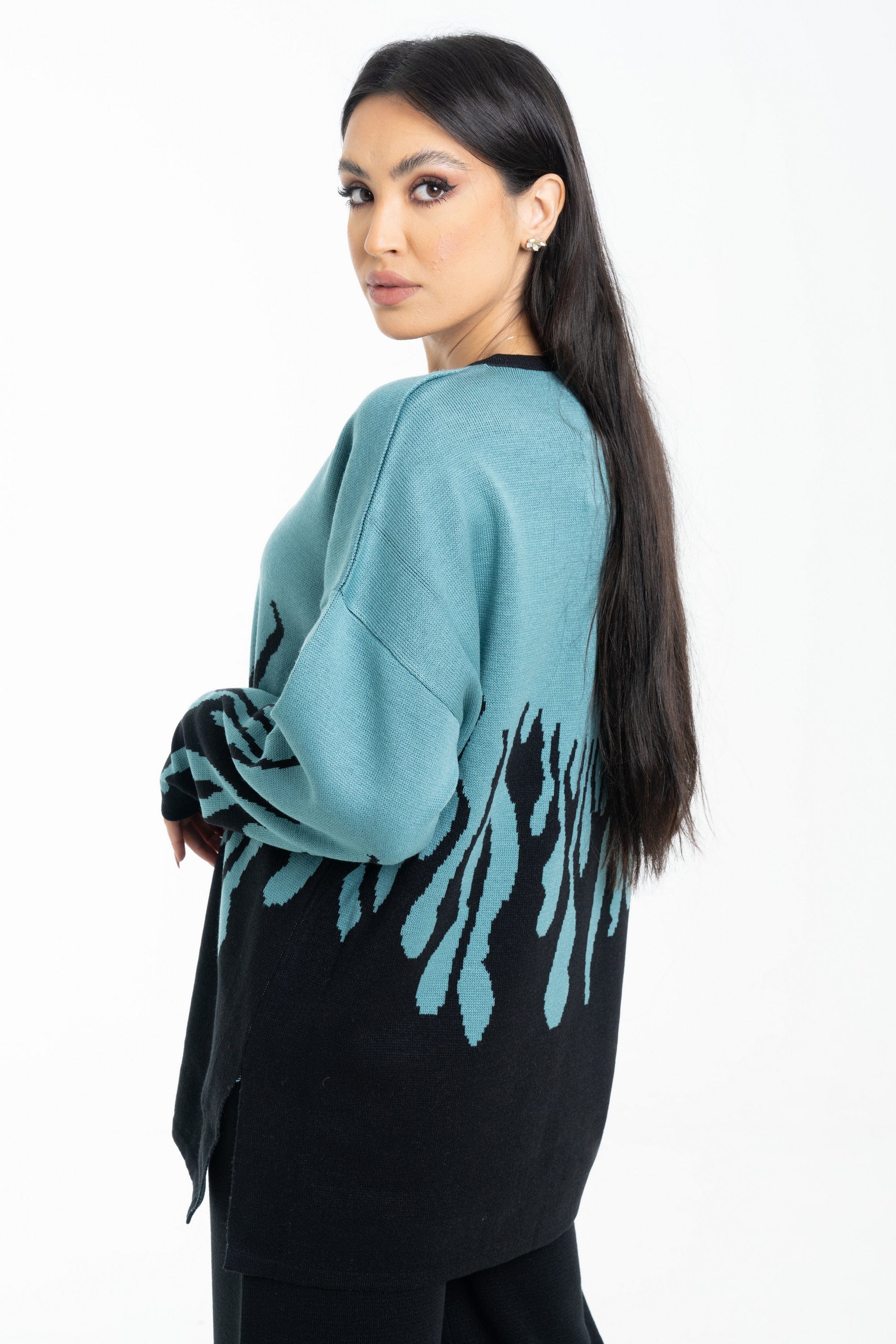 بلوفر بيتي منقوش أوفر سايز كم طويل نسائي