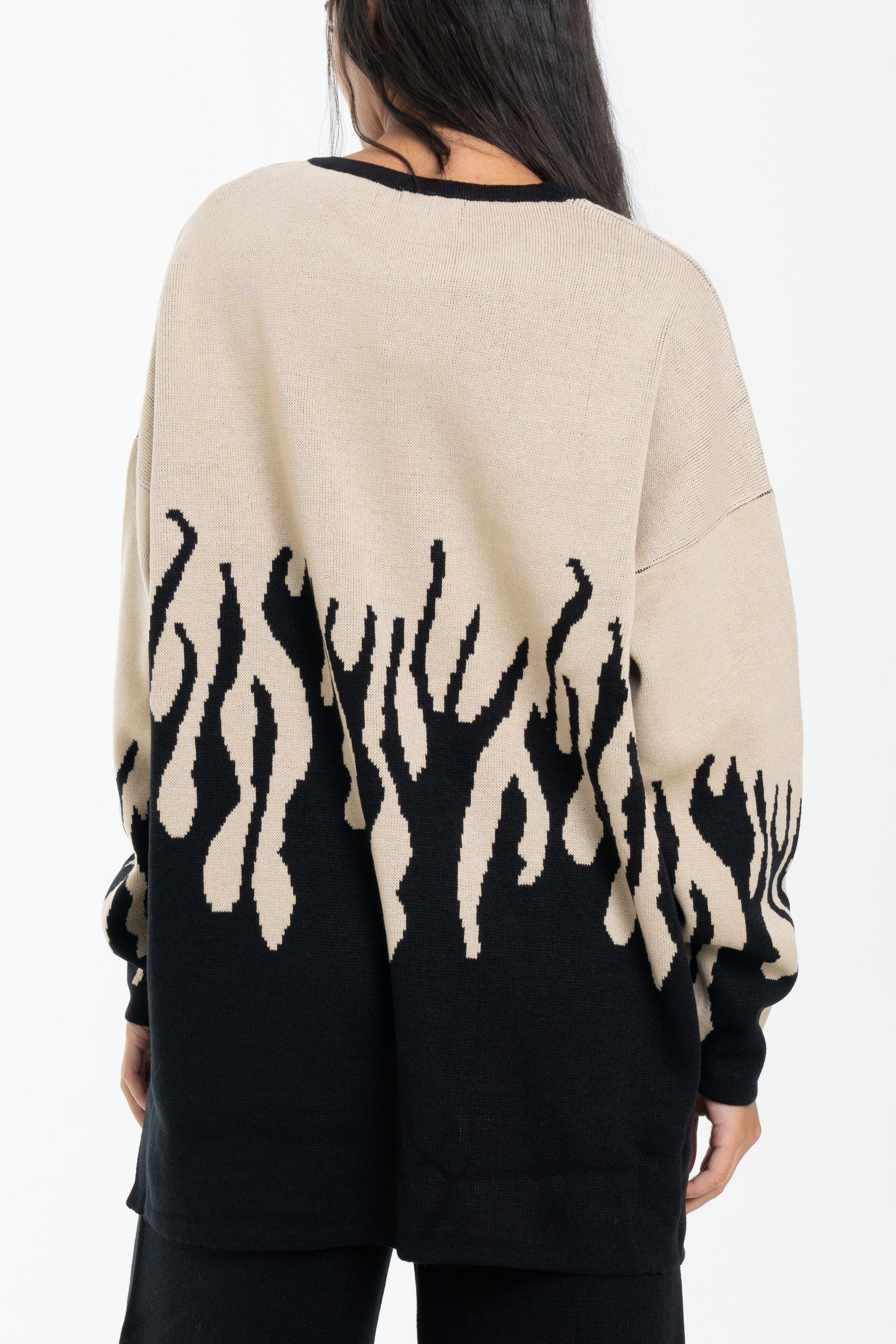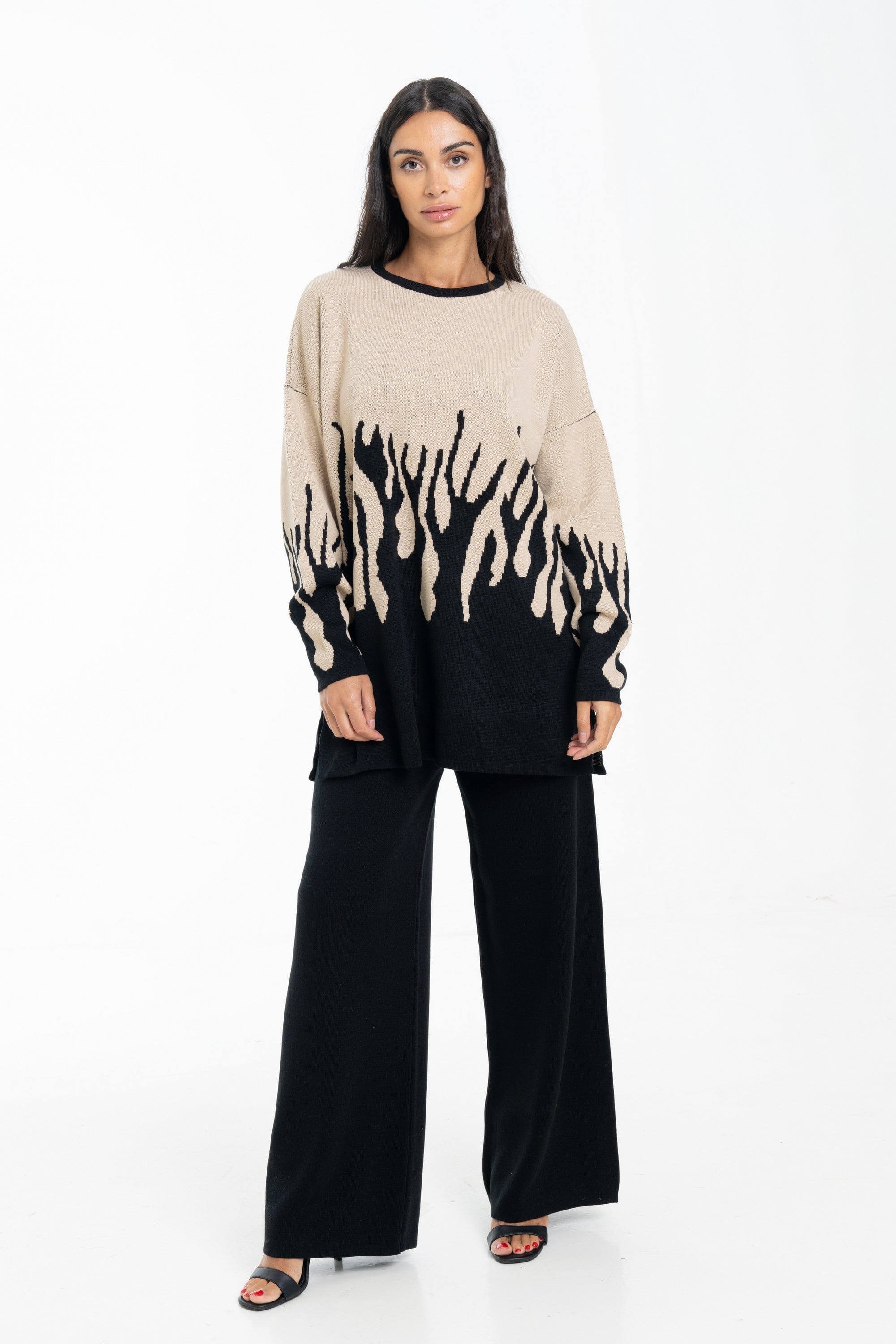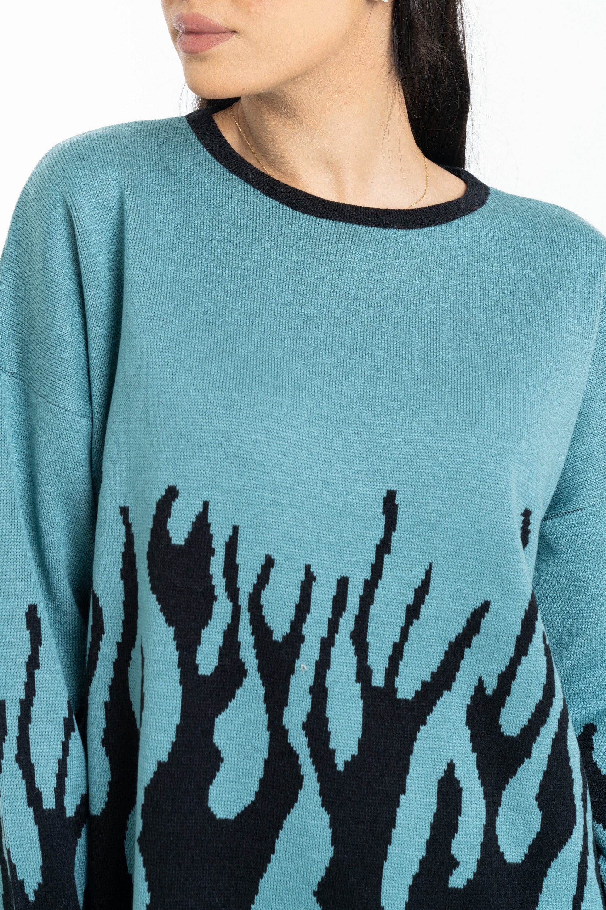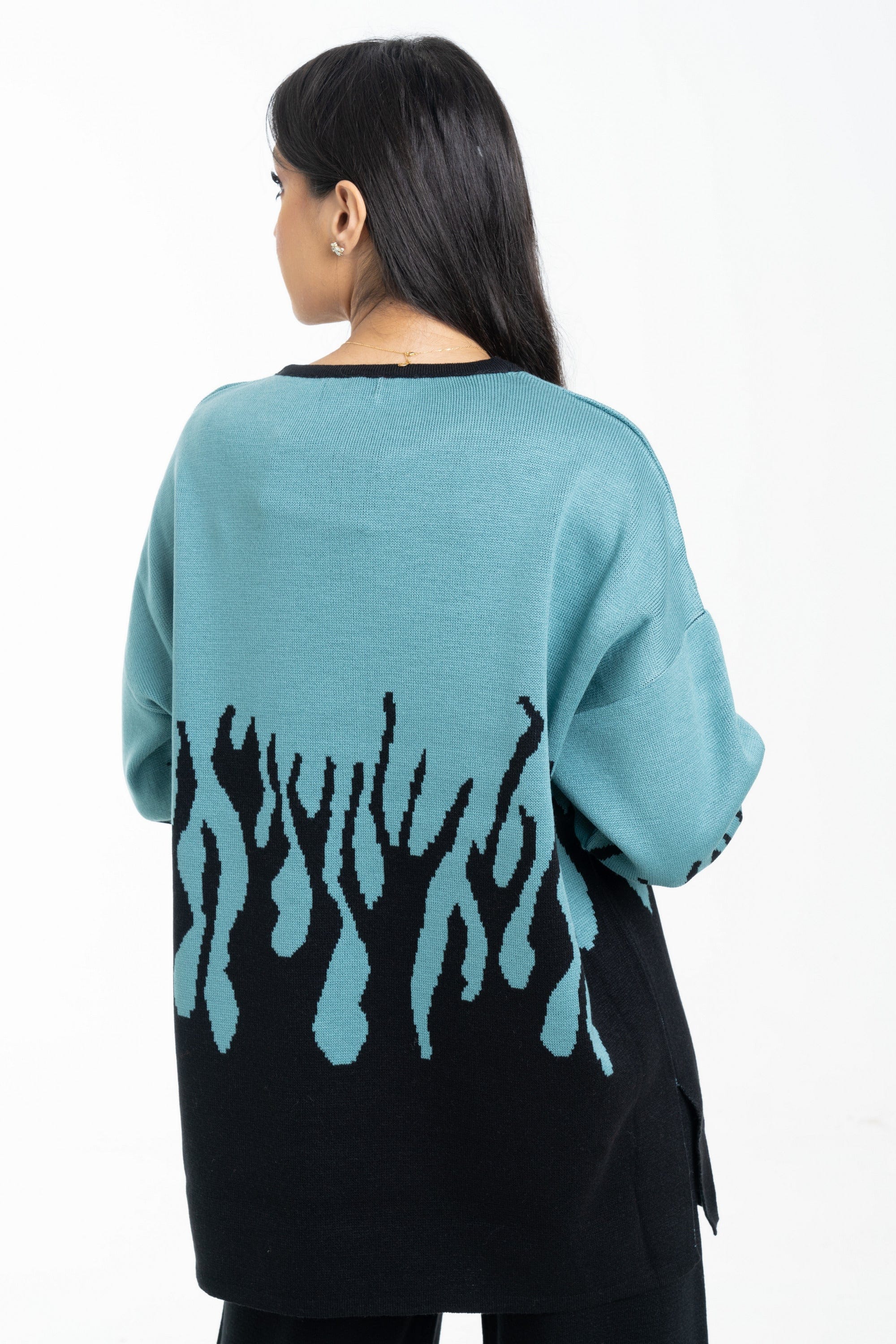 بلوفر بيتي منقوش أوفر سايز كم طويل نسائي