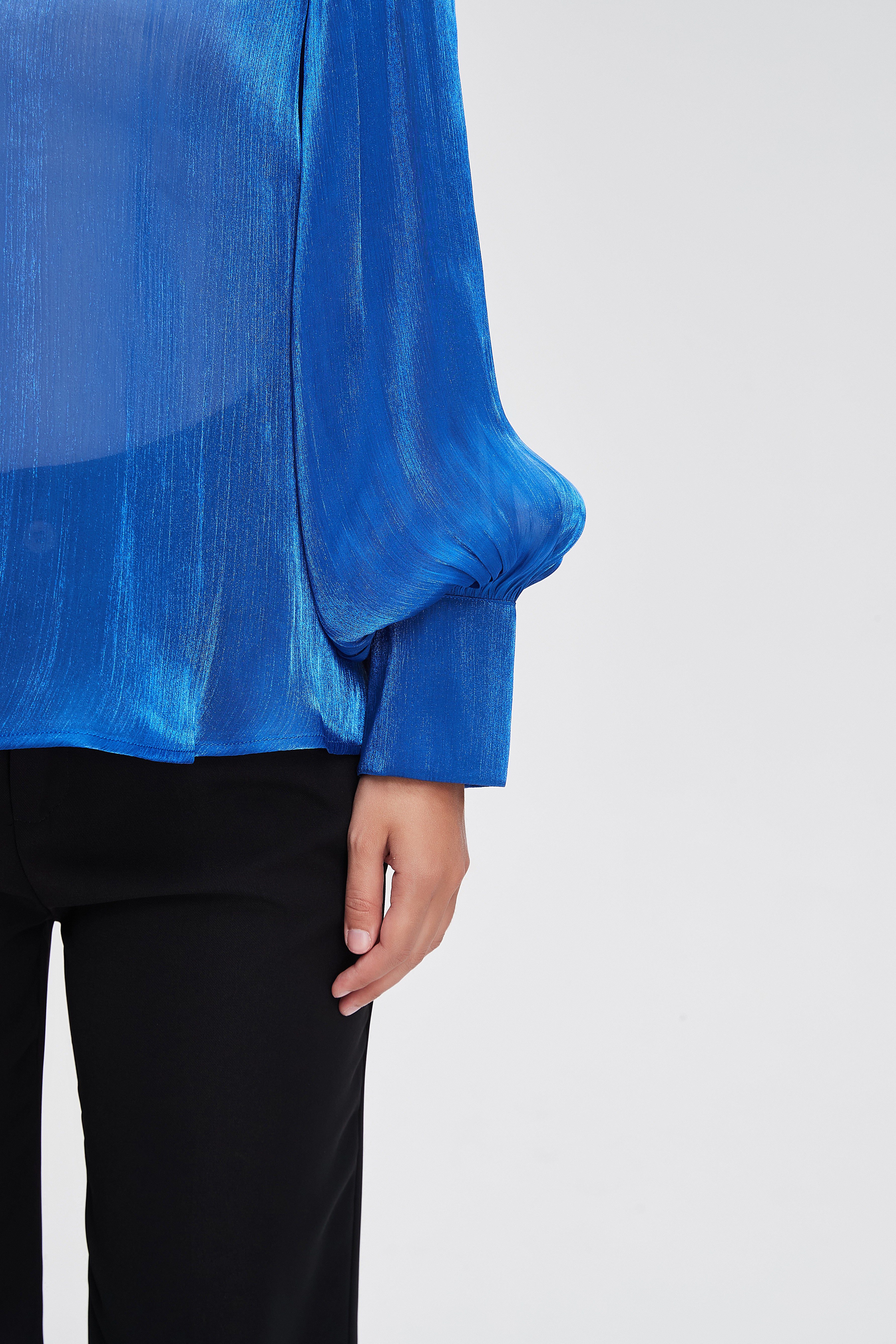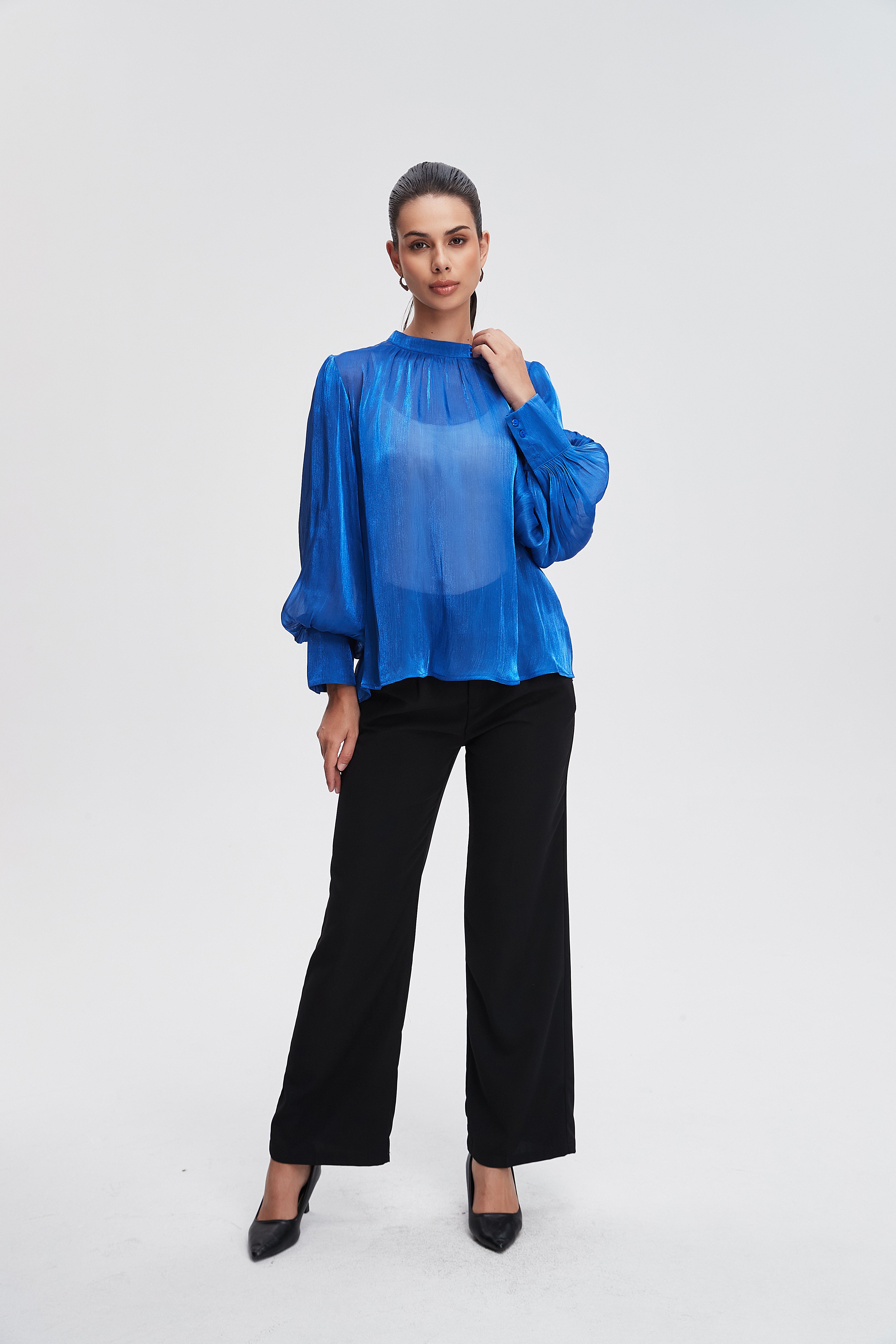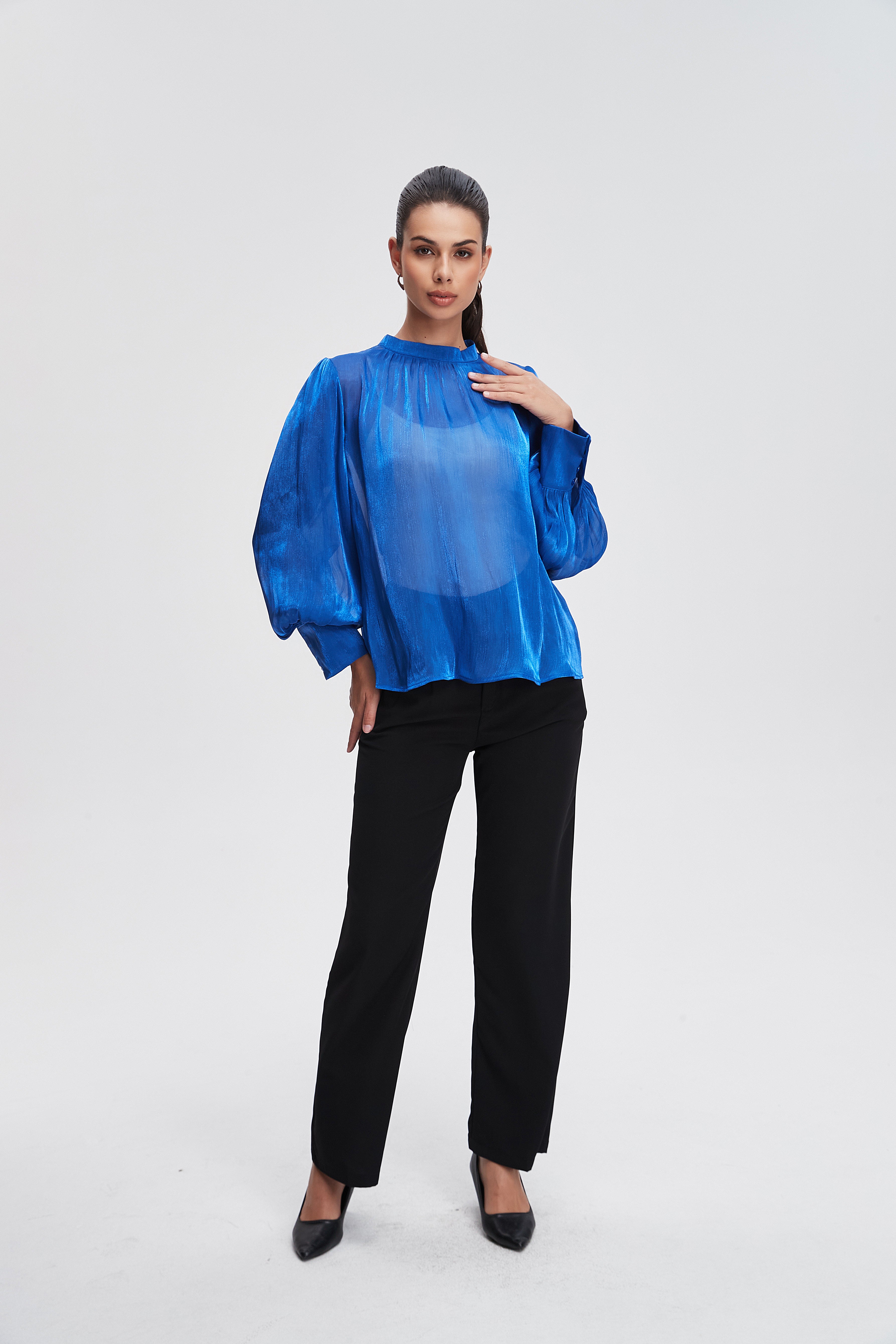 بلوزة بأكمام طويلة نسائية منفوخة بلميع