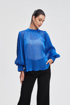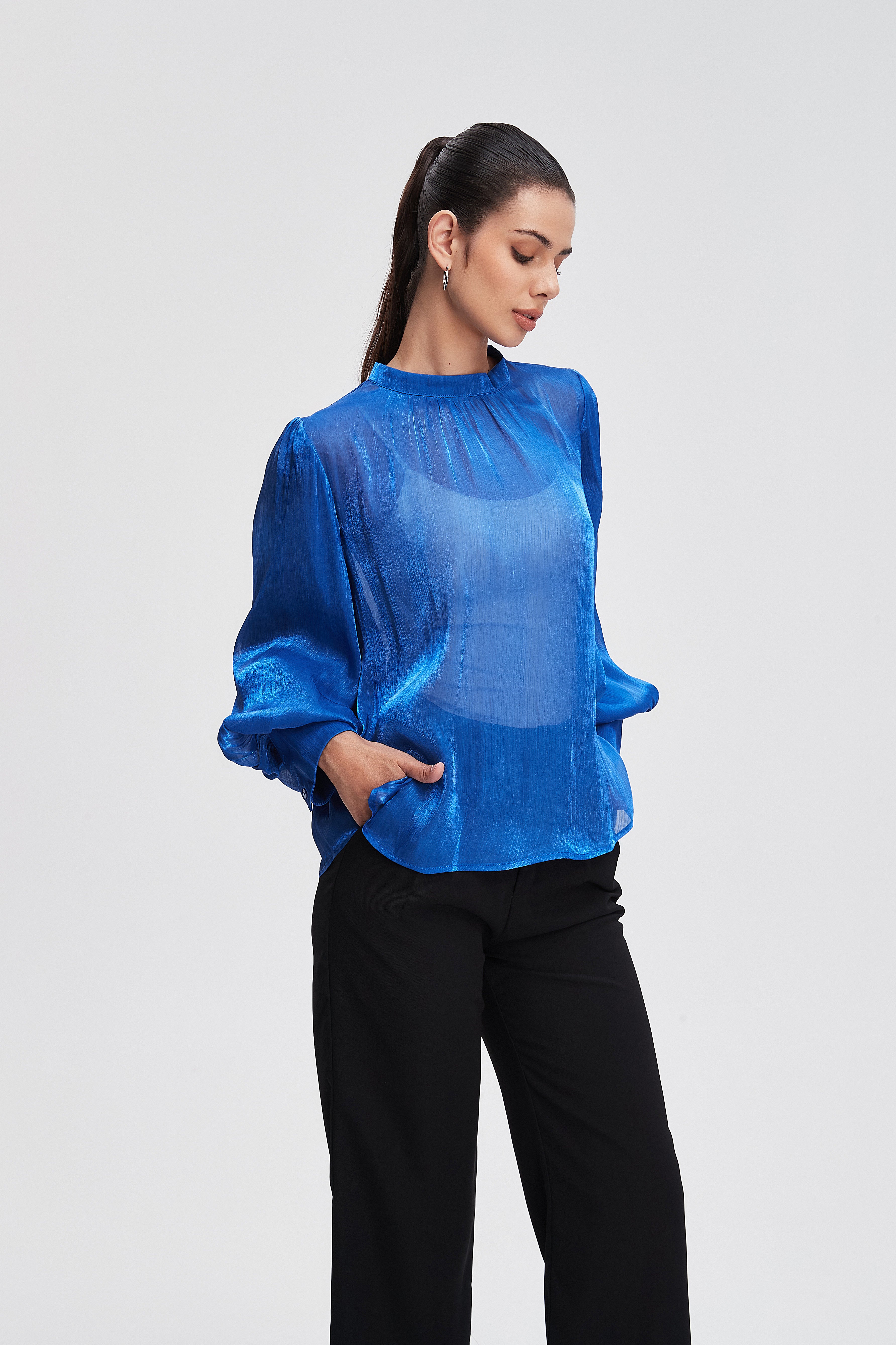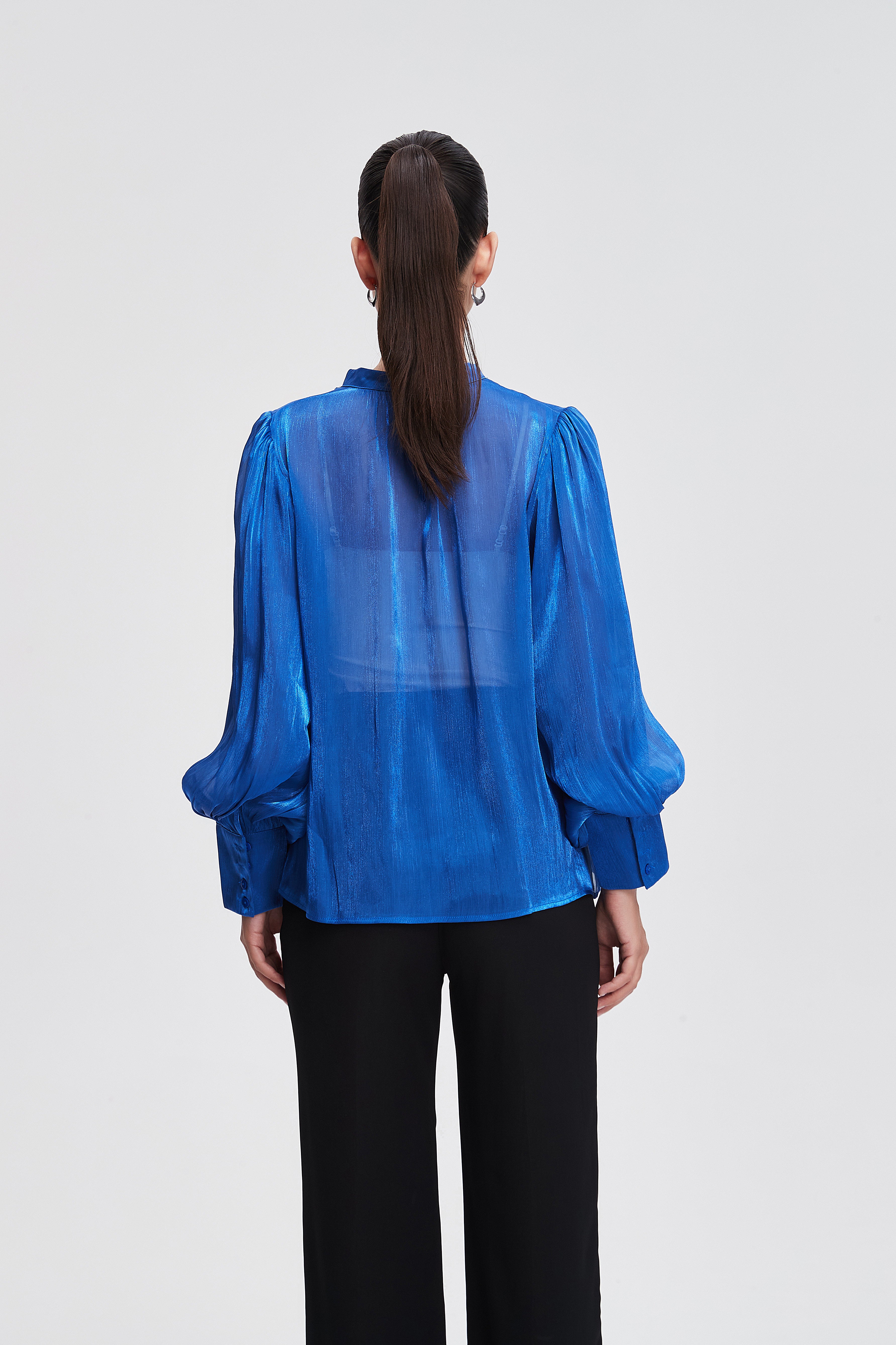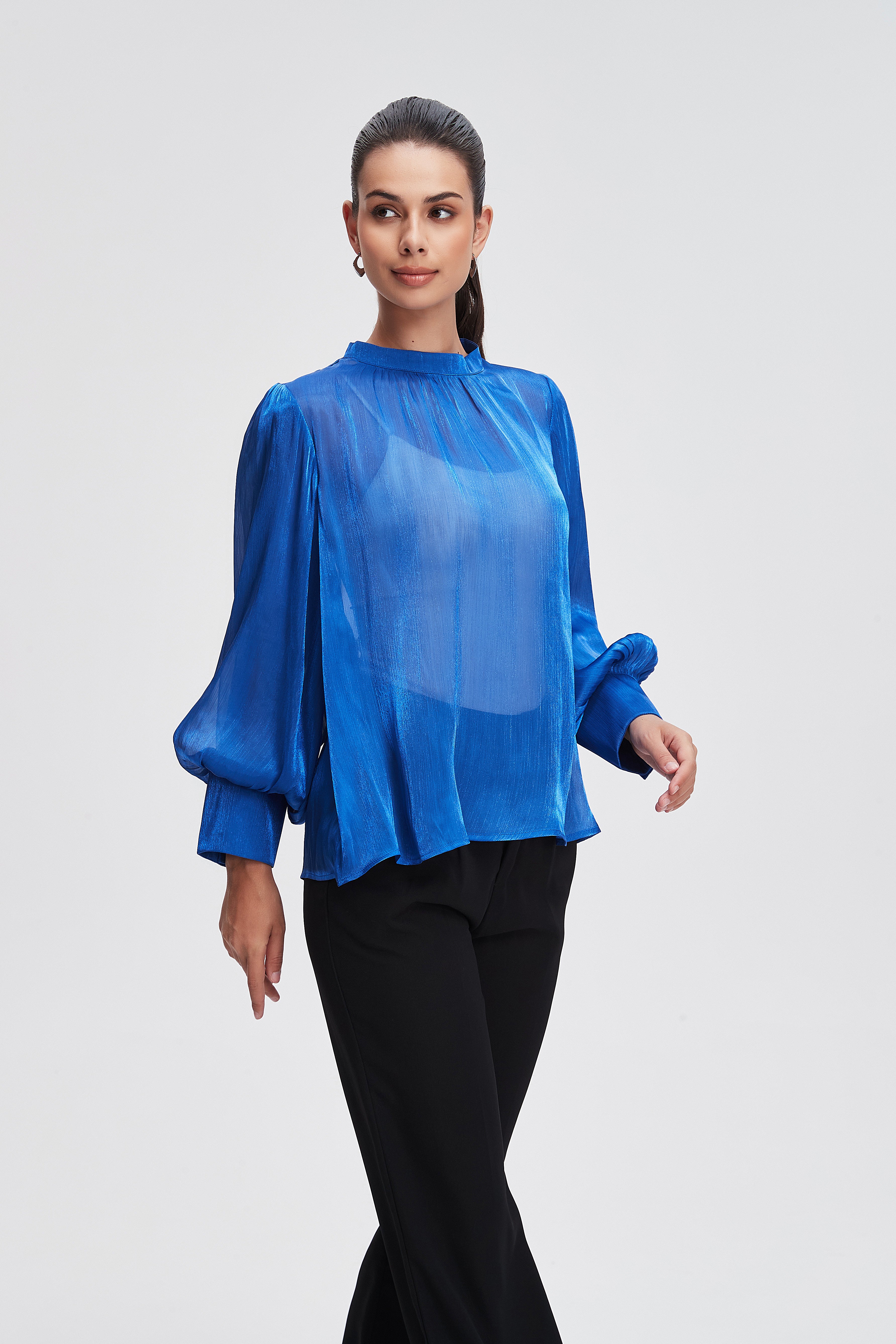 بلوزة بأكمام طويلة نسائية منفوخة بلميع