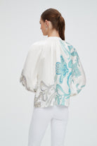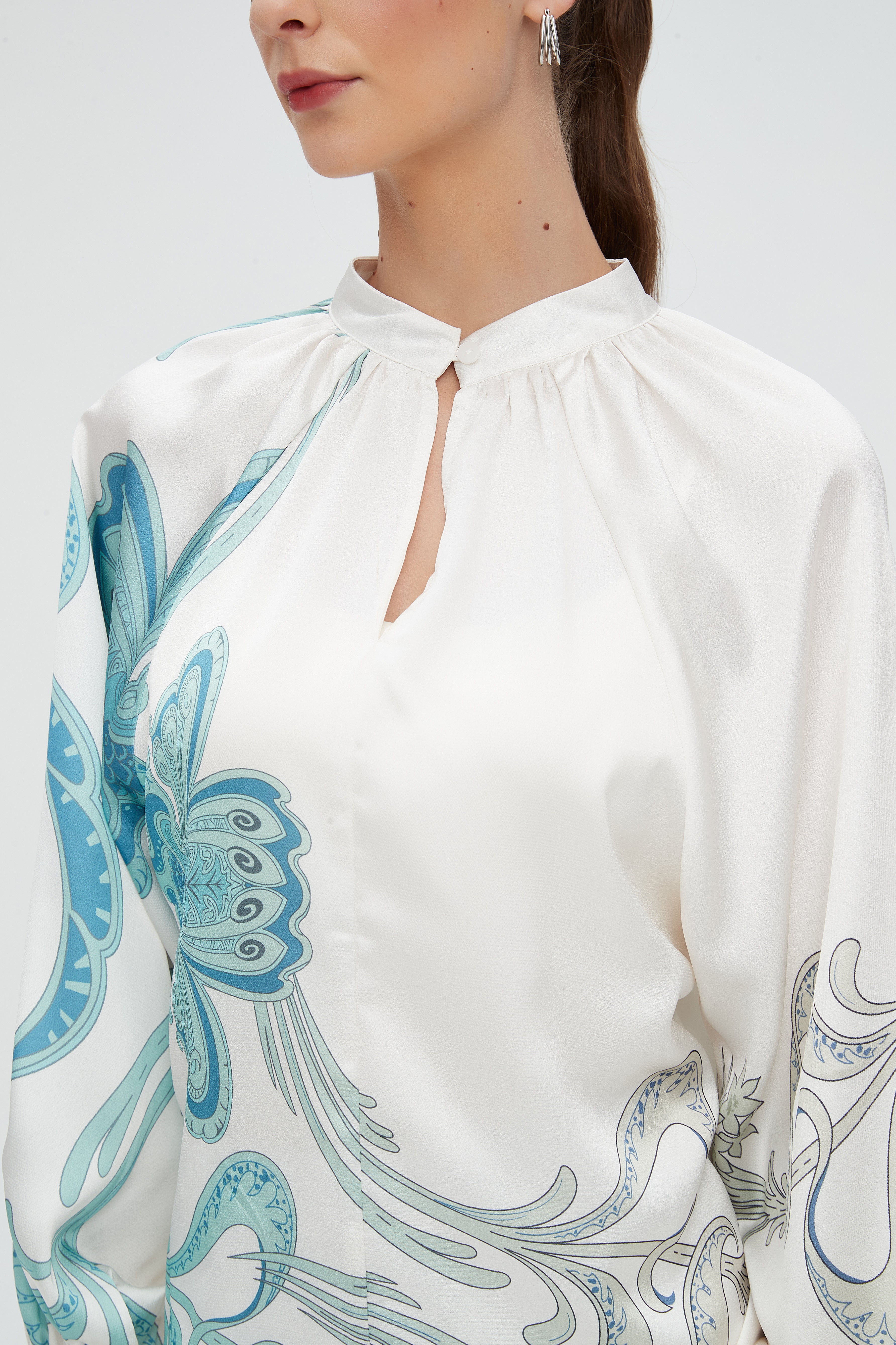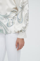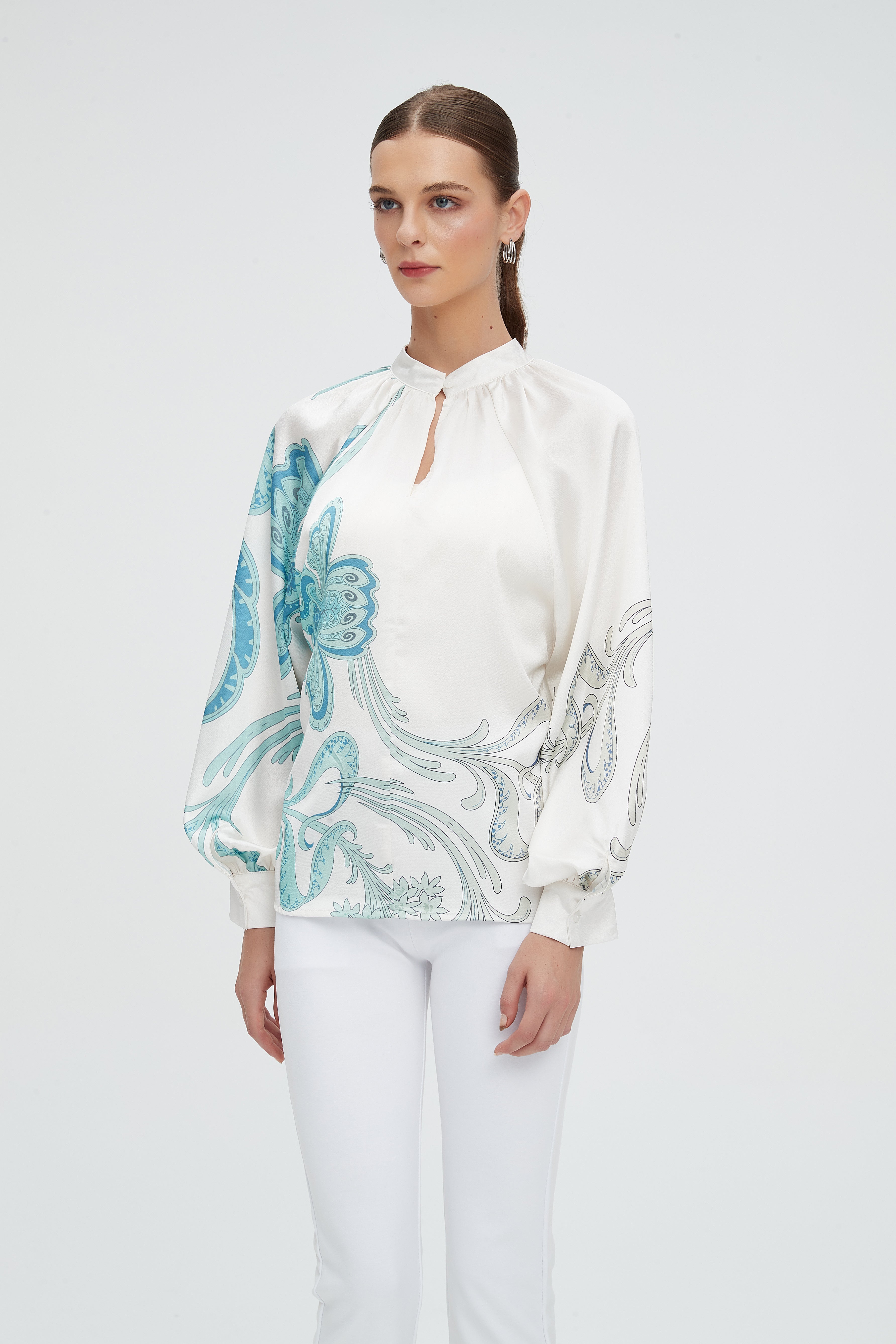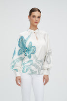 بلوزة نسائية منقوشة بكم طويل