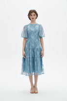 فستان ميدي نصف كم مكشكش