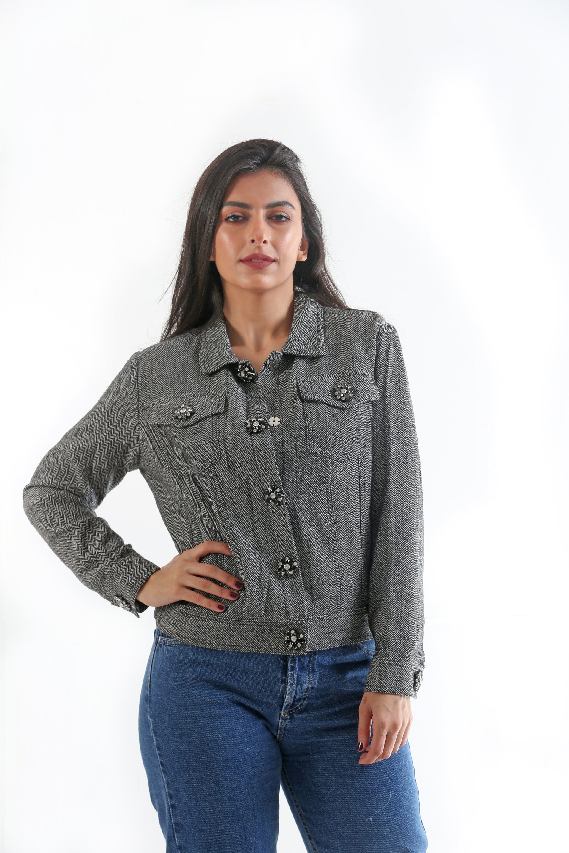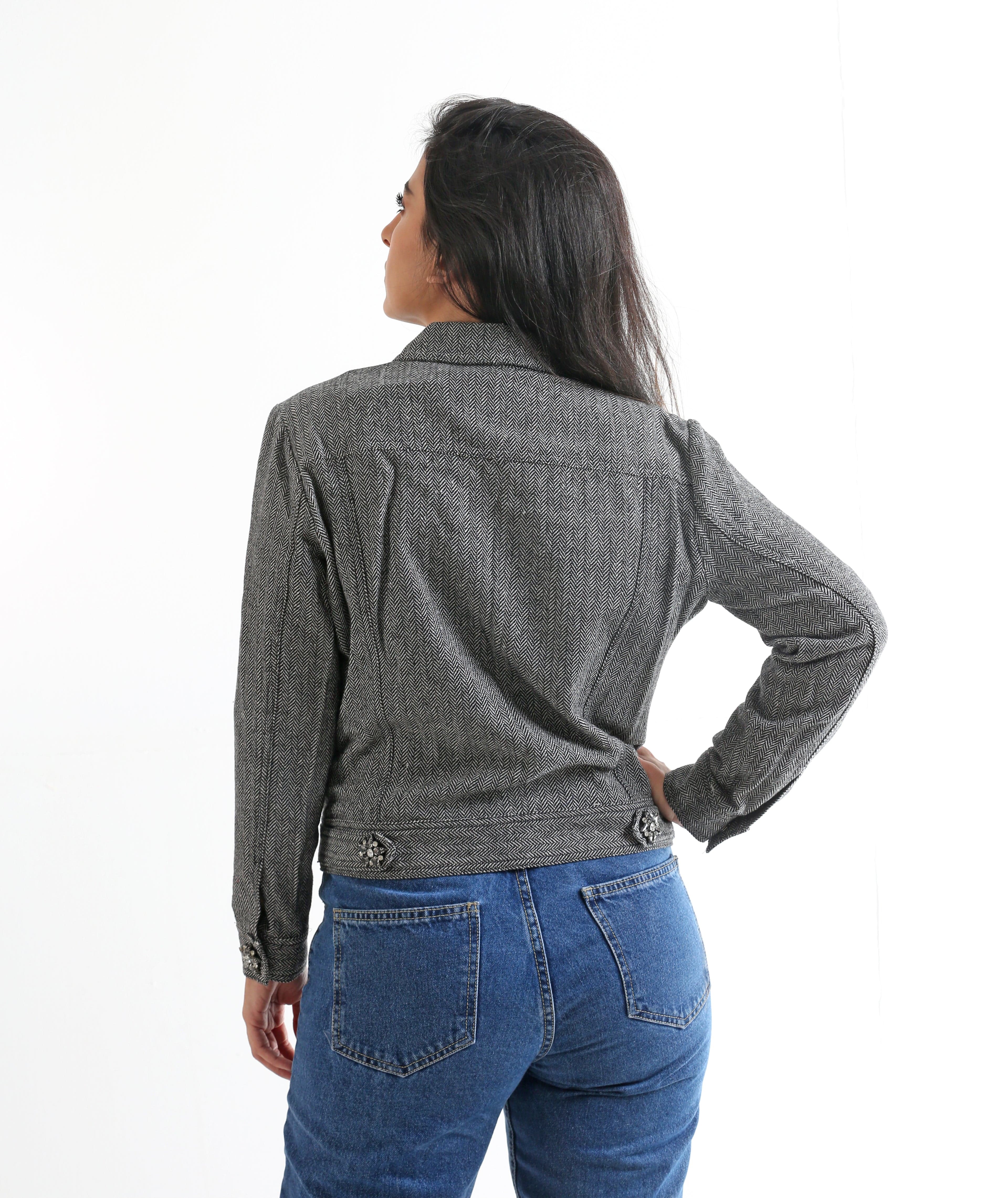 سترة سادة بأزرار كبيرة بأكمام طويلة