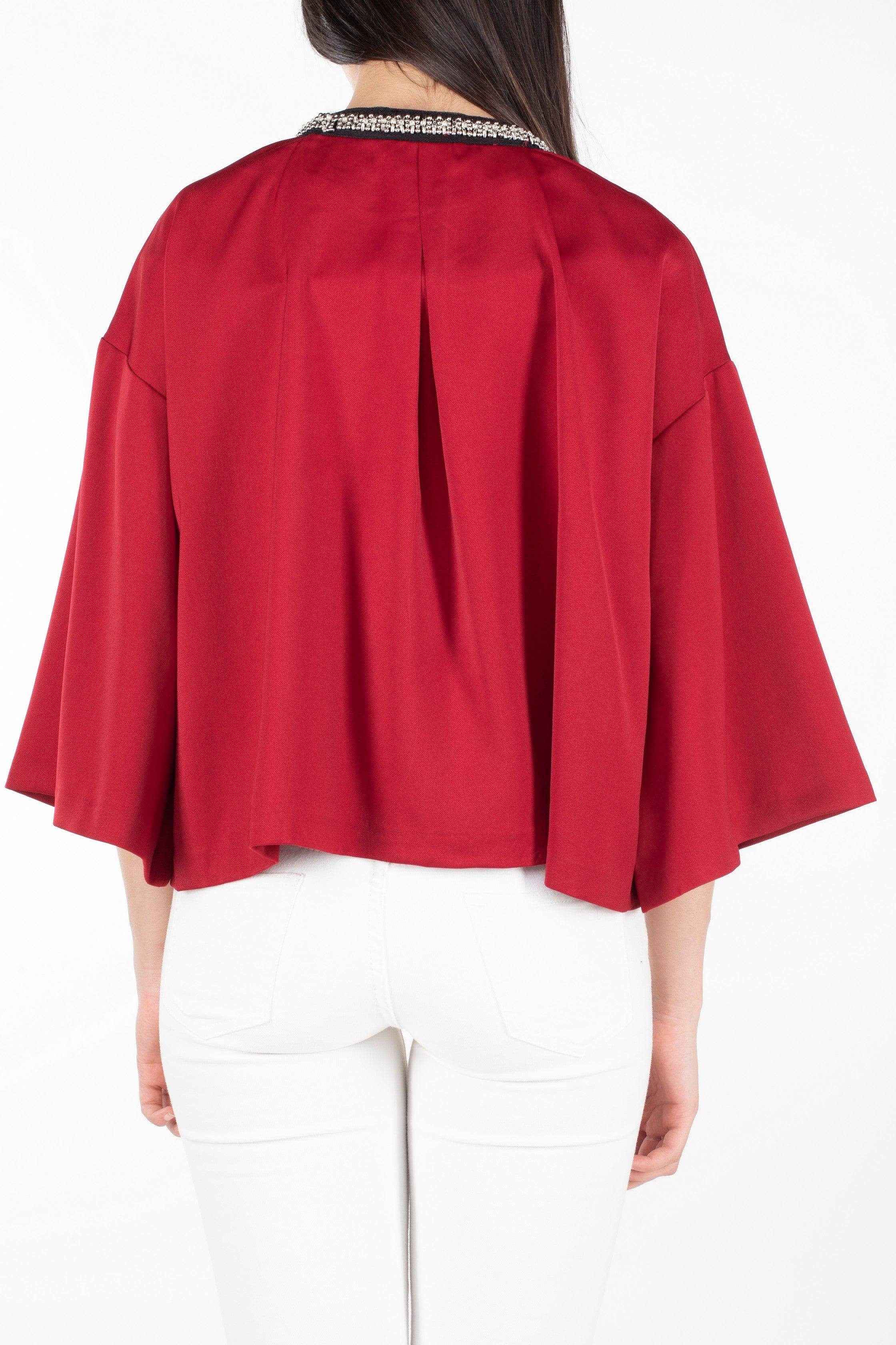 جاكيت نسائي مطرز من الياقة 3/4 كم سادة