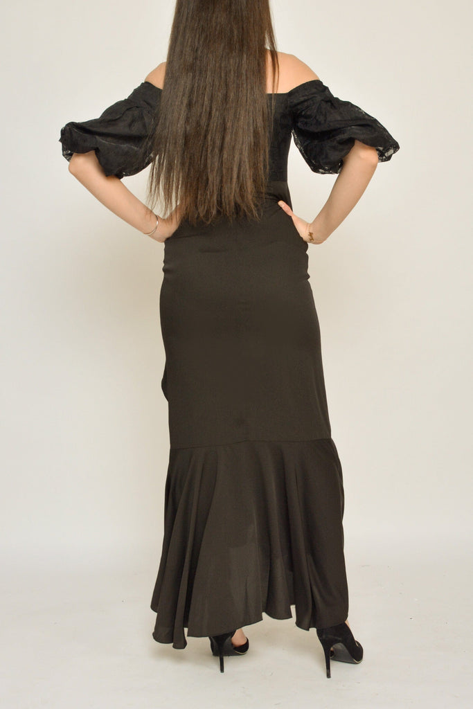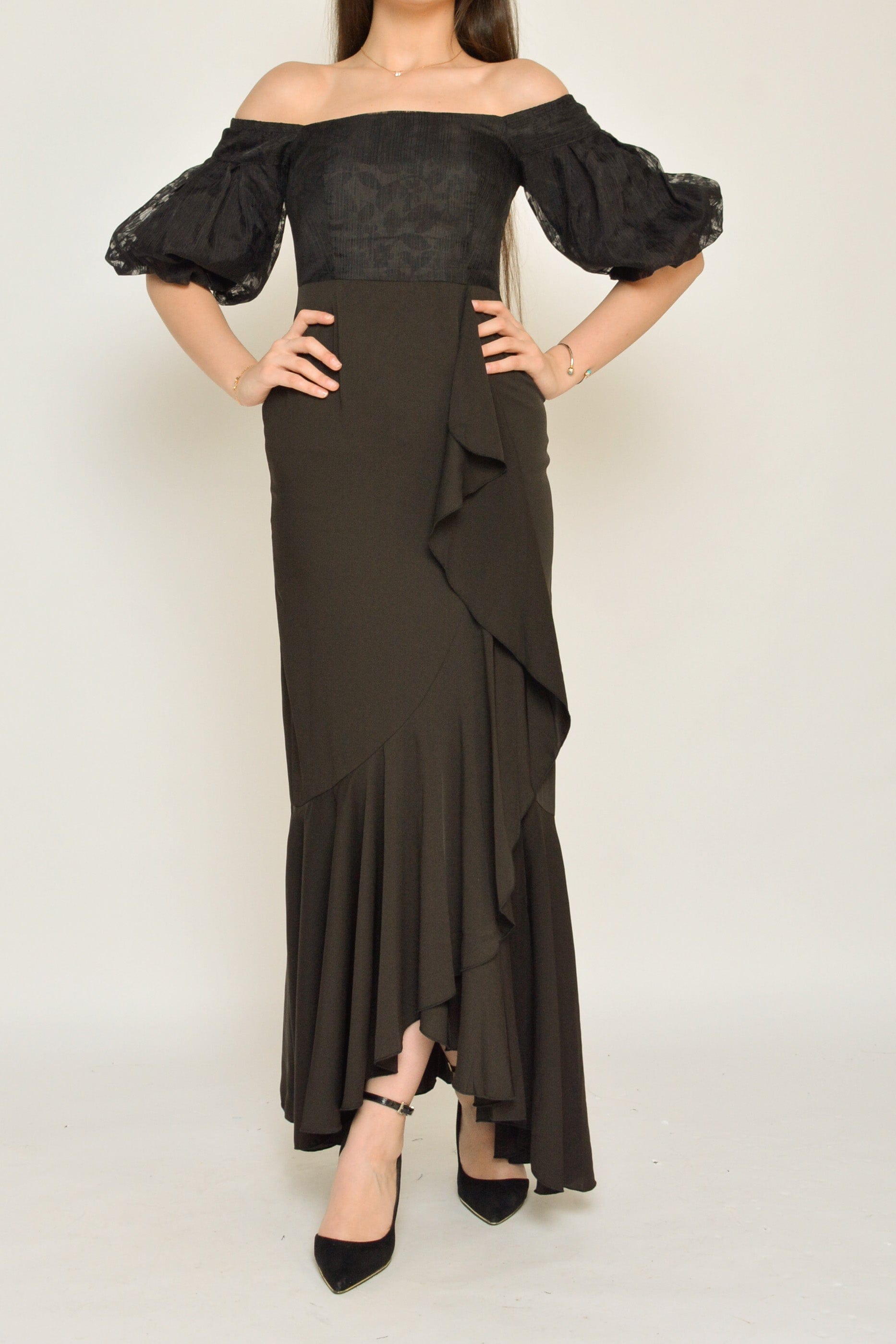 فستان ماكسي سهرة سادة اوف شولدر 3/4 كم