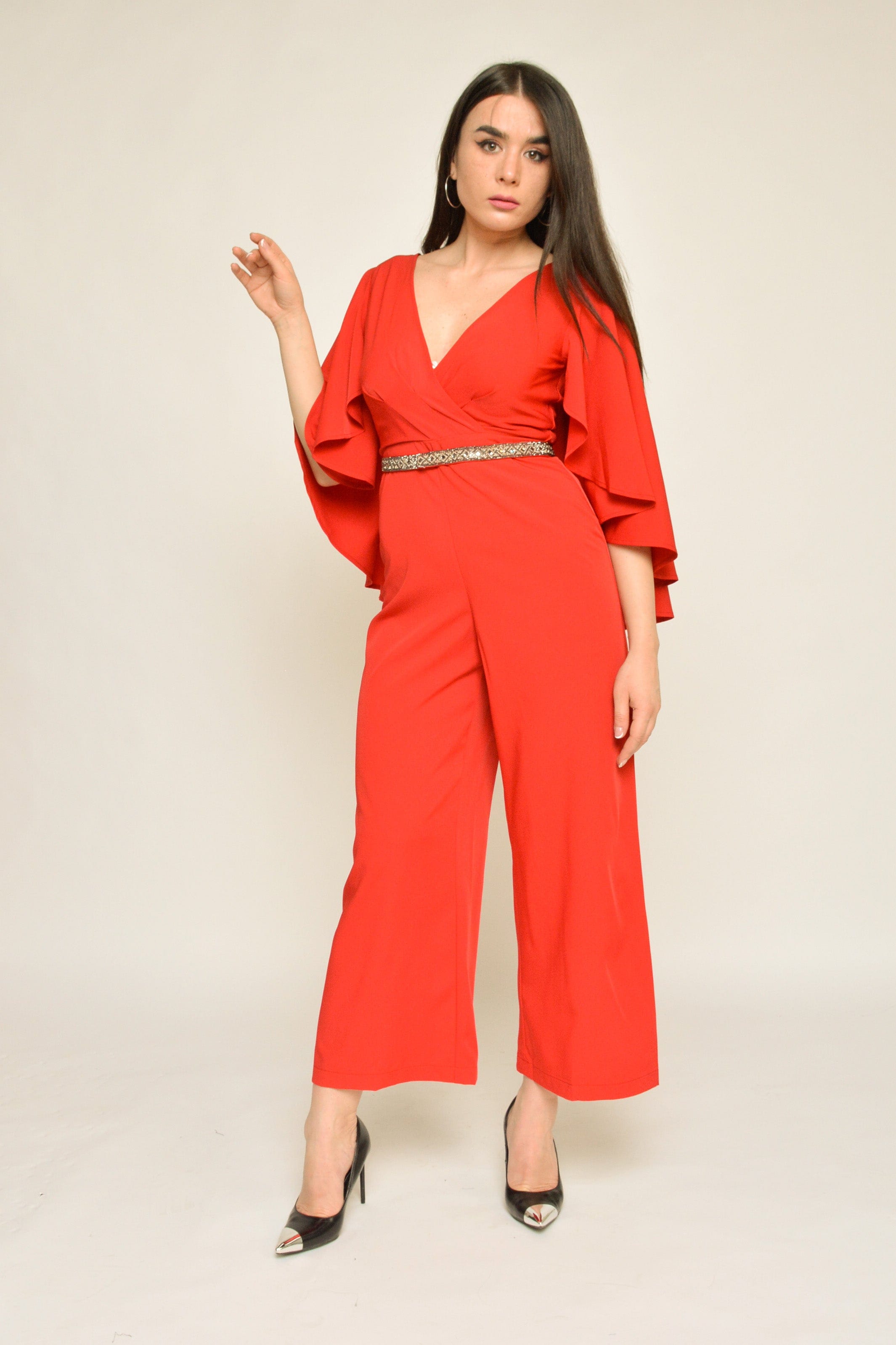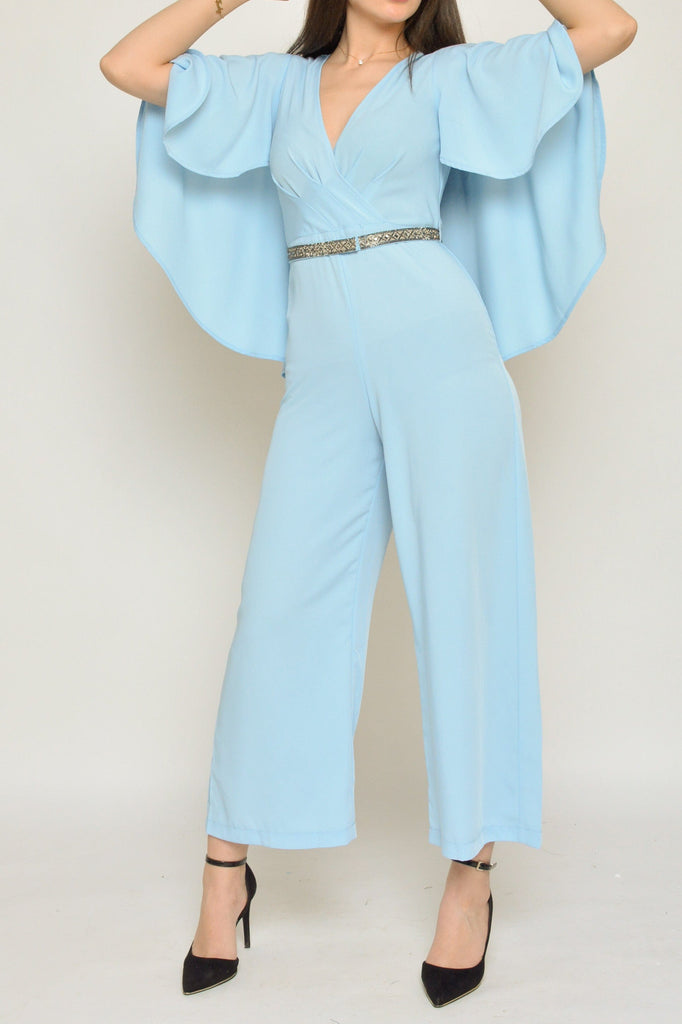 جمبسوت نسائي بأكمام فراشة بحزام علي الخصر