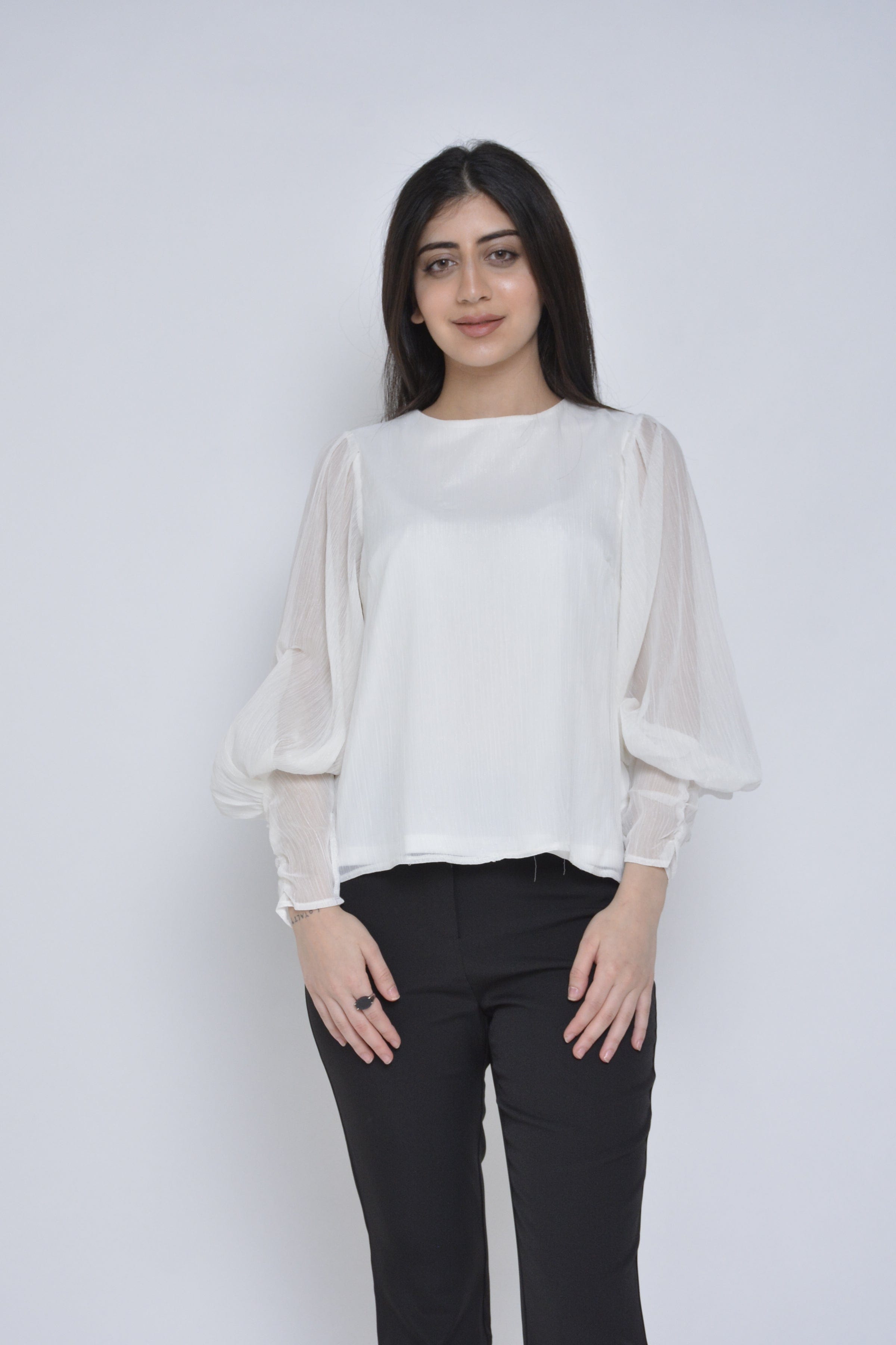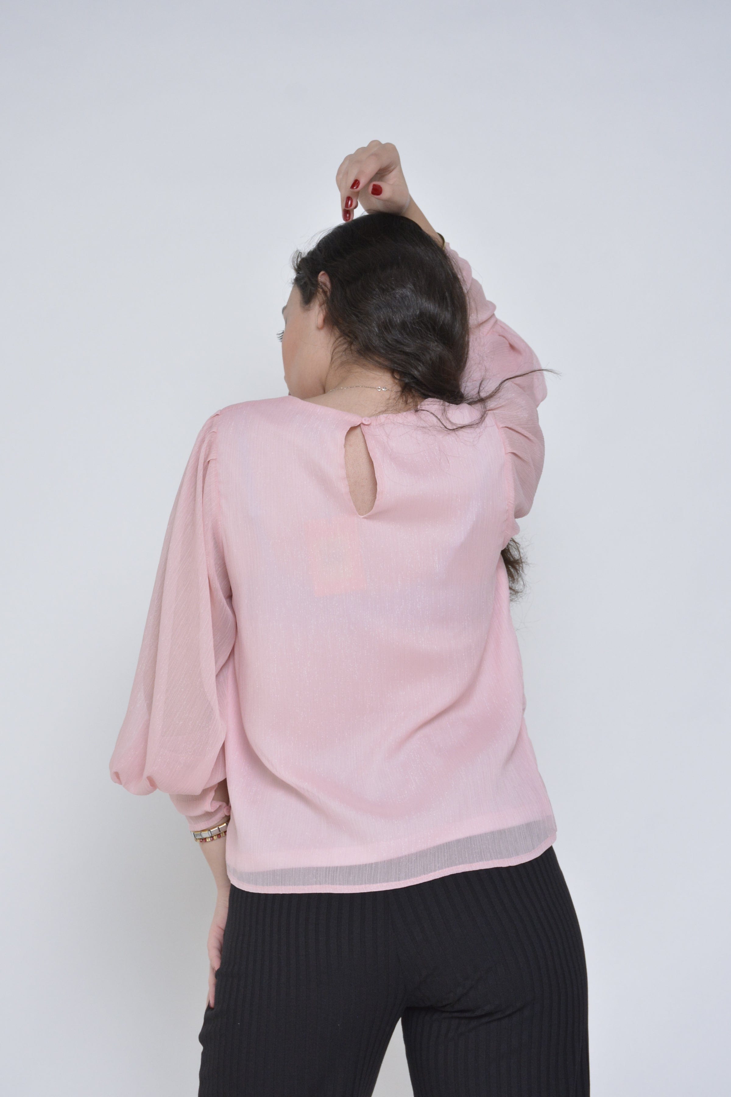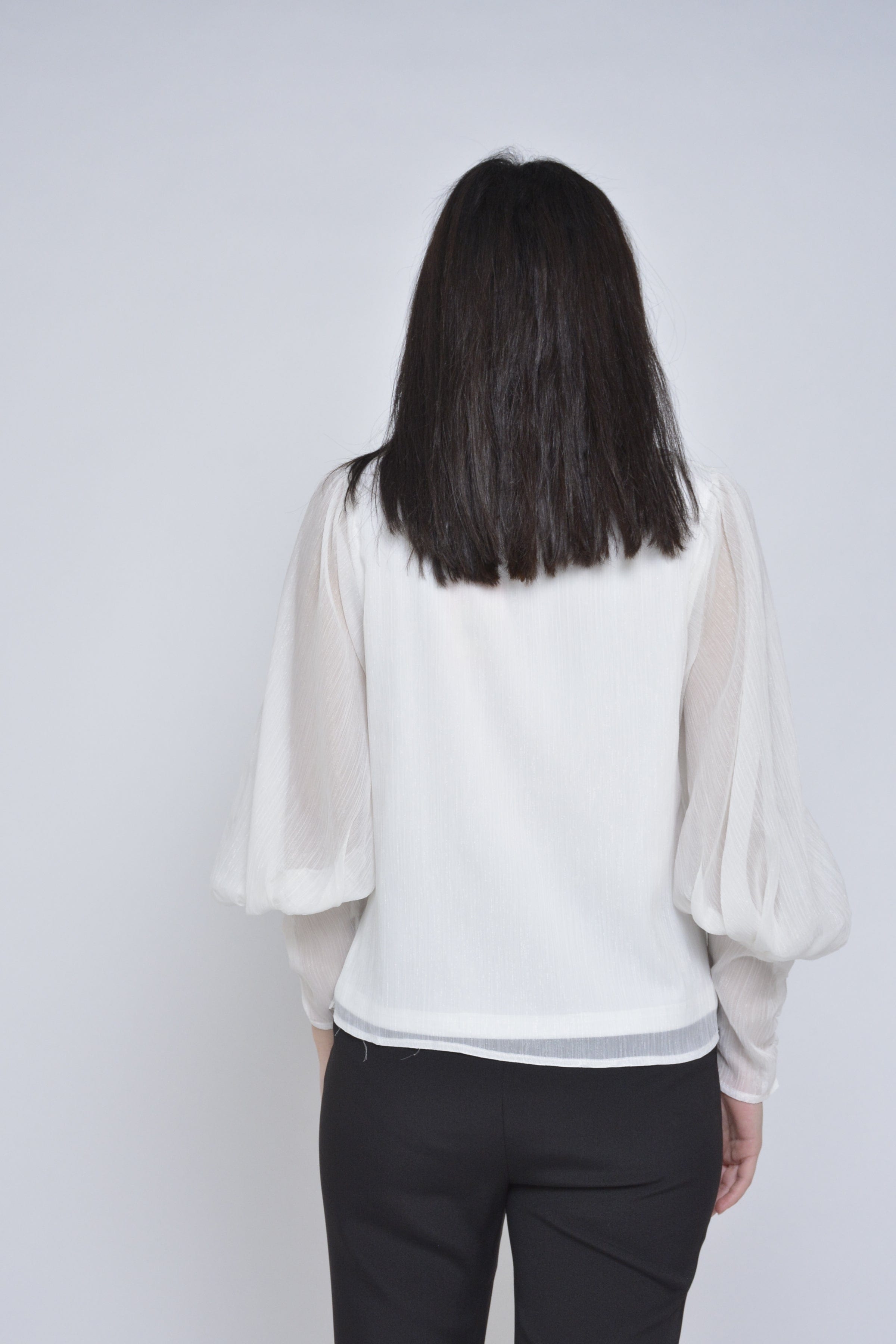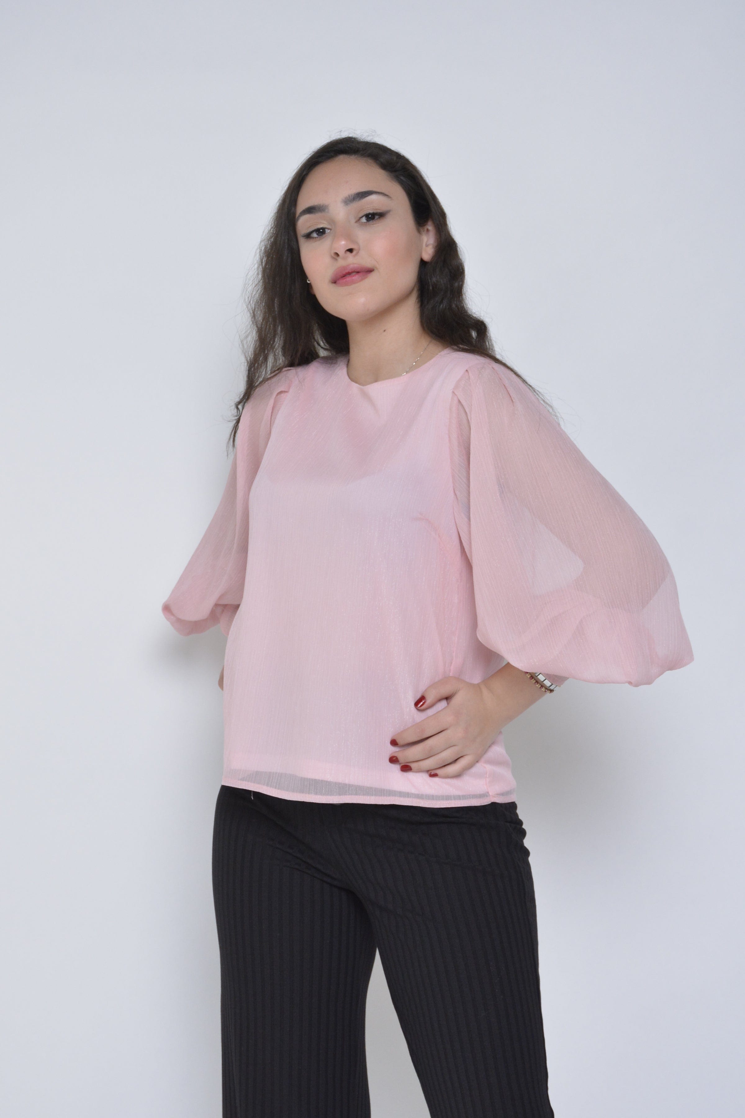 بلوزة شيفون كم طويل واسع وأساور نسائية