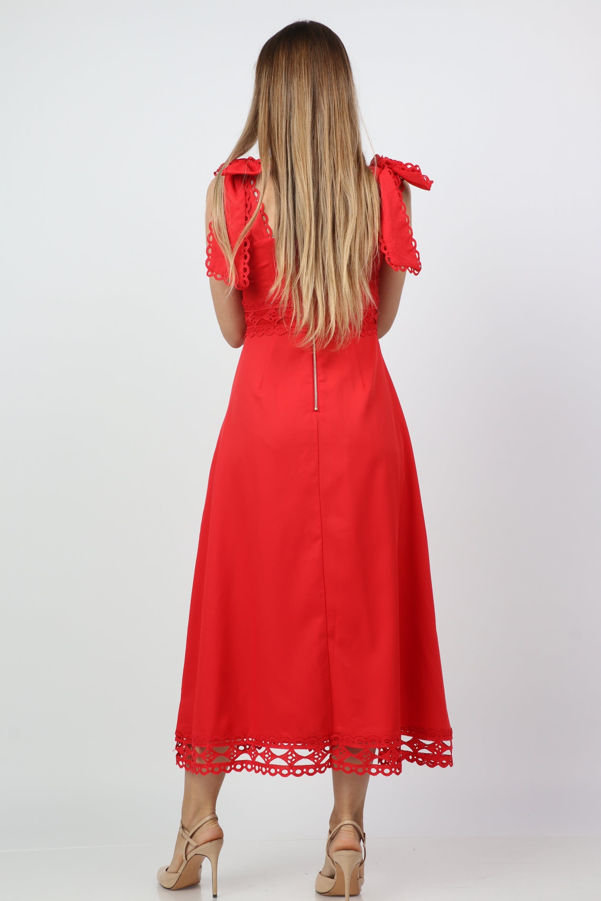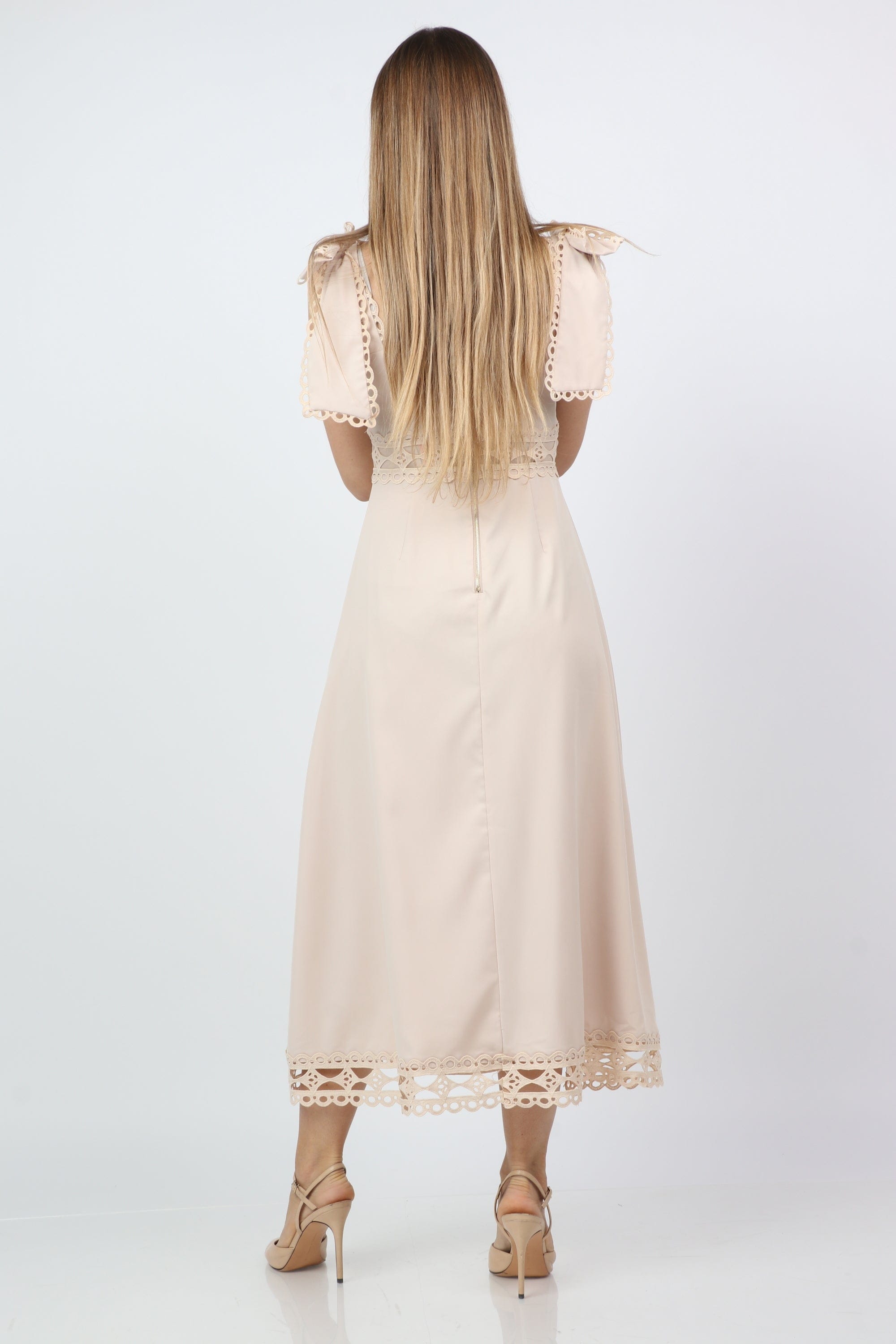 - العناية: اغسلي الفستان بالغسالة على دورة لطيفة بالماء البارد أو اليد، تجنبي المبيضات، جففيه معلّقاً أو على حرارة منخفضة ومكويه بدرجة حرارة منخفضة عند الحاجة.