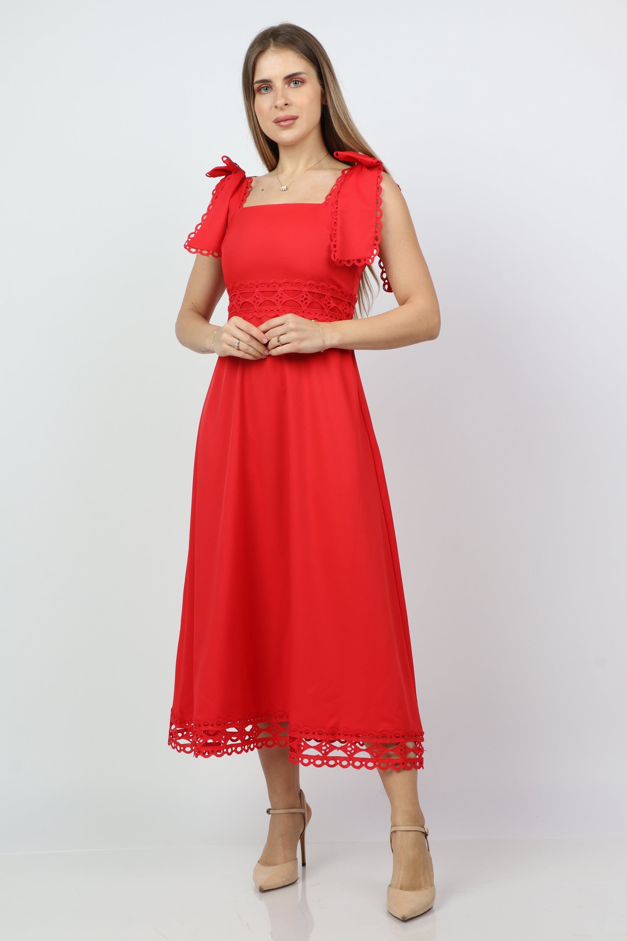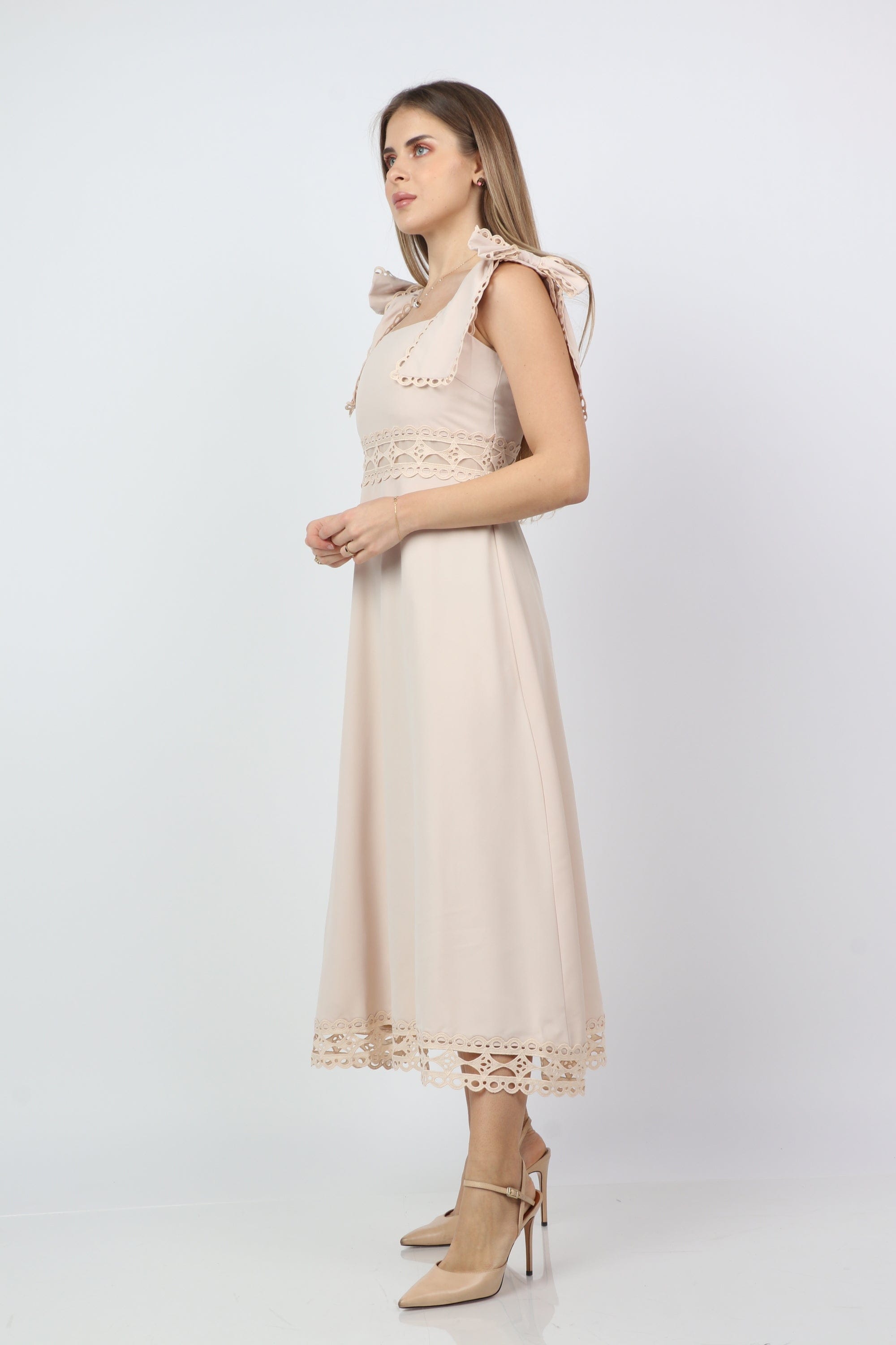 - التنسيق: نسقيه مع صندل مسطح نهاراً أو سنيكرز لعطلة نهاية الأسبوع، أضيفي حزام رفيع لإبراز الخصر مساءً، واختتمي بجاكيت خفيف أو كارديغان لمواسم الانتقال.
