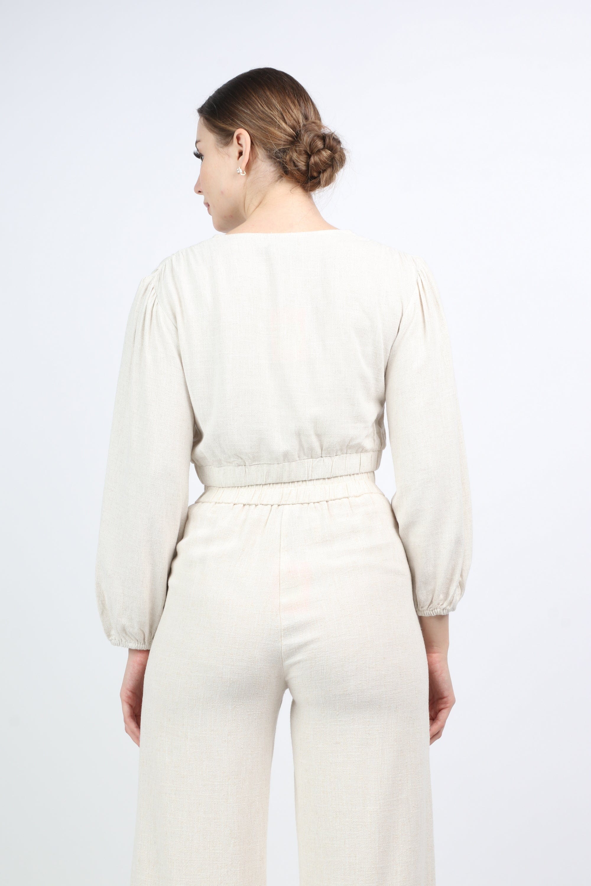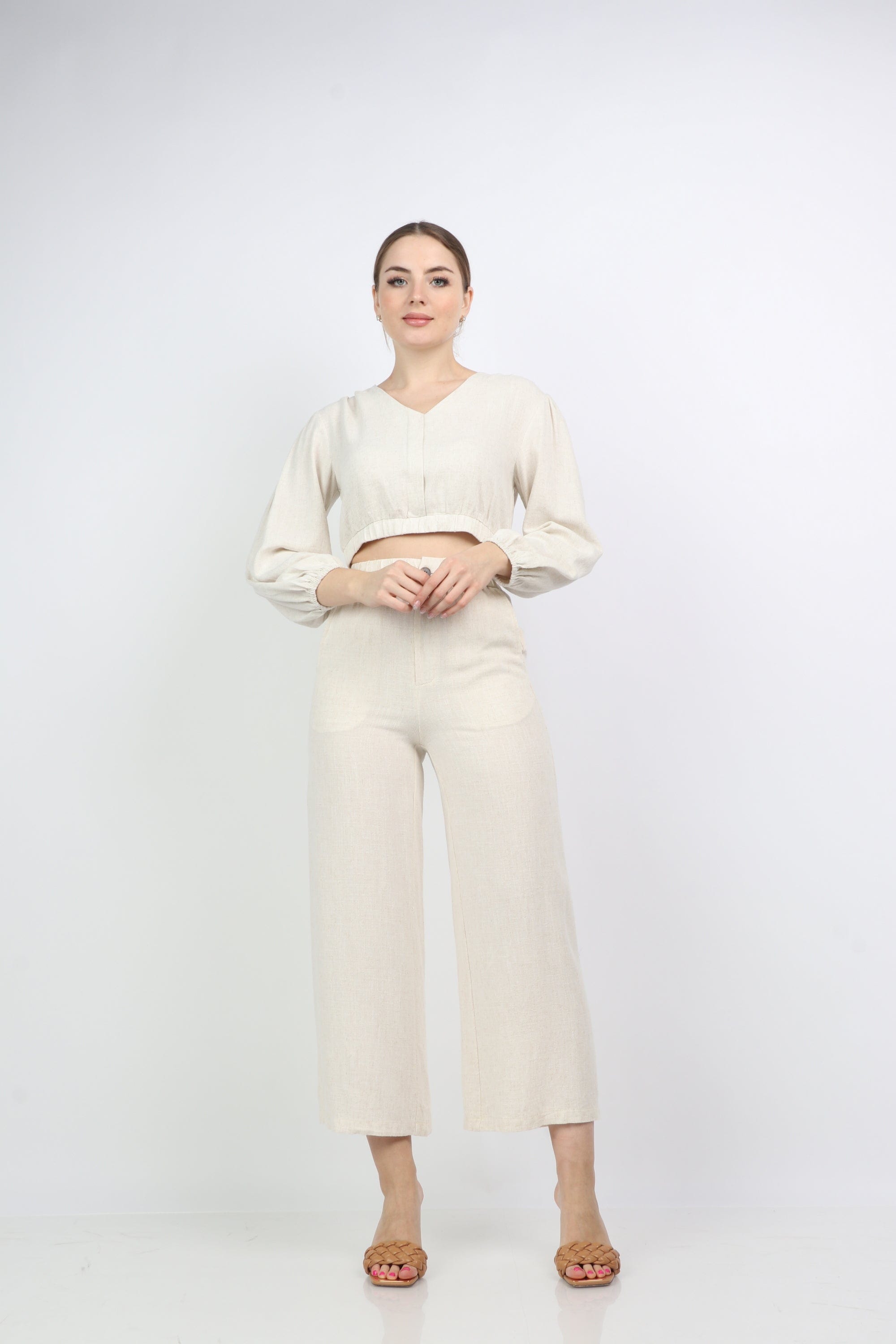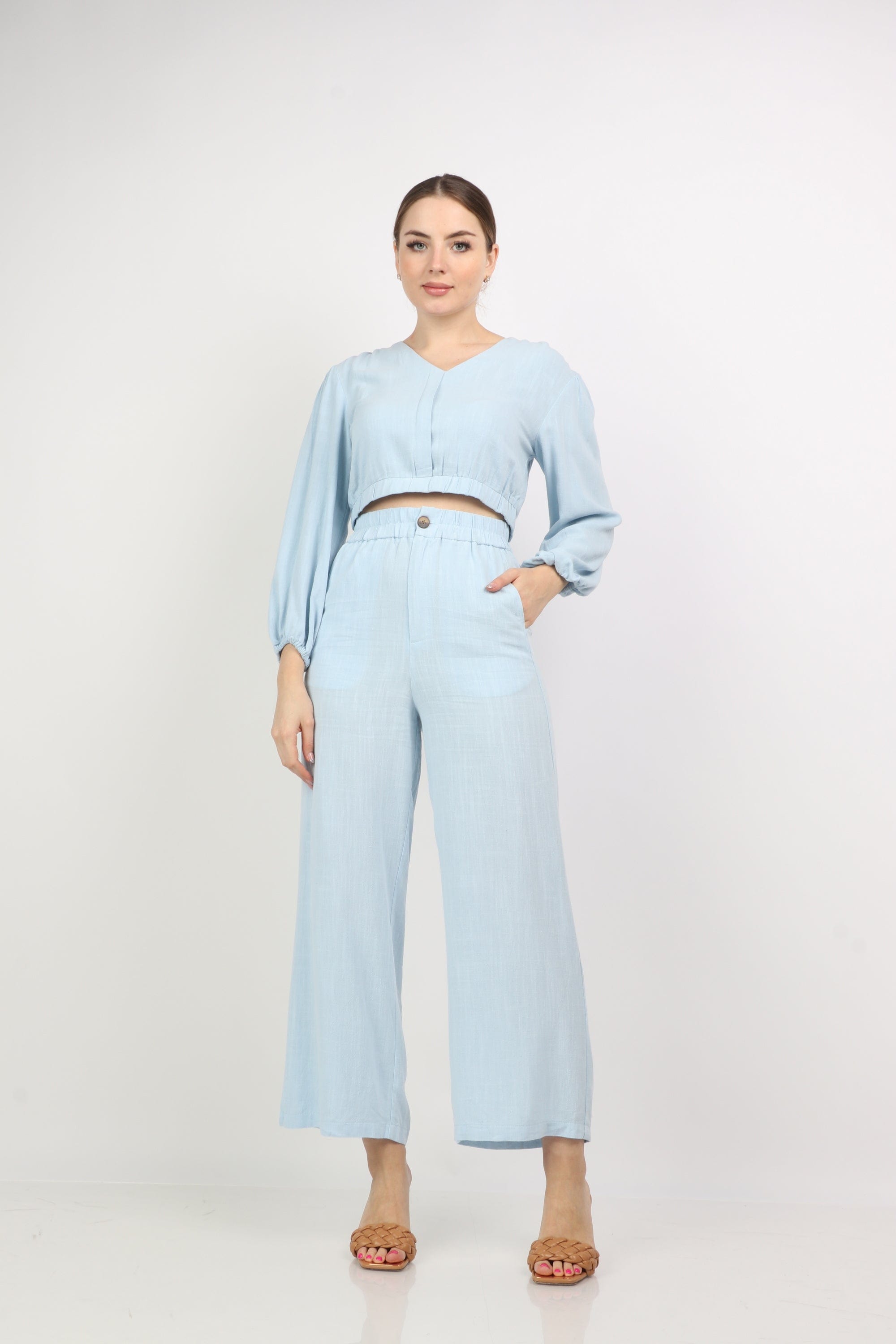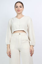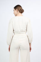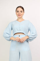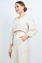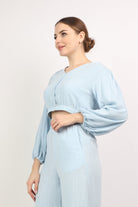 بلوزة نص بطن سبعة كم طويل منفوخ نسائي