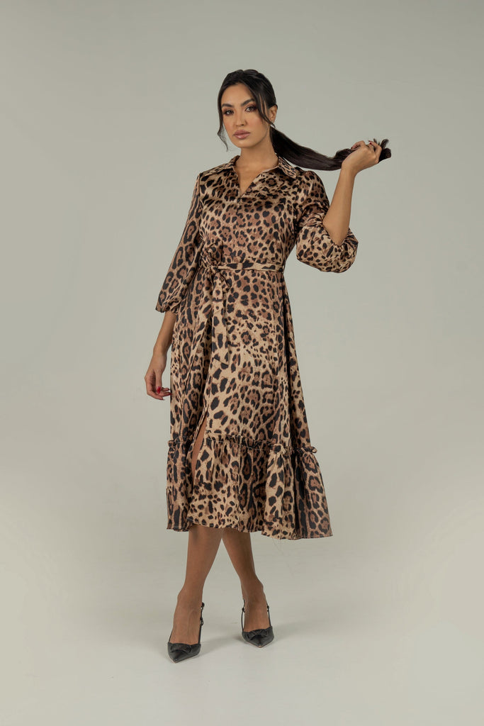 لما تبغين فستان يجمع بين لمسة جريئة ومظهر يومي أنيق، هذا الفستان رائع لملفك. قماش بوليستر 100% يمنحه ملمس متين وسهل العناية، بسمك متوسط يناسب كل المواسم. قصة A الميدي تعطي حركة أنثوية ومظهر موازن، والياقة القميص تمنحه طابع مرتب بينما الأكمام ثلاثة أرباع تضيف لمسة عملية. طبعة حيوانات باللون الأخضر تلفت الأنظار بدون مبالغة، والأزرار الأمامية مع الحزام المرفق تسمح بتحديد الخصر حسب المزاج. بدون بطانة أو جيوب لخط نظيف وخفيف على الجسم. مناسب للخروجات الرومانسية، النزهات النهارية، أو لمظهر كاجوال أنيق في العمل غير الرسمي. ستحبين كيف يتحرك معك وكيف يمكنك تنسيقه بسهولة لمناسبات مختلفة. اعثري على مقاسك في فاشن السعودية وأضيفي هذه القطعة المتنوعة إلى خزانة ملابسك اليوم.