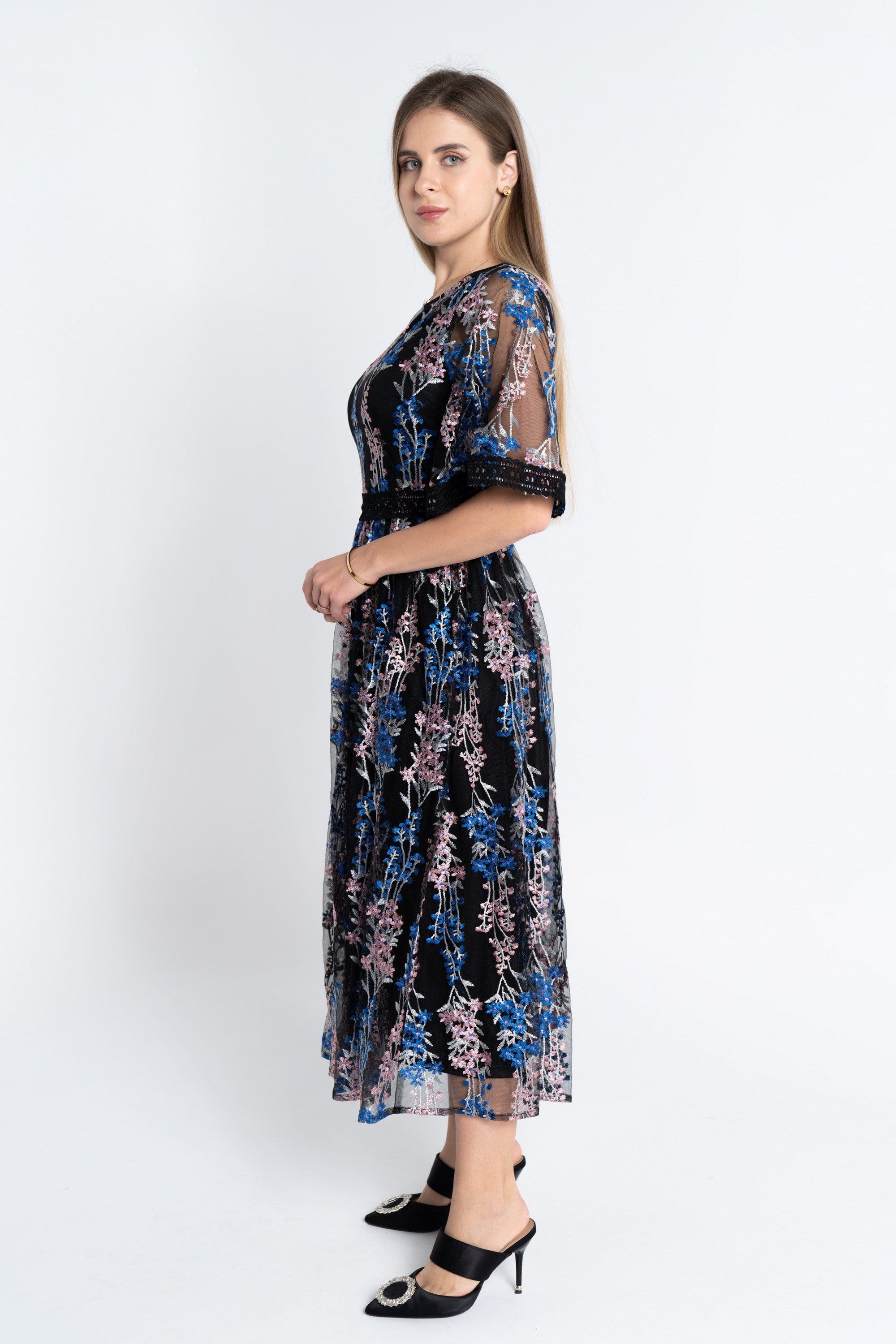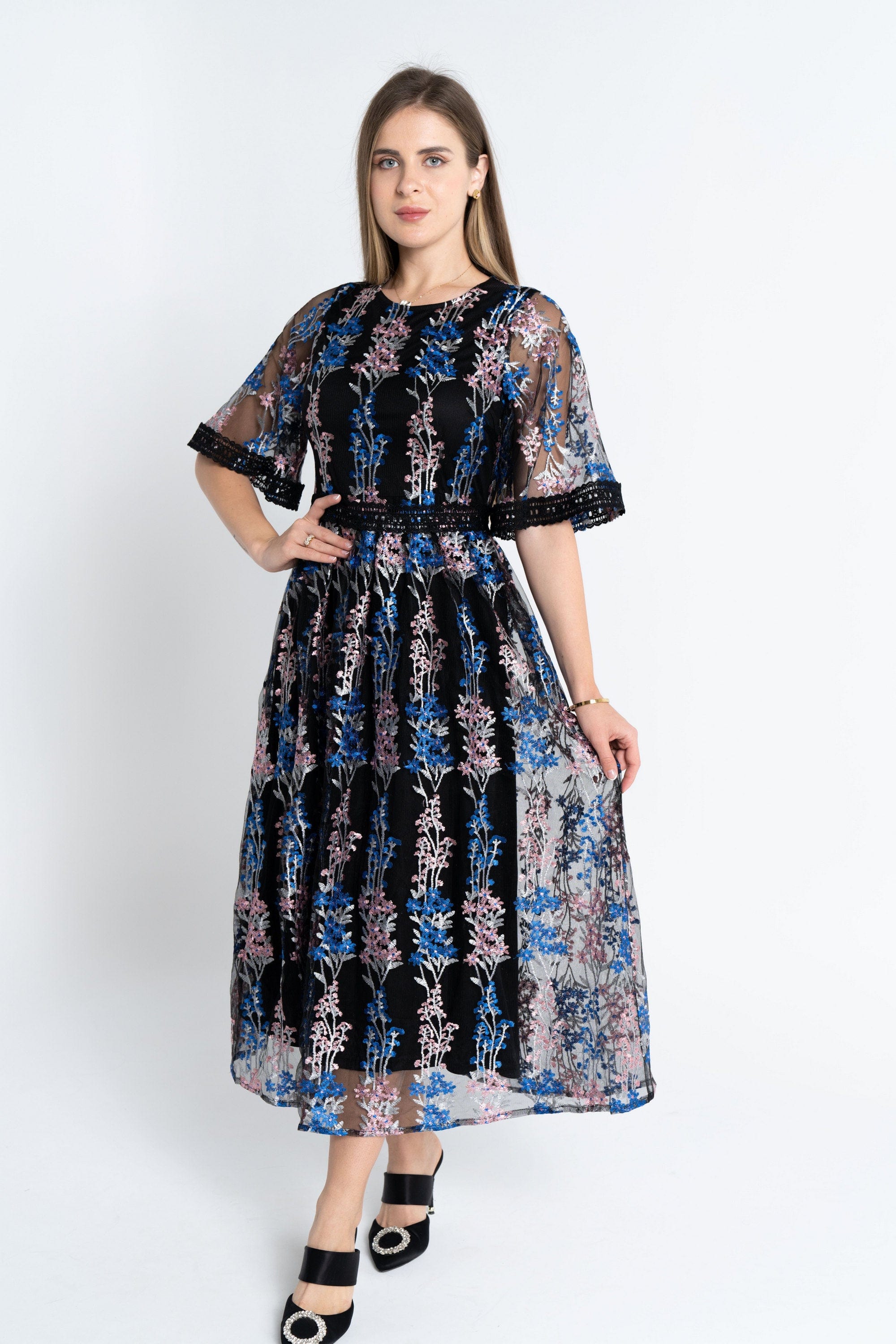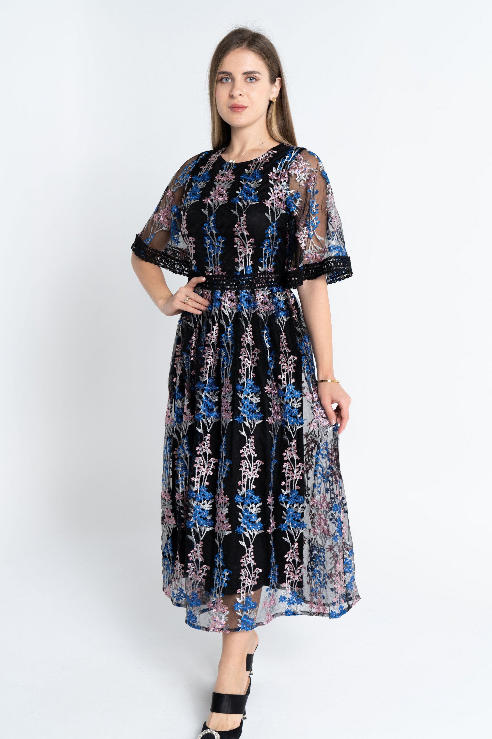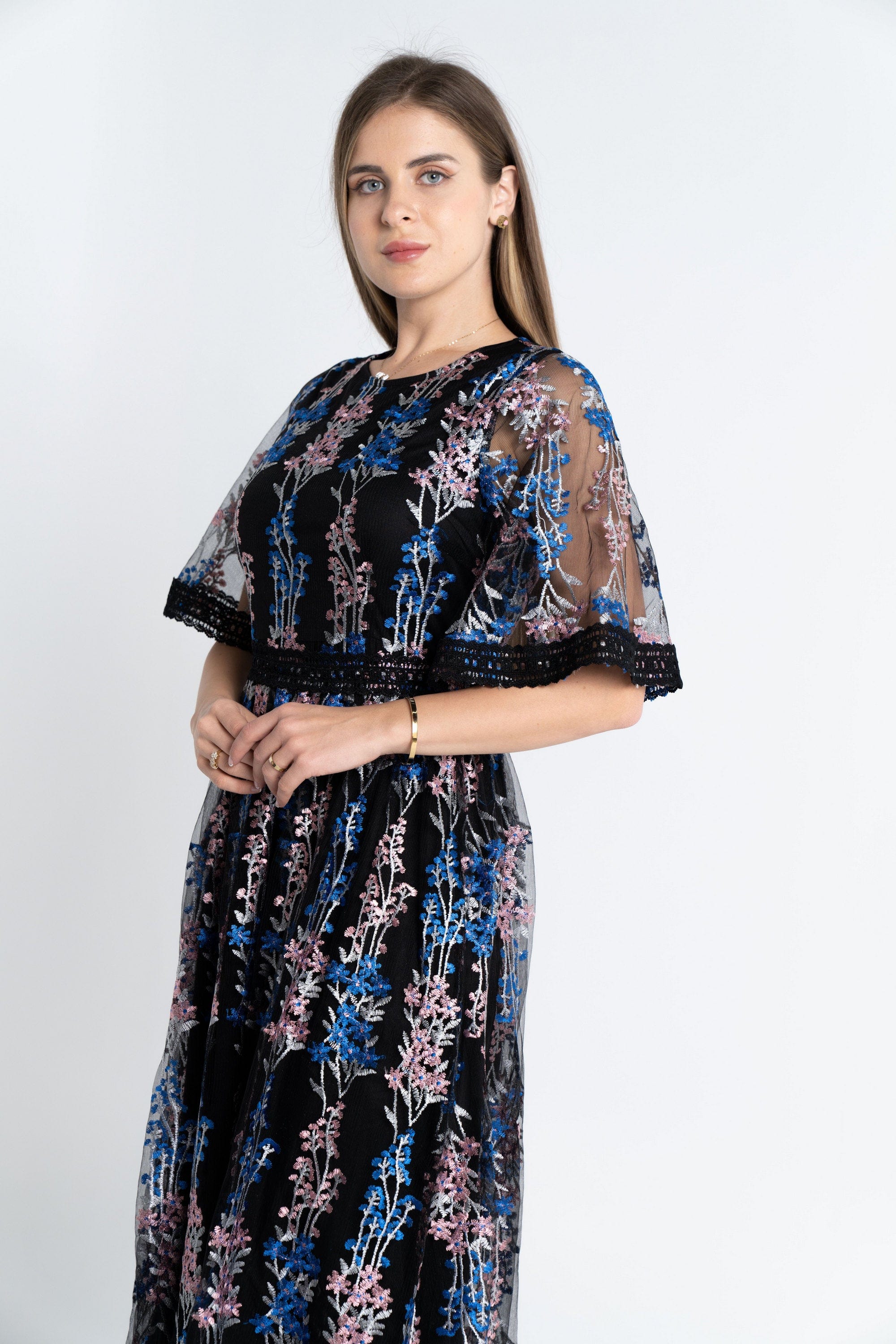 هل تبحثين عن فستان يبرز أناقتك في الحفلات ويظل عملياً في خزانة الملابس؟ هذا الفستان رائع بتصميم مريح ومواكب للموضة. خامته بوليستر 100% تمنح شكلًا ثابتًا وتغسل بسهولة بسمك متوسط يناسب كل المواسم. قصة A تعطي انسيابية وحرية في الحركة، والياقة المستديرة تضيف لمسة كلاسيكية، أما الكم القصير وطول الميدي فيجعلان الفستان مثالياً للسهرات واللقاءات الرومانسية. نقشة الزهور بالتطريز تضيف تفاصيل أنثوية على الخلفية السوداء، والقصة العادية تناسب أكثر من مقاس. بدون جيوب وبدون حزام لخط نظيف وأنيق. ستحبين كيف يتحرك معك ويوازن بين الأناقة والراحة، ويمكنك إضافة حزام خارجي إذا رغبتِ لتغيير اللوك. اعثري على مقاسك في فاشن السعودية وأضيفي هذه القطعة المتنوعة إلى خزانة ملابسك اليوم.