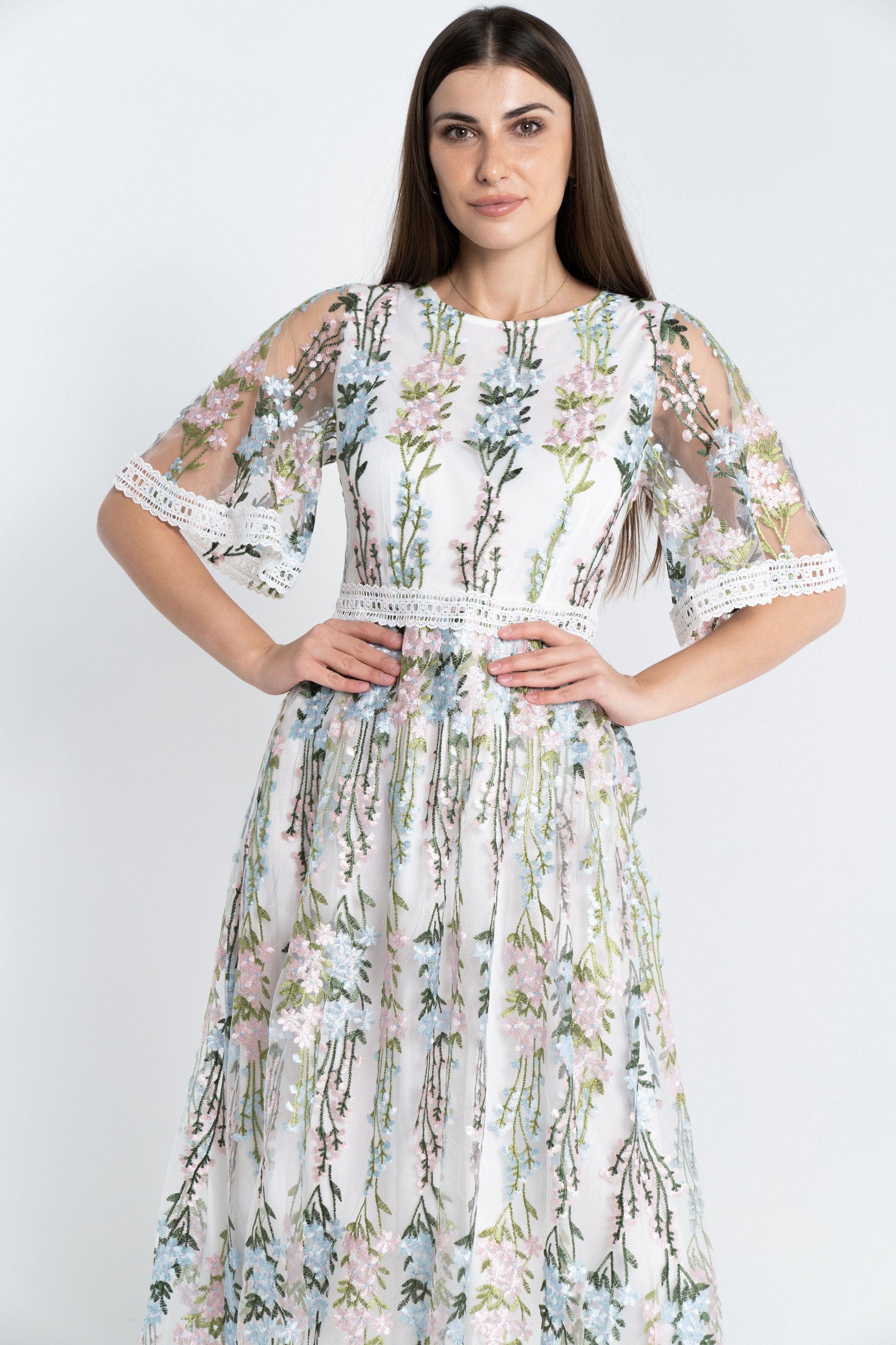 - نقشة زهور بتطريز تضيف لمسة أنثوية
