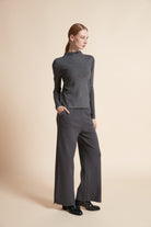 بلوزة سادة برقبة مرتفعة كم طويل