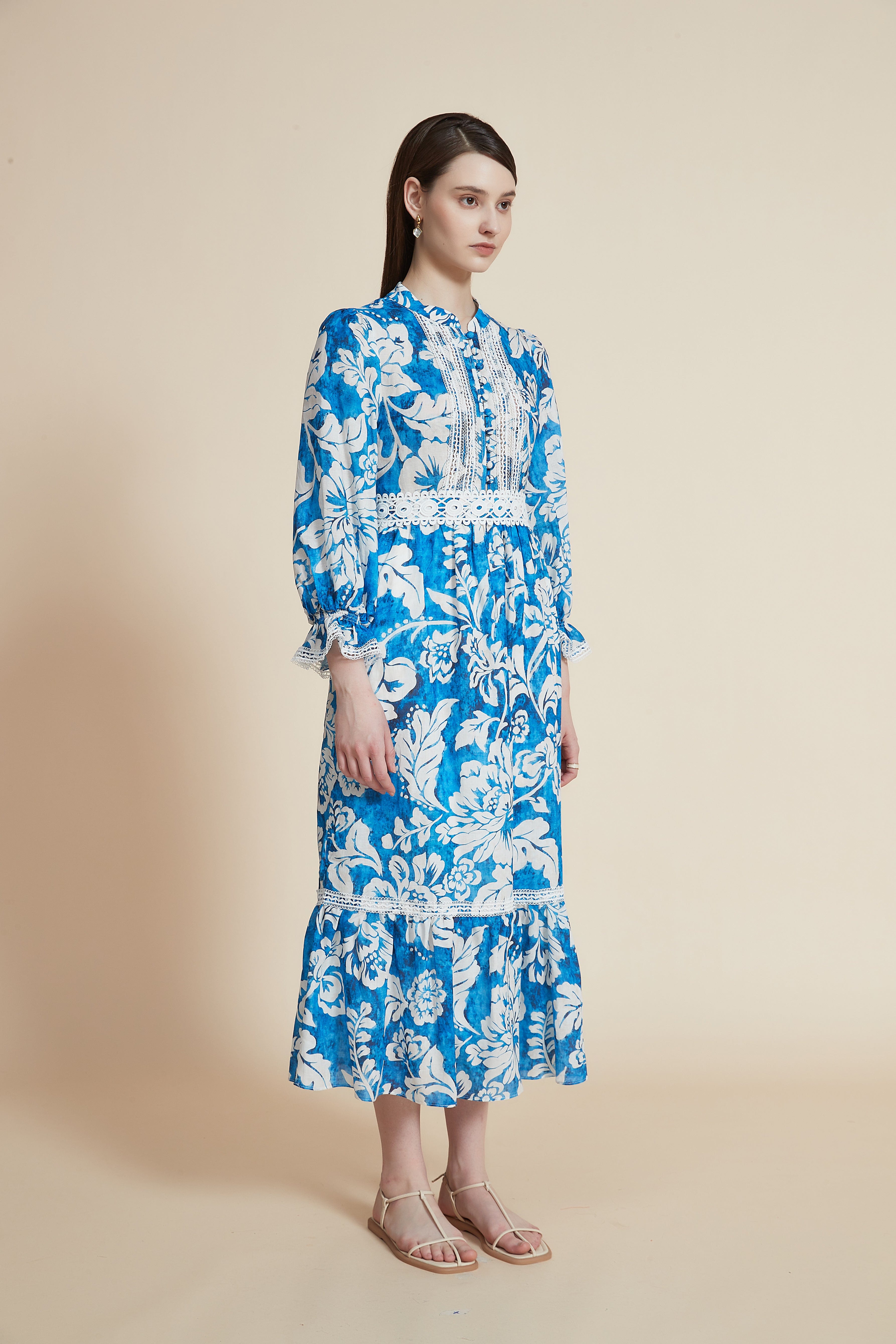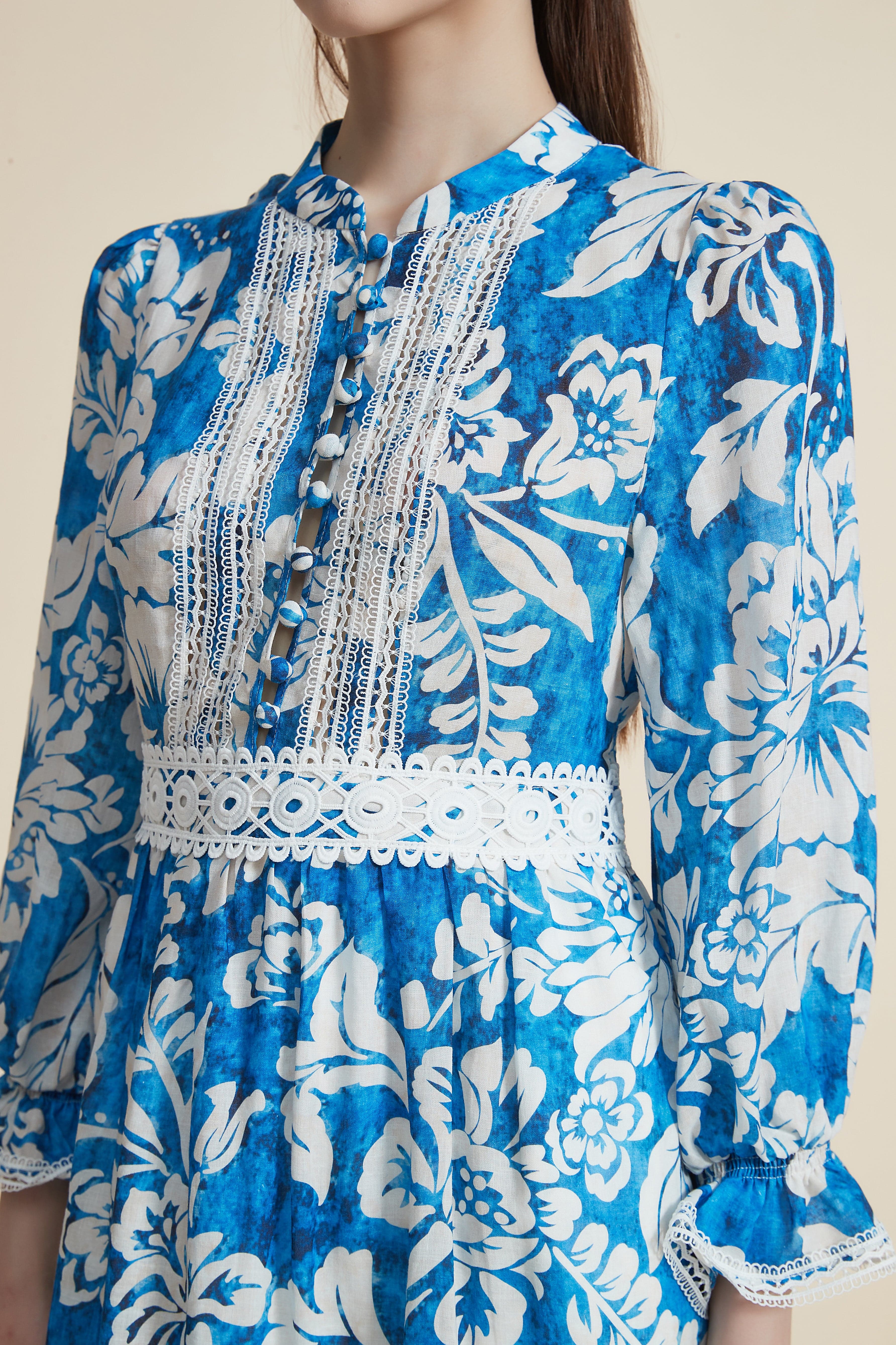 - نقشة زهور بلون أزرق تضيف لمسة مرحة