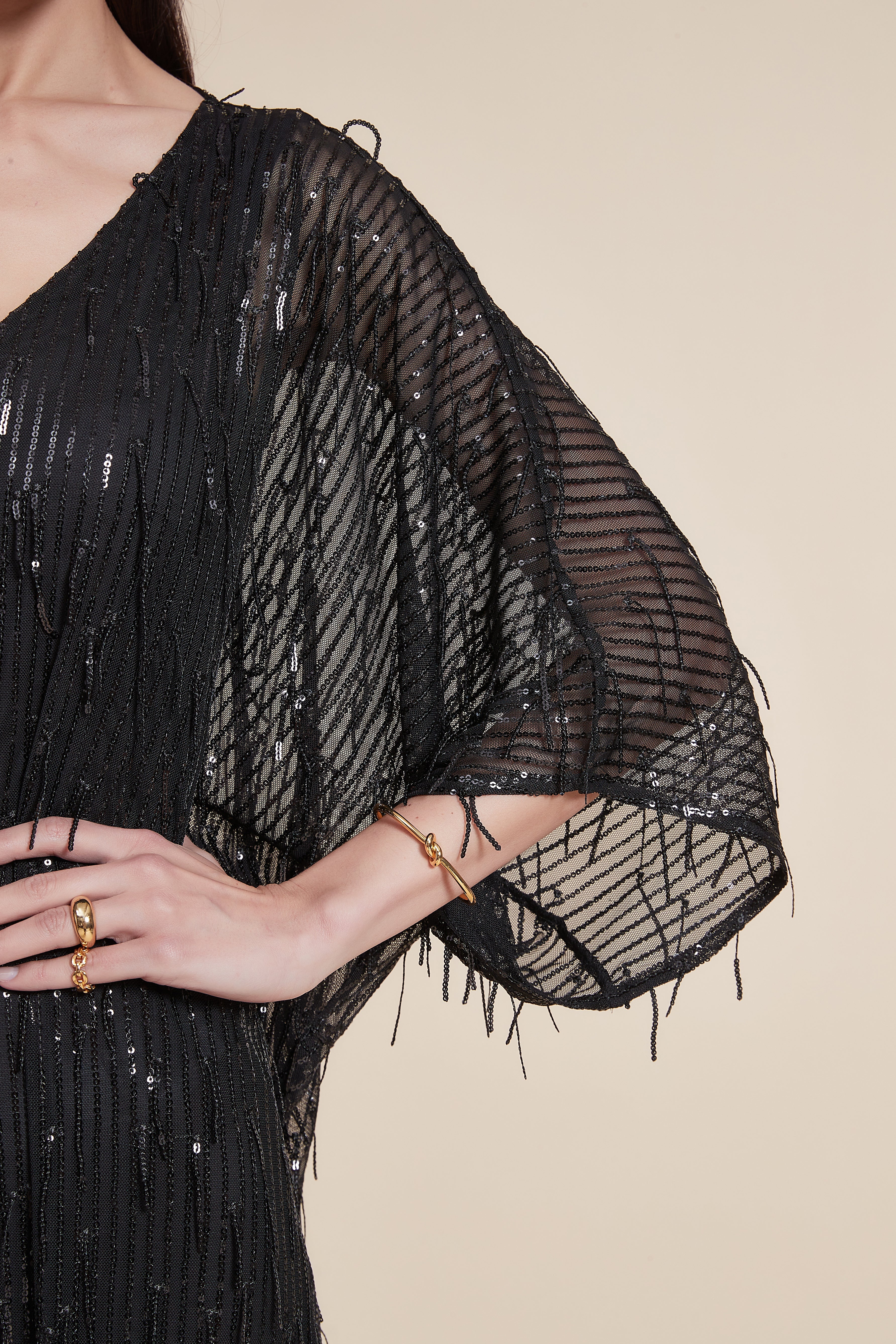 • نقش مطرز بارز مع ترتر لمسة لامعة للمساء