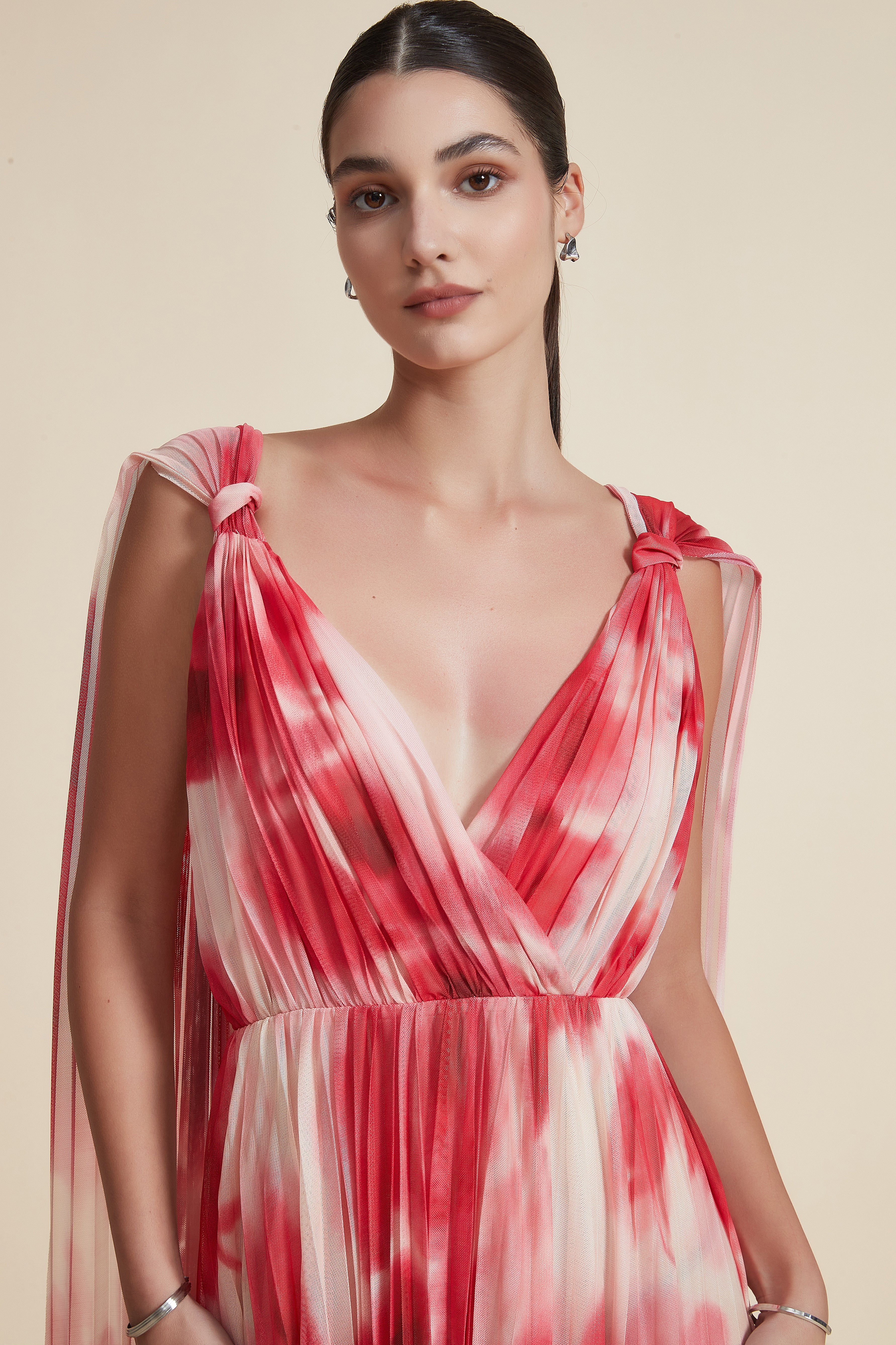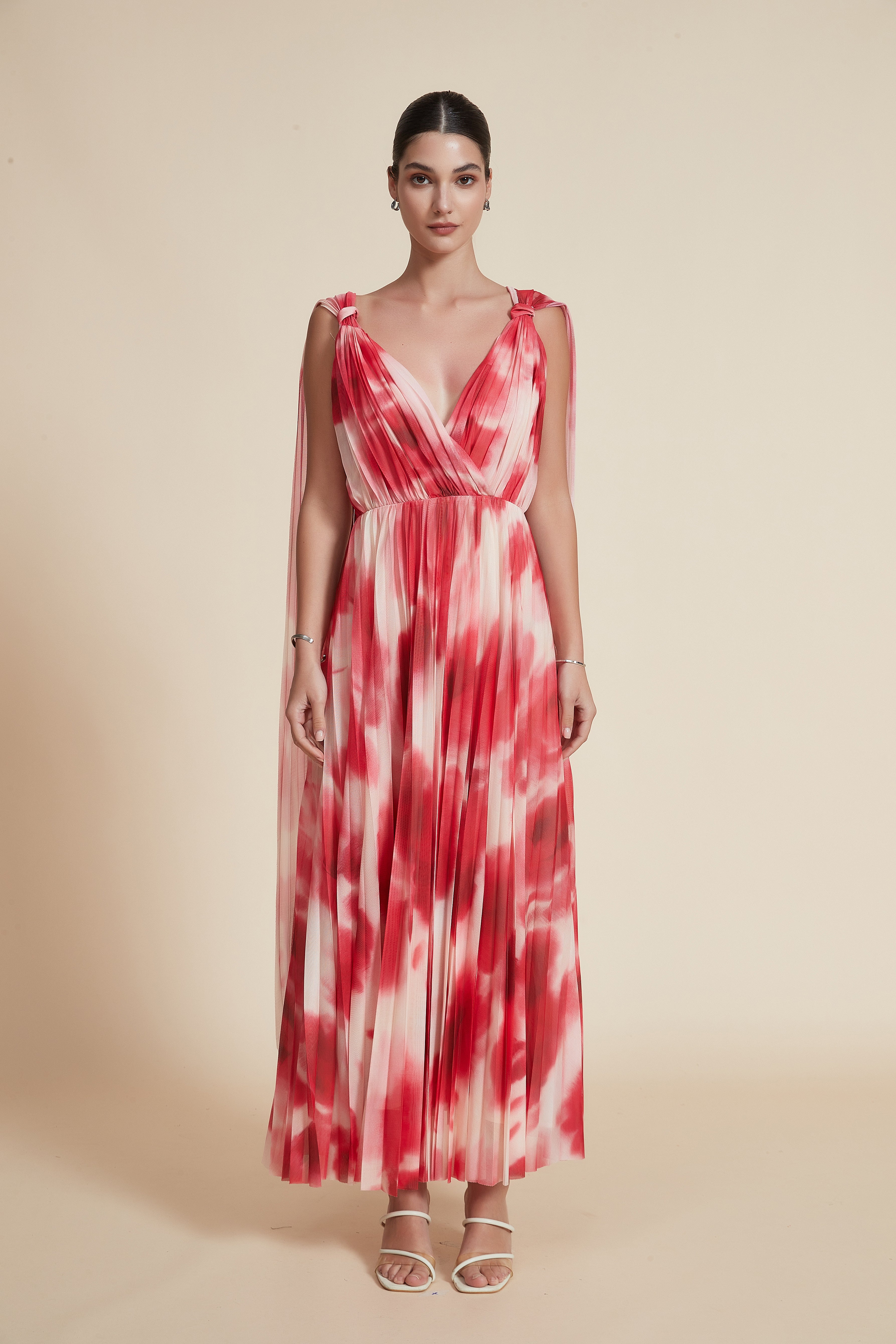 لو تبحثين عن فستان يلفت الانتباه في الصيف، هذا الفستان ماكسي أحمر خيارك المثالي. القصة A تمنحه انسيابية مريحة وقصة عادية تناسب كل جسم، وطوله الماكسي يضيف لمسة أنثوية أنيقة. ياقة V بلا أكمام تبرز الرقبة بطريقة راقية، والنقشة بتدرج لوني تمنح الفستان حركة لونية جذابة. الفستان متوسط السماكة ومفتوح بتفصيلة تضيف جرأة خفيفة، بدون بطانة وبدون جيوب أو حزام، مناسب للحفلات ولمسة مواكبة للموضة في خزانة الصيف. ستحبين كيف يتحرك معك في السهرات وكيف يمكن تنسيقه بسهولة لصيحات مختلفة. اعثري على مقاسك في فاشن السعودية وأضيفي هذه القطعة المتنوعة إلى خزانة ملابسك اليوم.