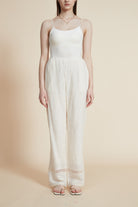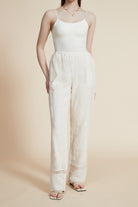 بنطلون نسائي طويل مخرم برجل واسعة