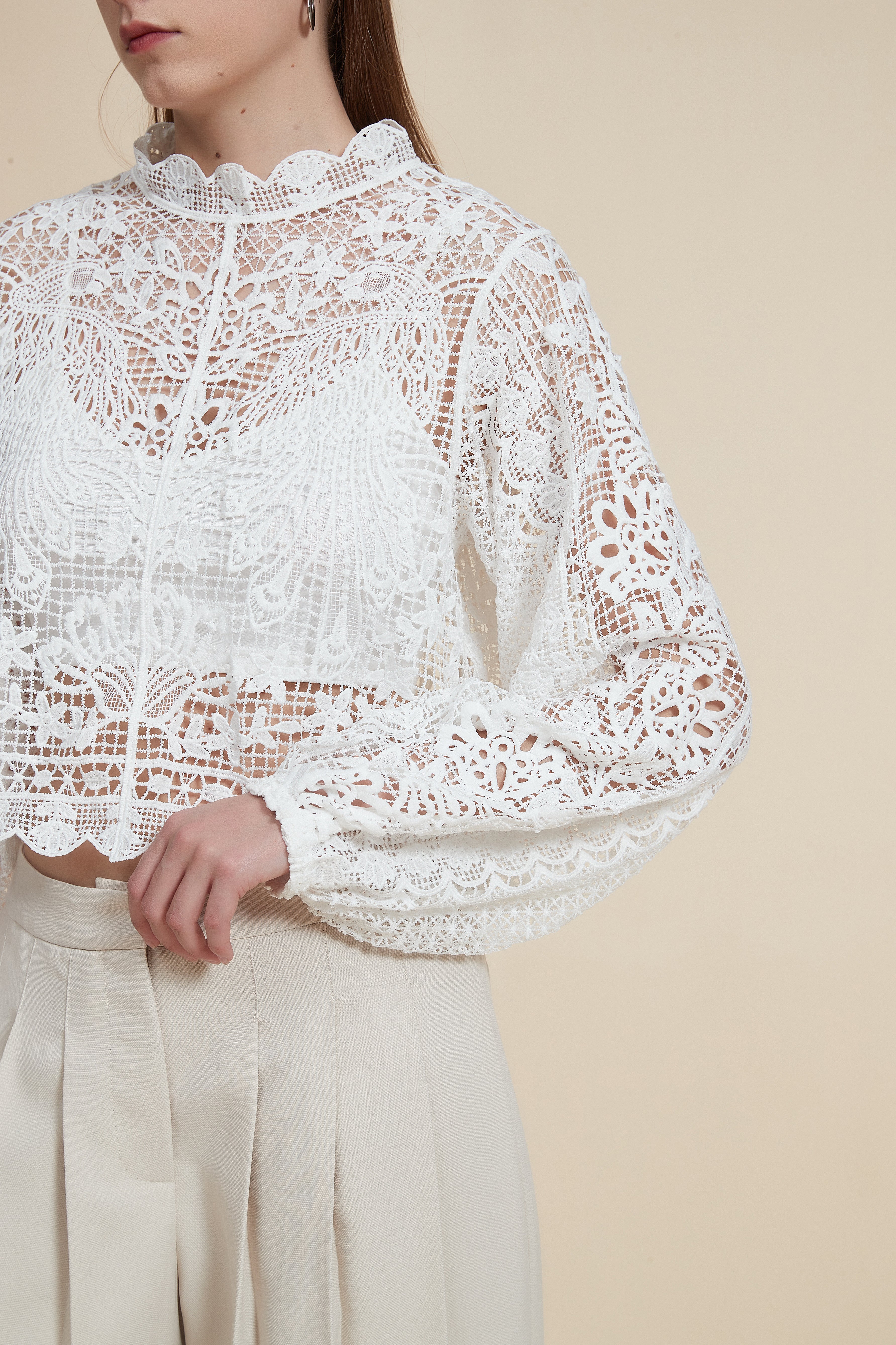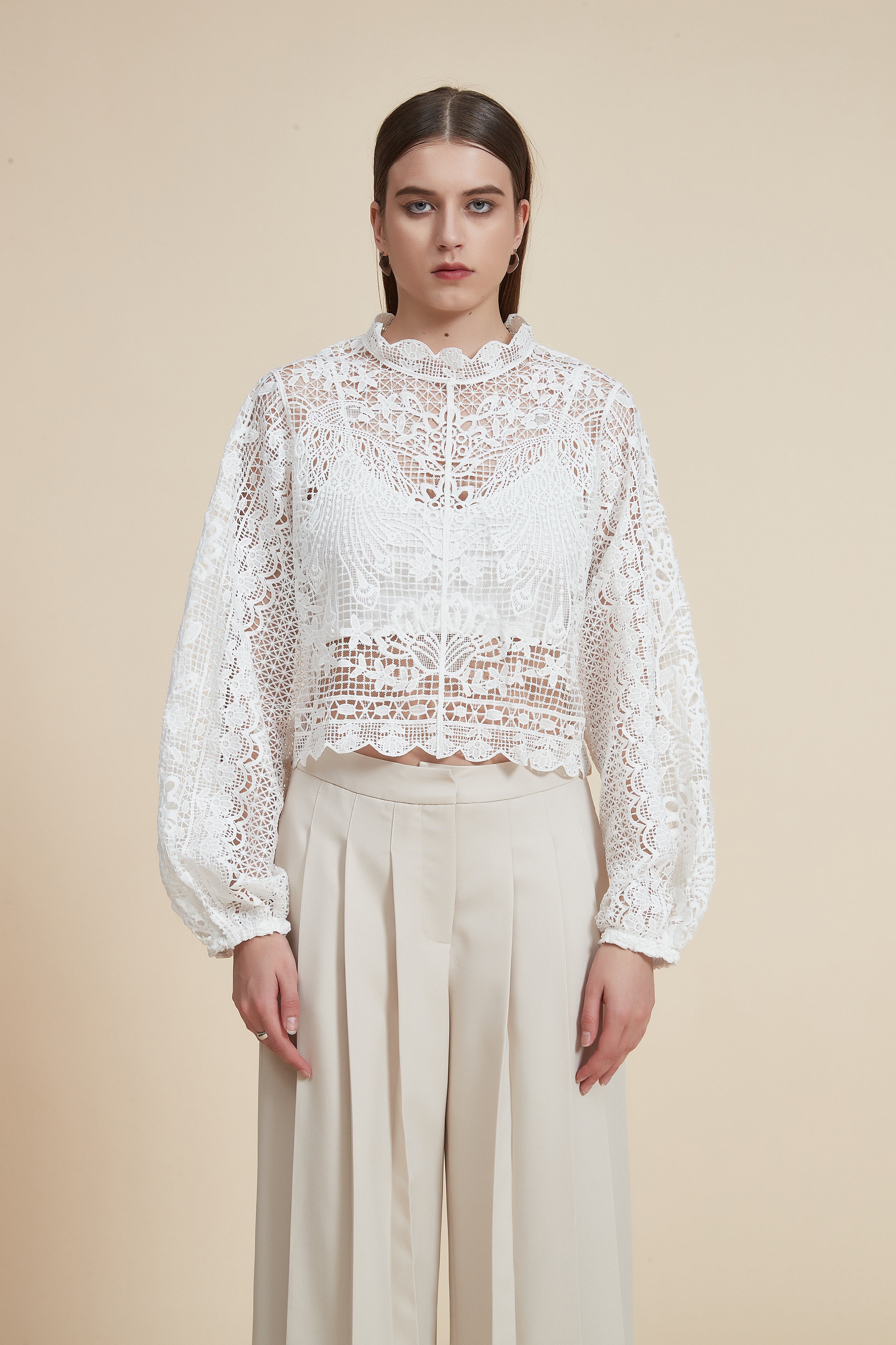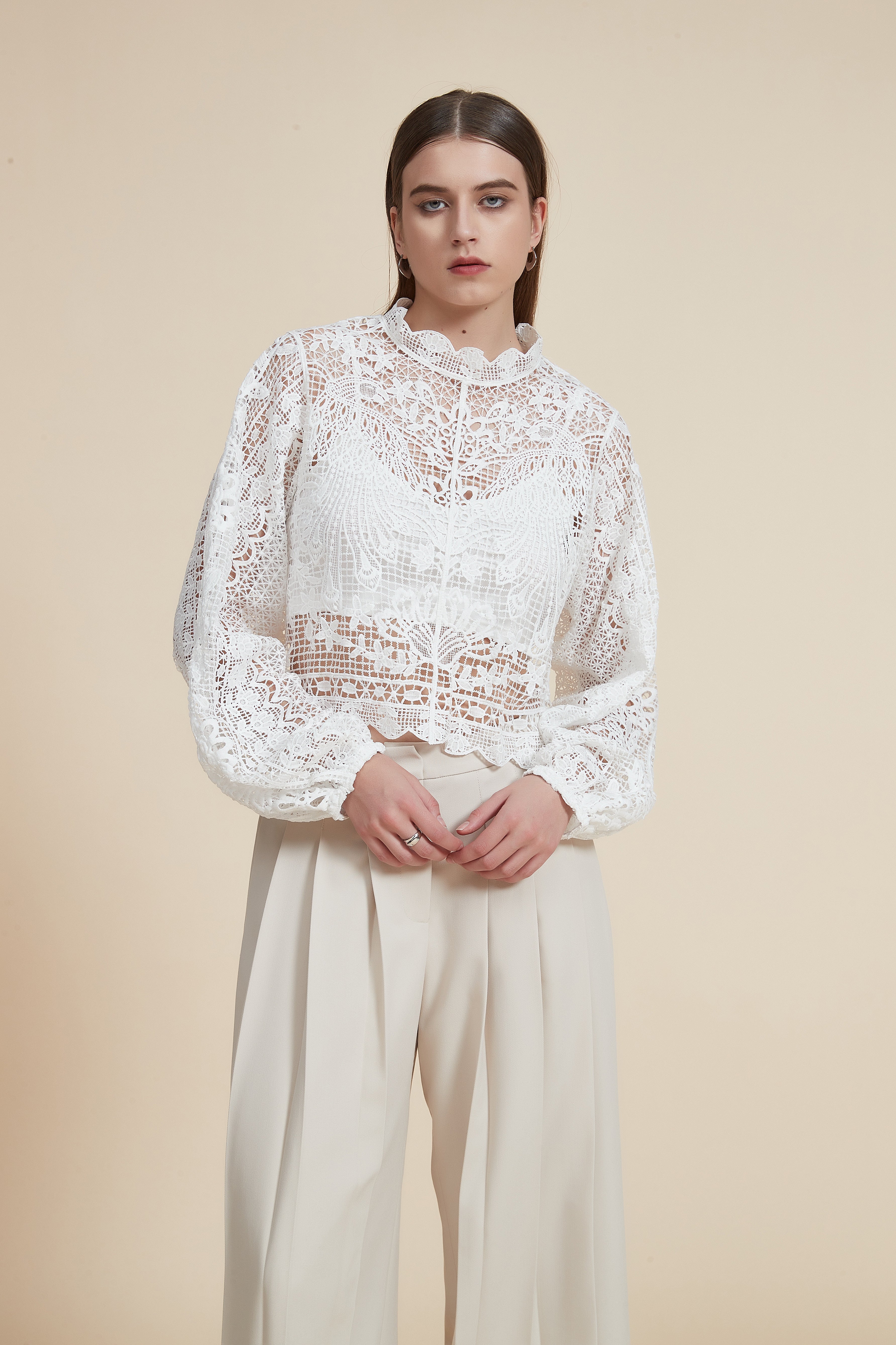 بلوزة بأكمام طويلة مع تفاصيل دانيال قصيرة