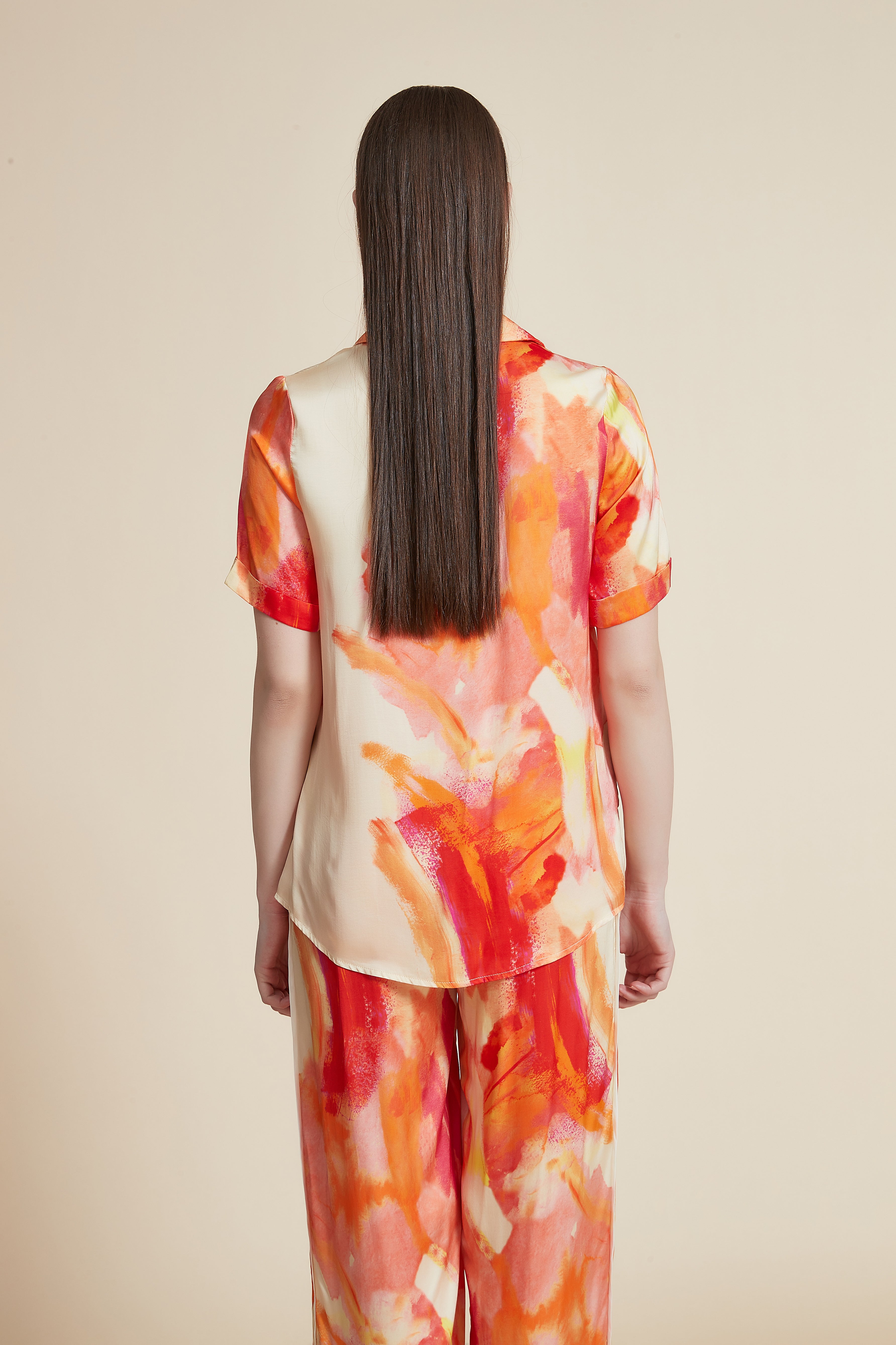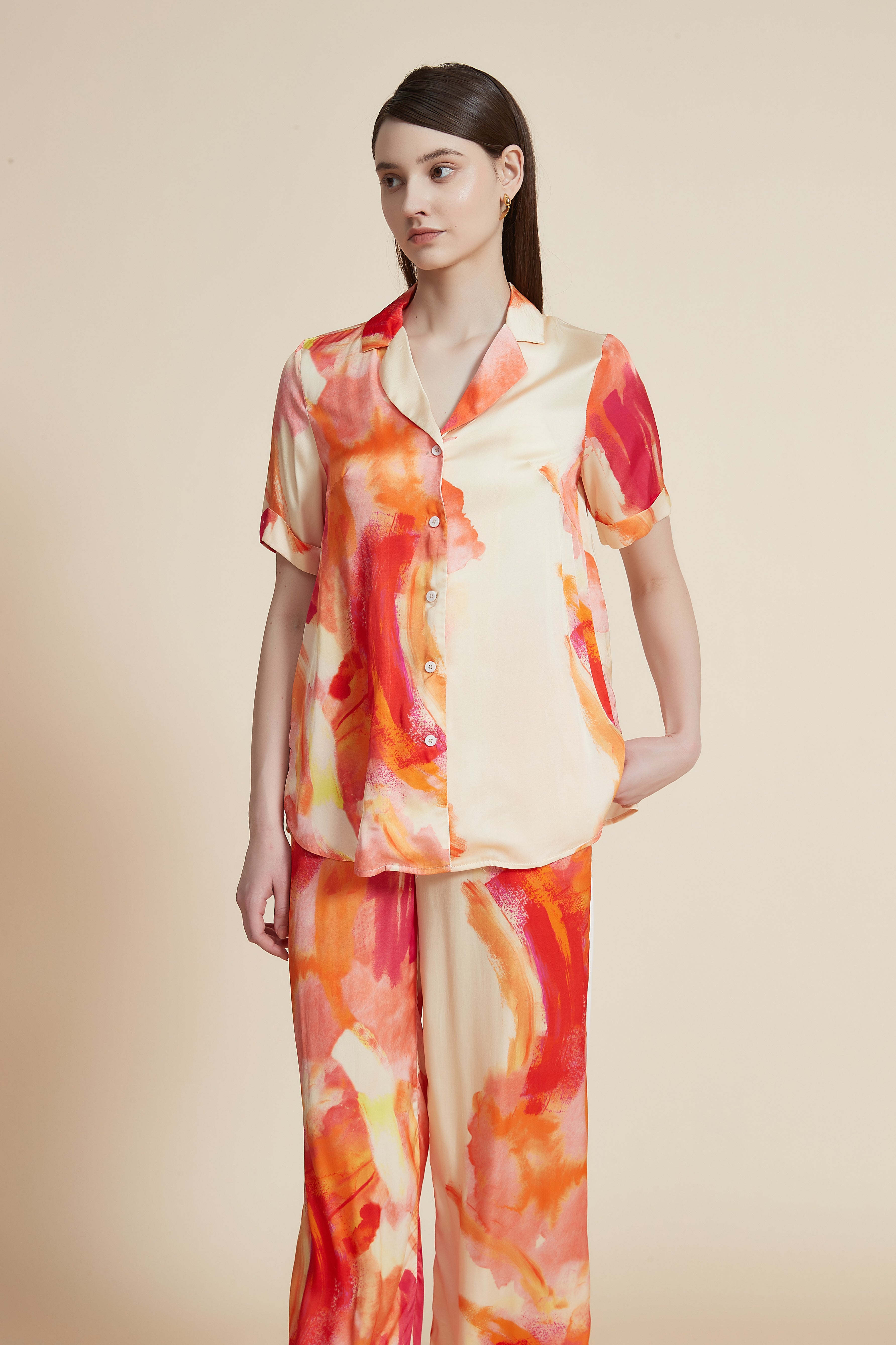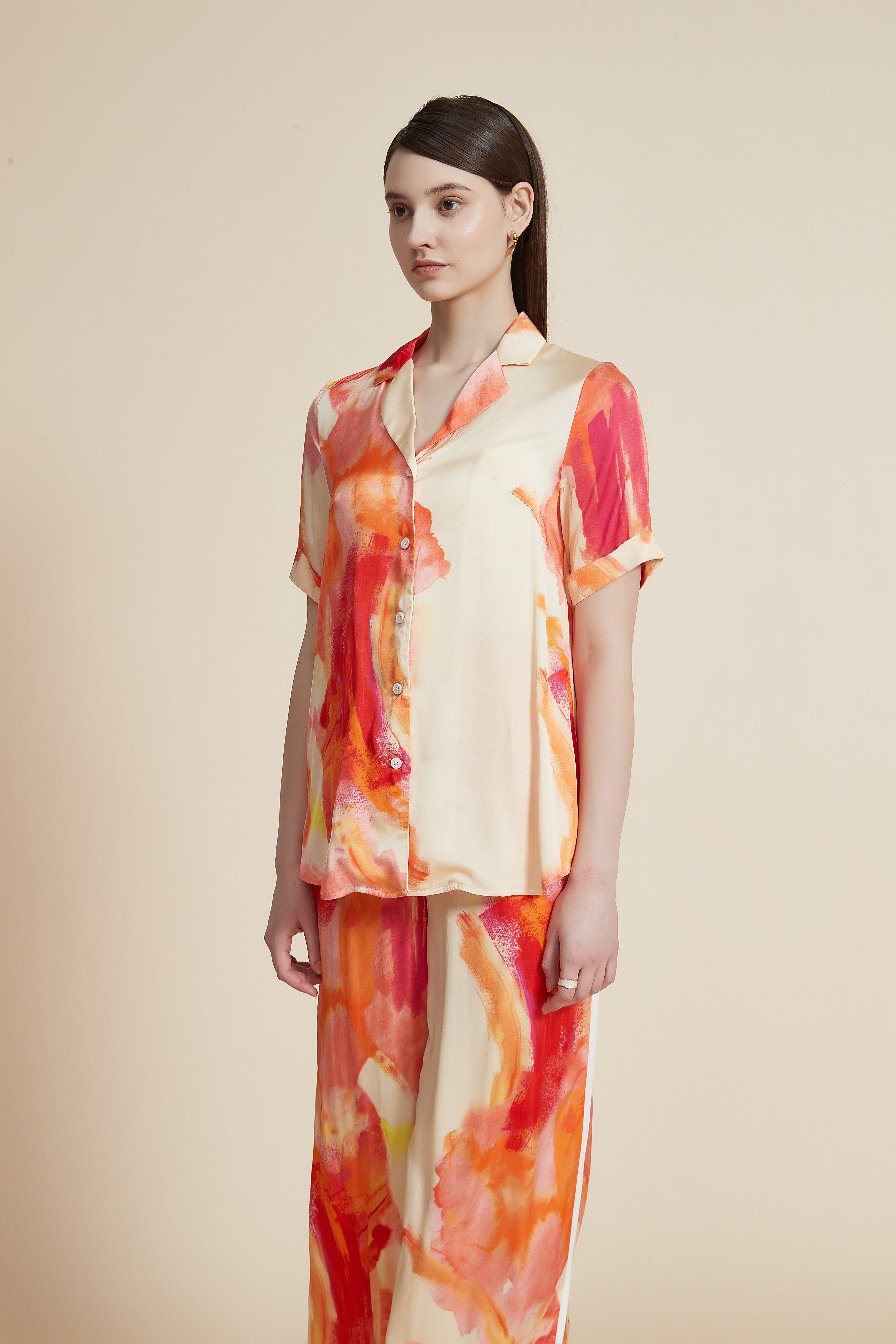 بلوزة نسائية نصف كم مطبوعة بأزرار أمامية
