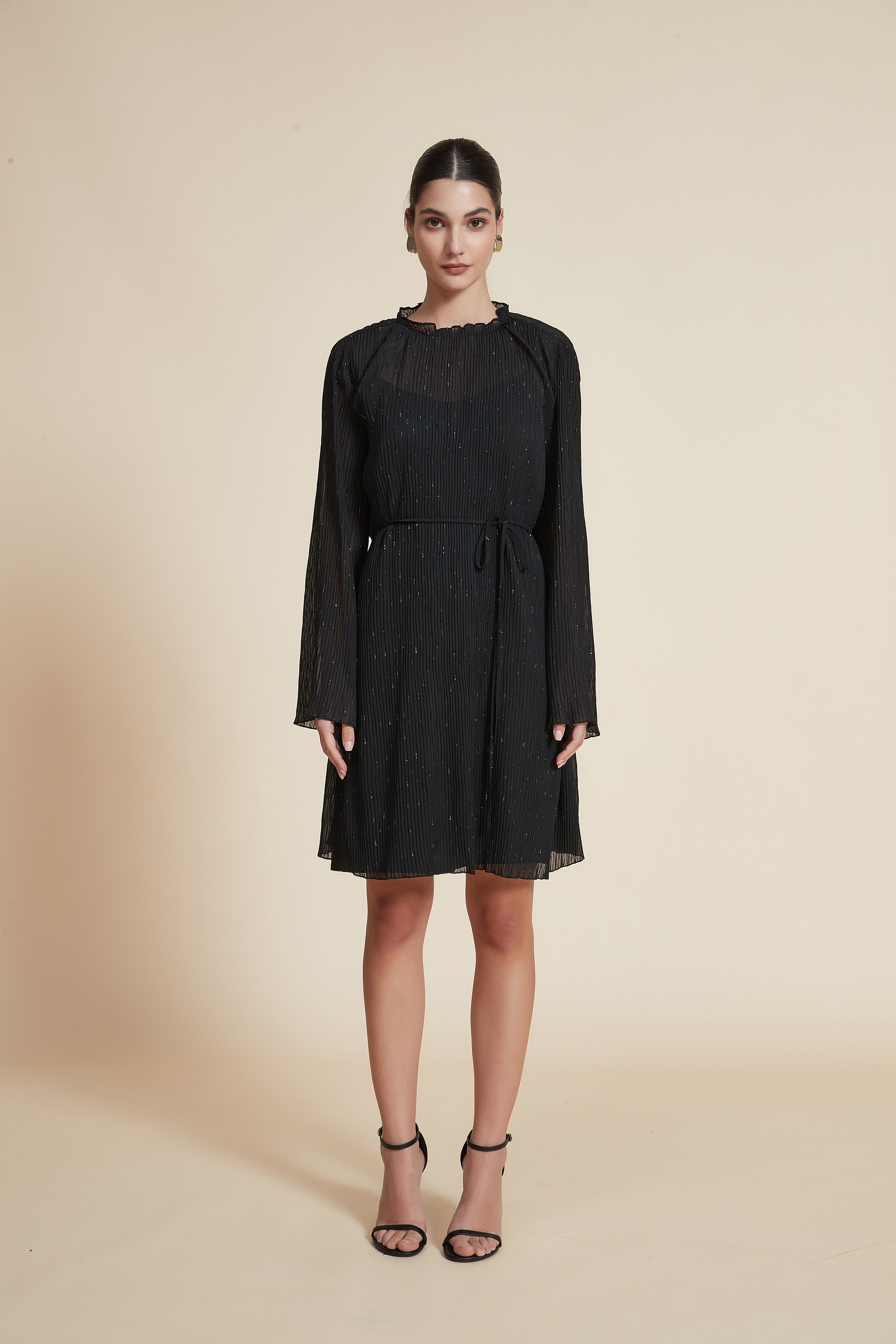 فستان قصير مضلع بكم طويل وقصة واسعة