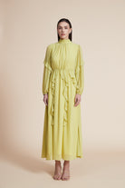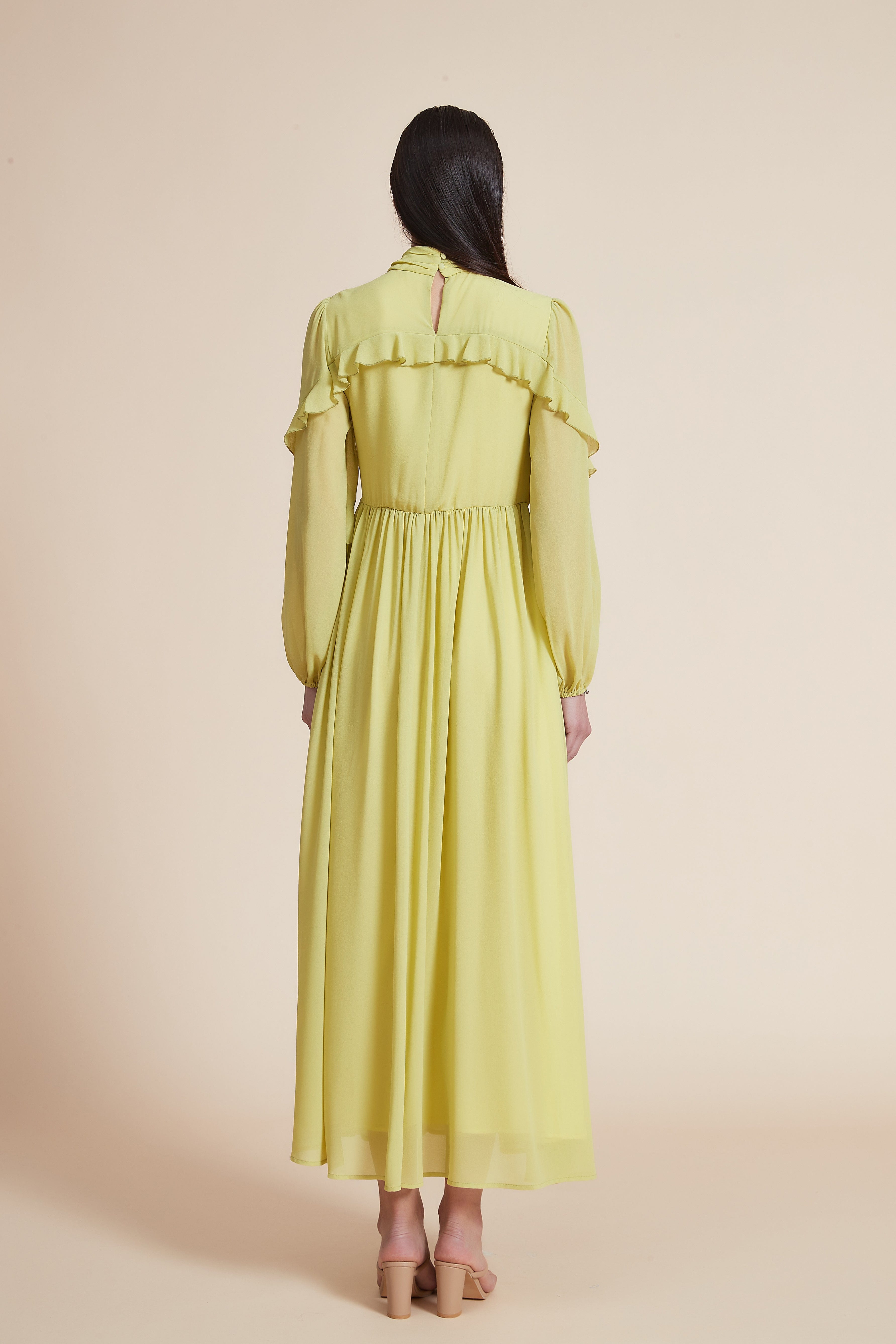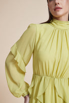 فستان ميدي بكم طويل واسع ورقبة عالية