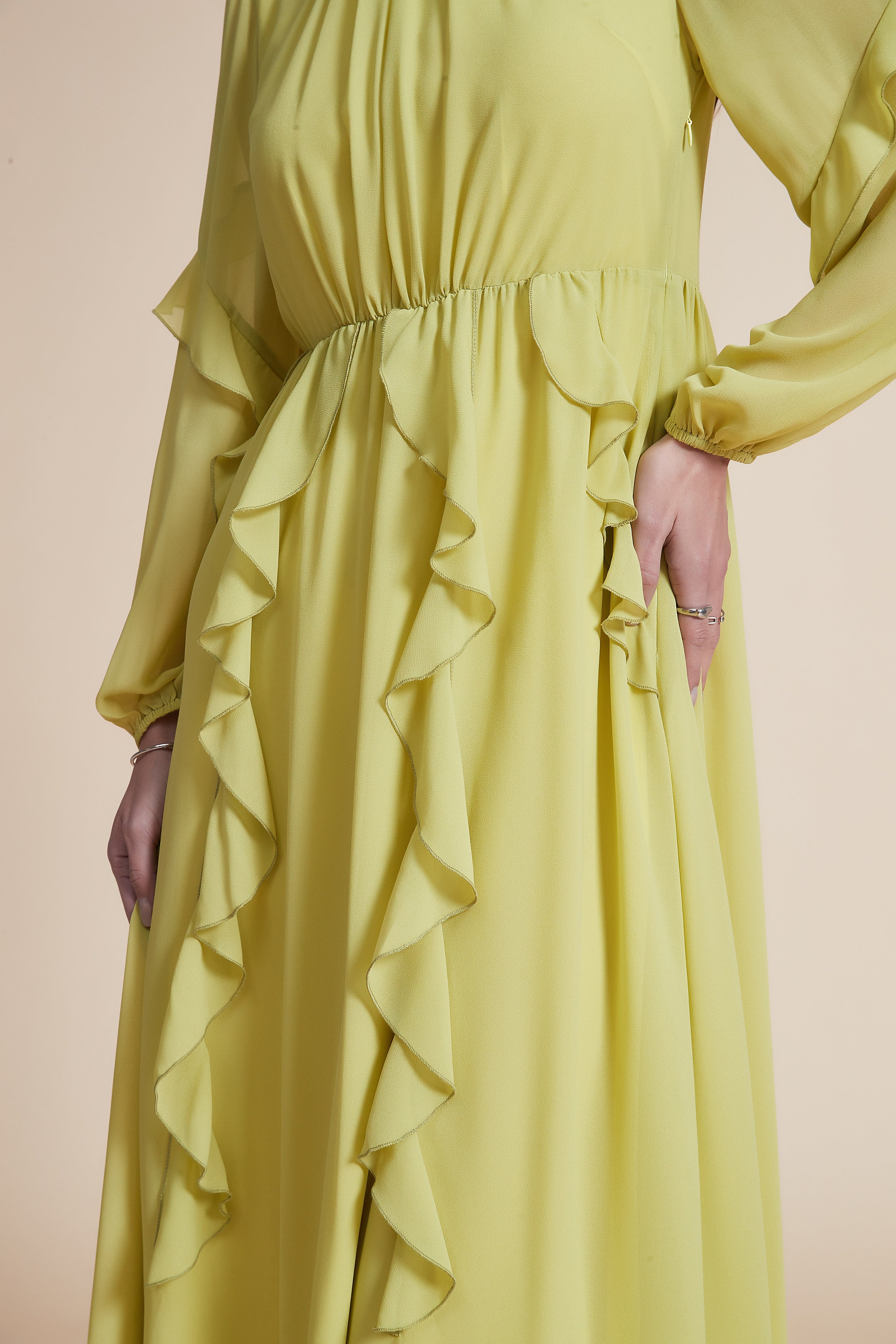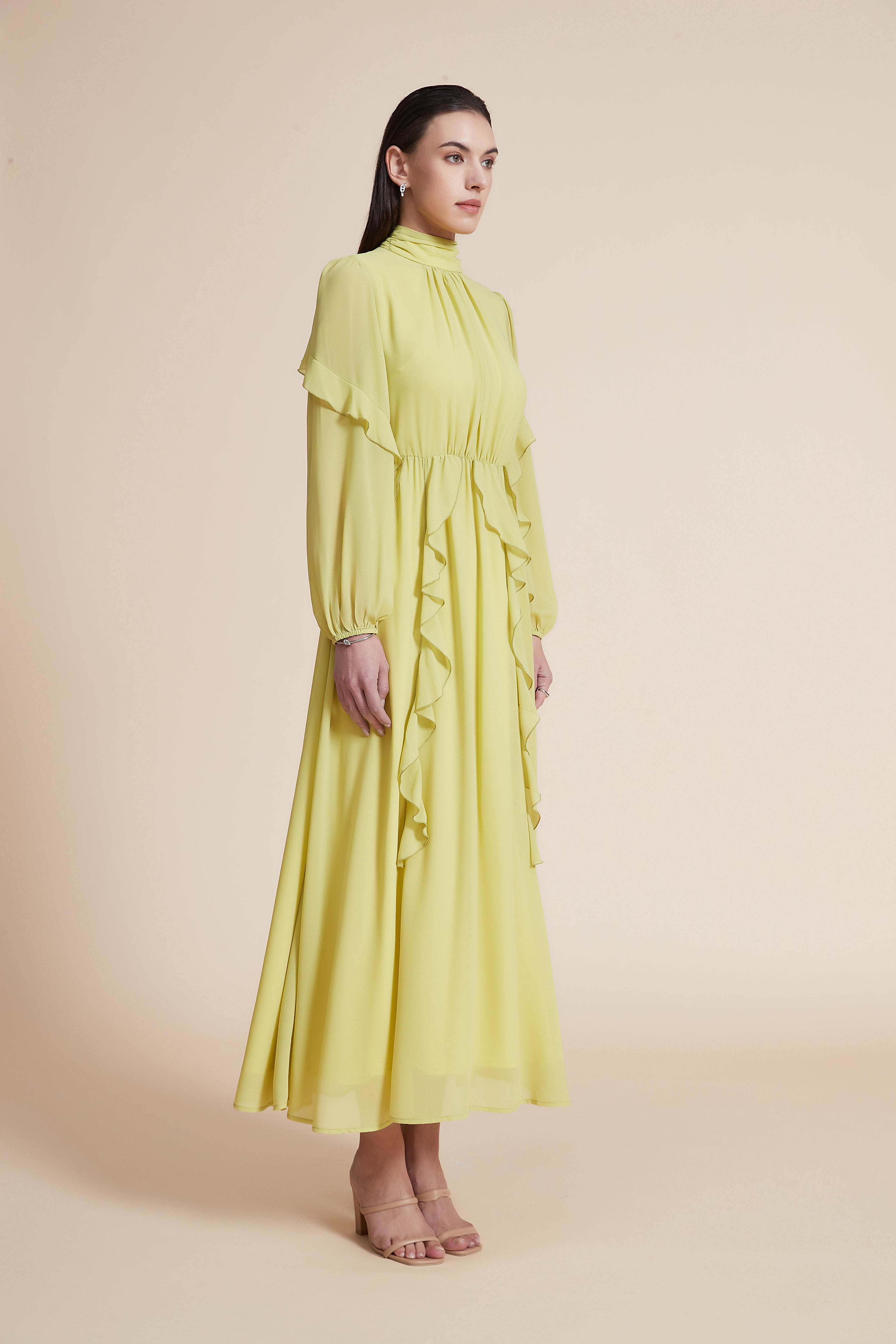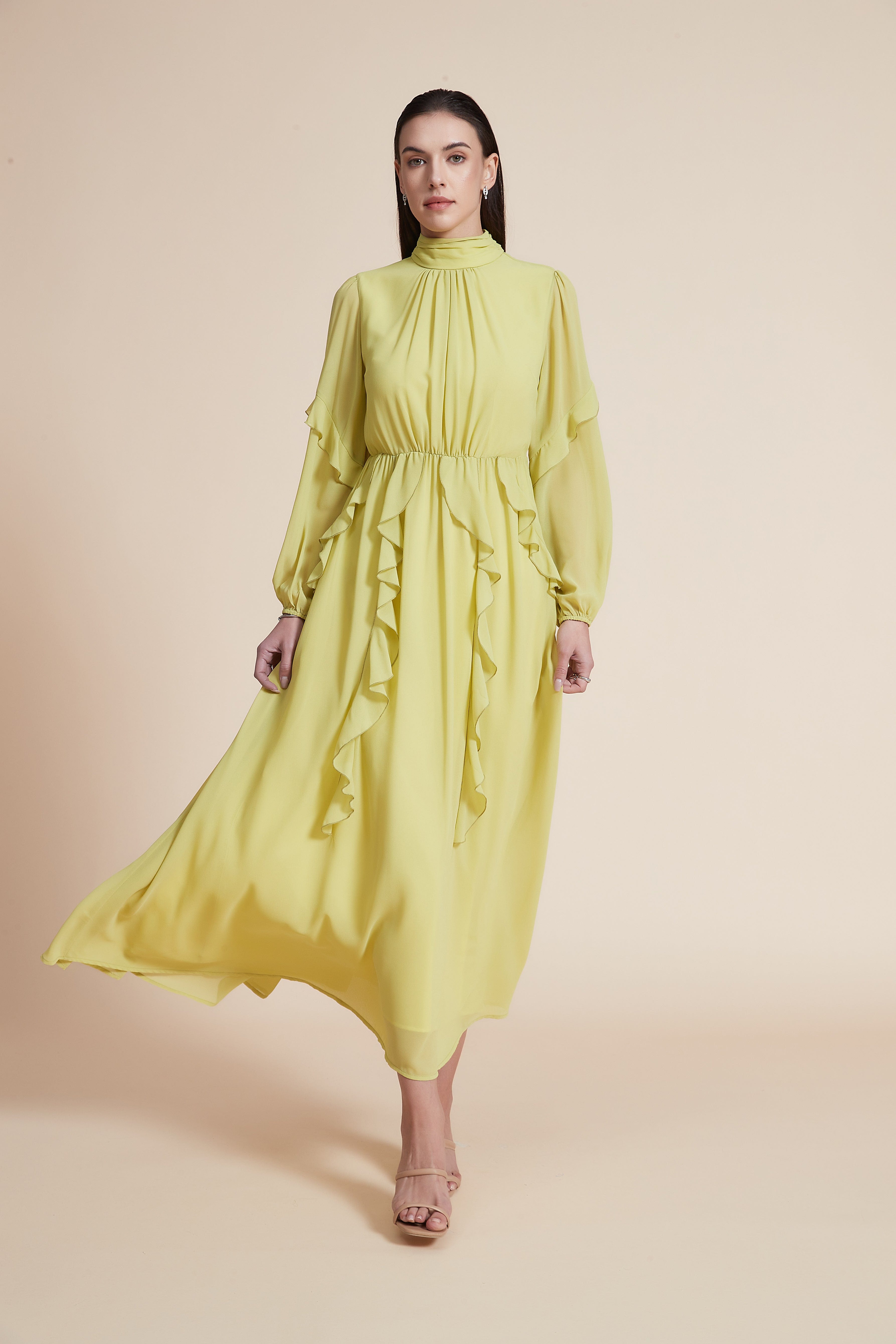لو تبحثين عن فستان أصفر يناسب الخروجات اليومية والمناسبات الخفيفة، هذا الفستان رائع وسيصبح من قطعك المفضلة. الخامة 100% بوليستر تمنحه متانة وسهولة في الغسيل مع ثبات اللون، وسماكته المتوسطة تجعله مناسباً لكل المواسم. بقصة A وماكسي الطول، يعطي انسيابية أنثوية ويمنح مساحة للحركة — ستحبين كيف يتحرك معك. ياقة عالية وأكمام طويلة تضيف لمسة محتشمة وأنيقة، والتفاصيل المكشكشة تضفي روحاً ناعمة على التصميم السادة. بلا بطانة وبدون جيوب وبدون حزام، القصة عادية تسمح بتنسيقات متعددة؛ من الصنادل للنهار إلى حذاء بكعب خفيف للمساء. موجه للنساء البالغات الباحثات عن إطلالة كاجوال أنثوية ومريحة. اعثري على مقاسك في فاشن السعودية وأضيفي هذه القطعة المتنوعة إلى خزانة ملابسك اليوم.