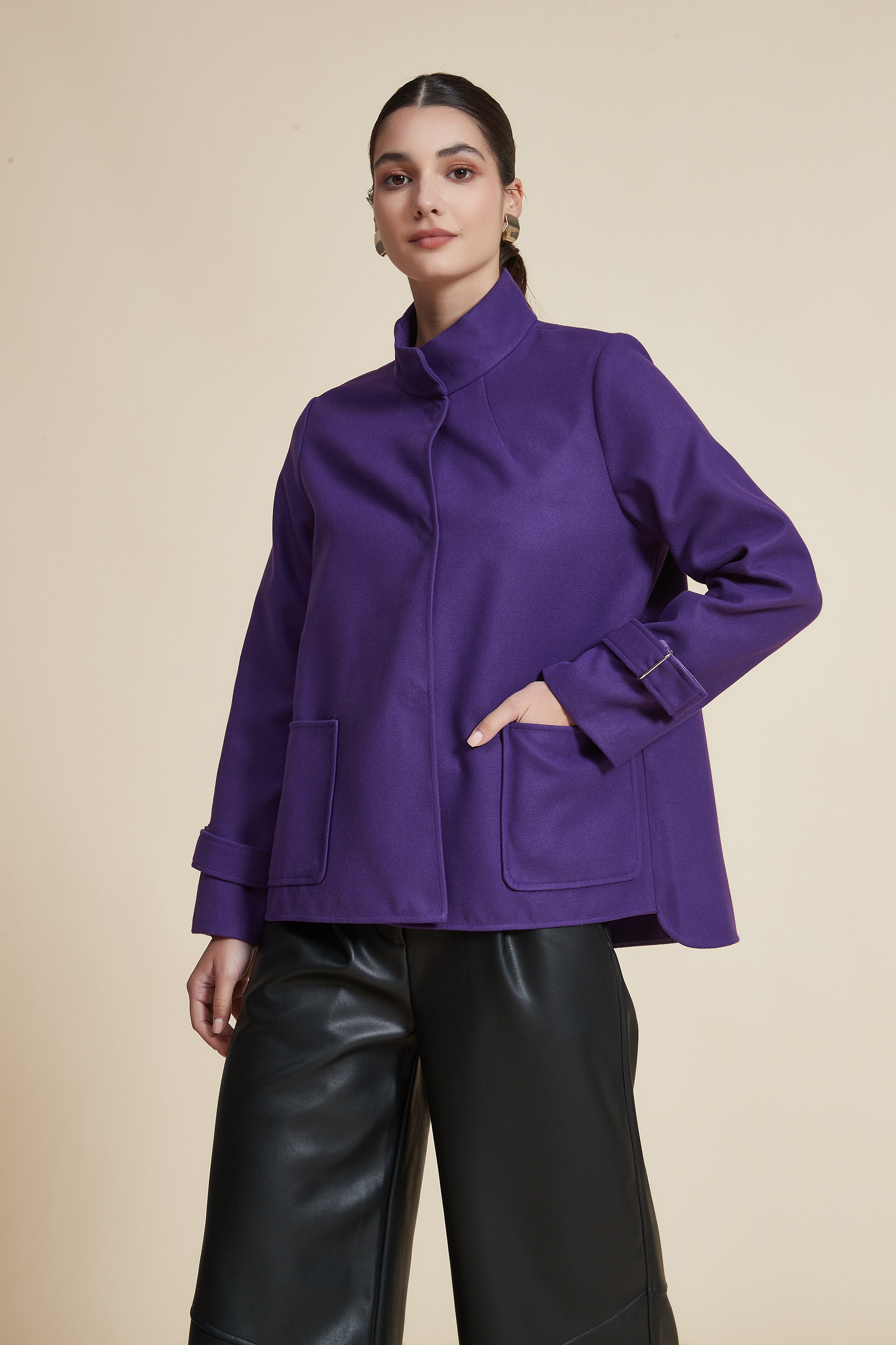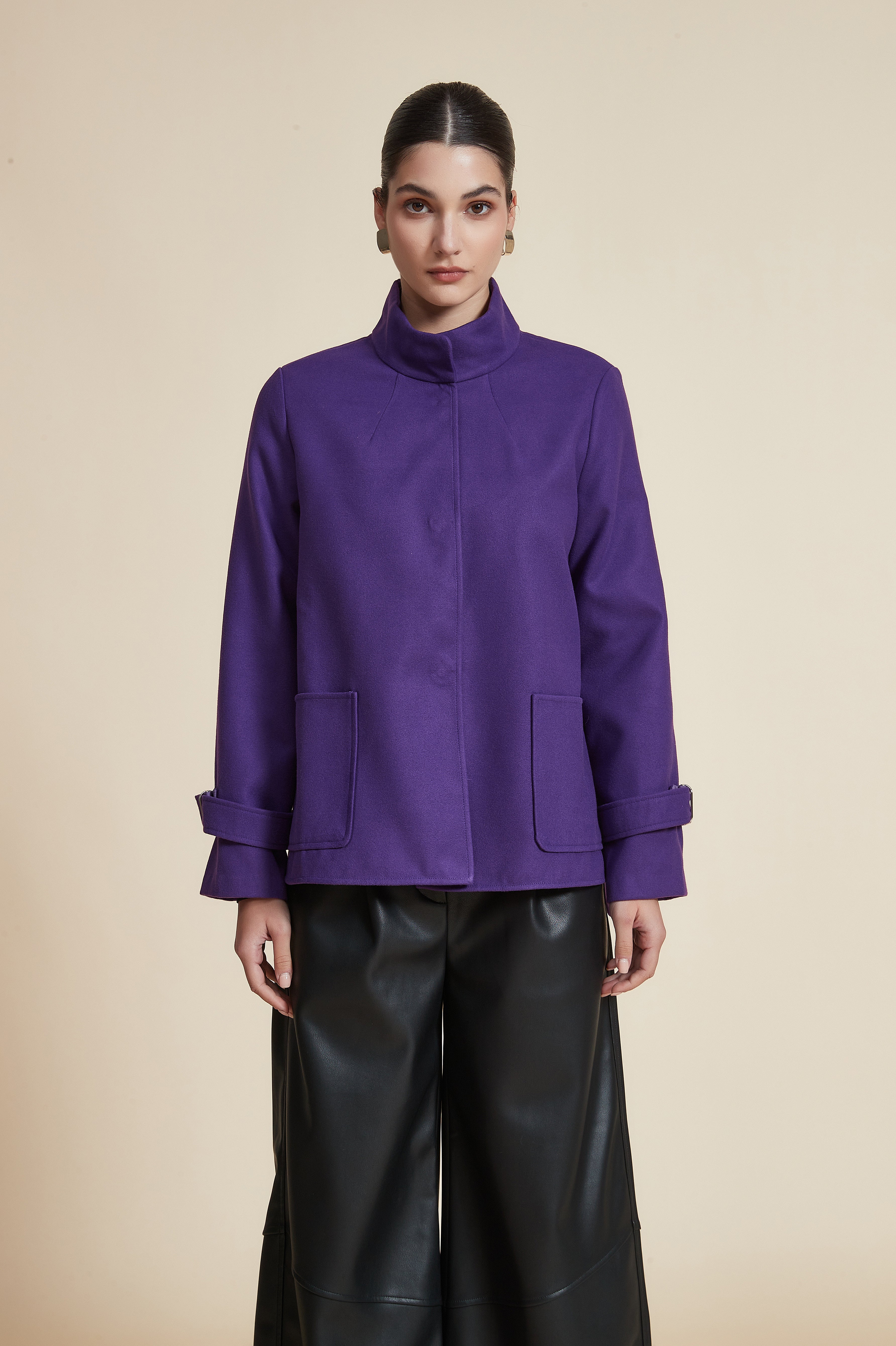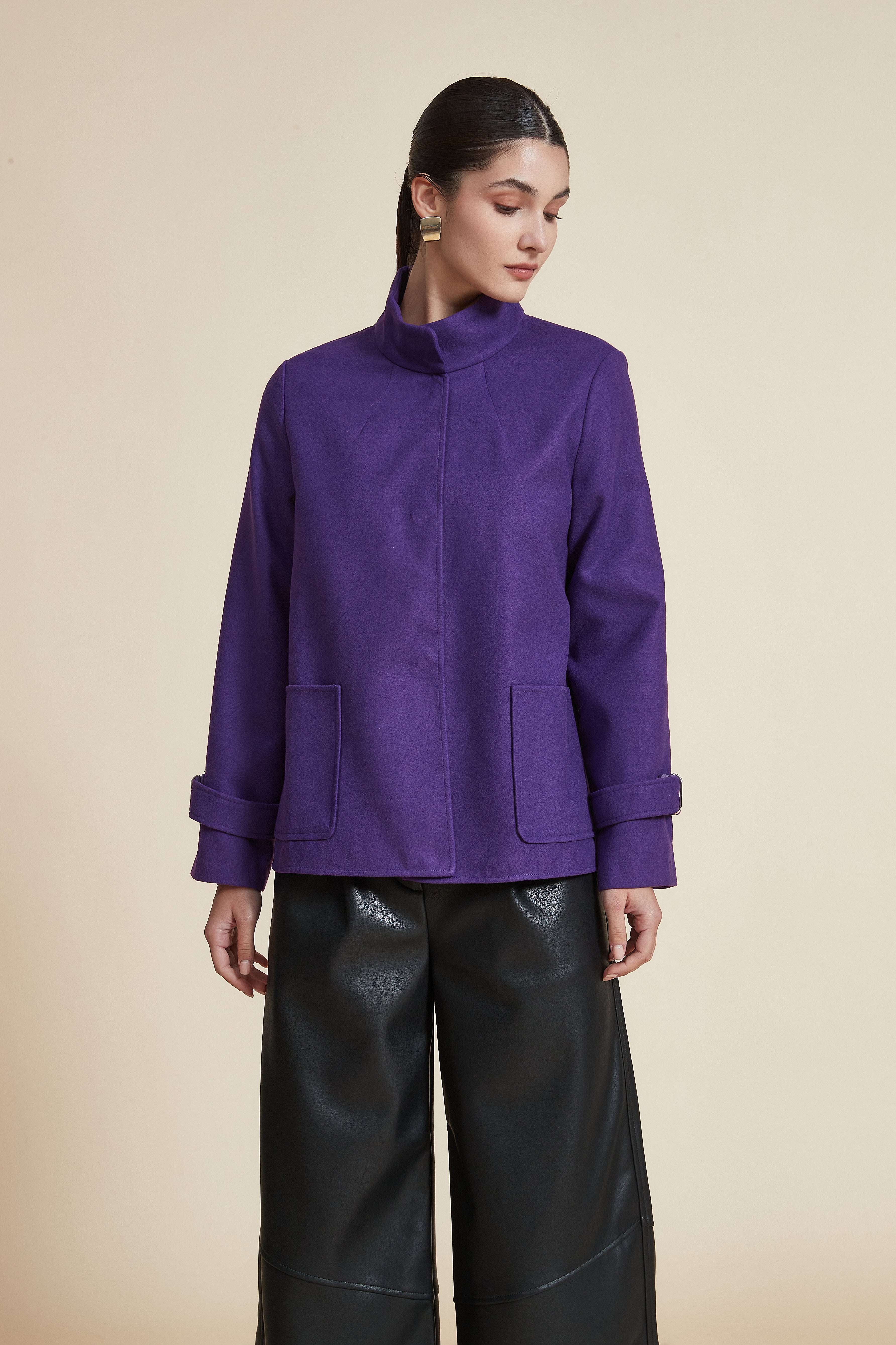 جاكيت بطول الخصر سادة بكم طويل وفتحة فتحة رقبة مرتفعة