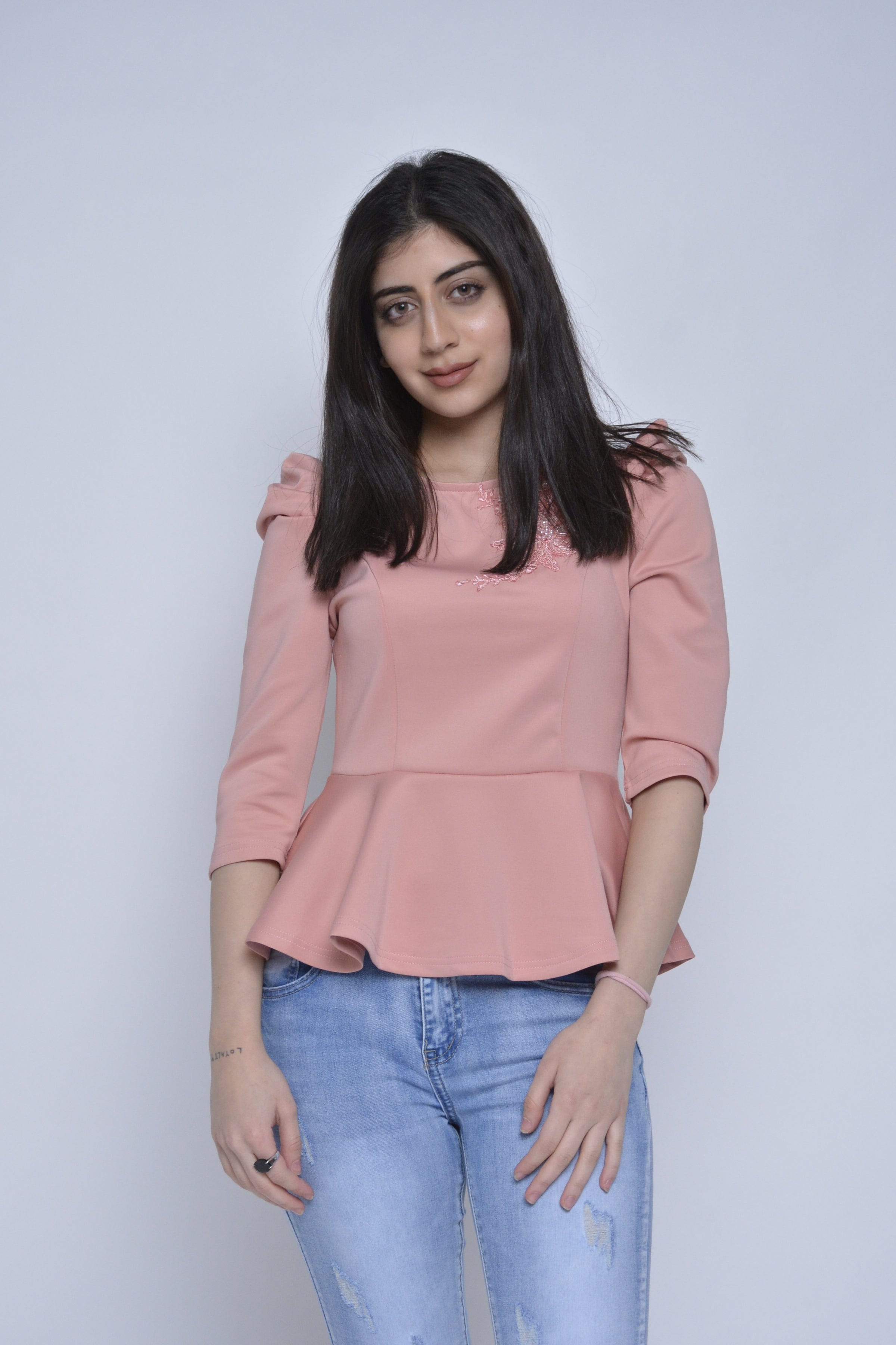 تألقي في مناسباتك الرسمية مع بلوزة فورمال مخصرة مكشكشة من أسفل 3/4 كم نسائي. تتميز هذه البلوزة بتصميمها المذهل الذي يبرز جمال قوامك ويضفي لمسة أنثوية راقية. تتميز بأكمام قصيرة تصل إلى الكوع وتفصيلة مكشكشة جميلة من الأسفل. صُممت هذه البلوزة بعناية فائقة لتوفر لك الراحة والأناقة في آن واحد. تتوفر بعدة ألوان رائعة بما في ذلك الوردي والأبيض لتناسب ذوقك الفريد. احصلي على بلوزة فورمال مخصرة مكشكشة من أسفل 3/4 كم نسائي الآن وأبهري الجميع في مناسباتك القادمة. اطلبي الآن وتمتعي بالأناقة والرقي مع فاشن السعودية. رقم المنتج: zx2624-20q203