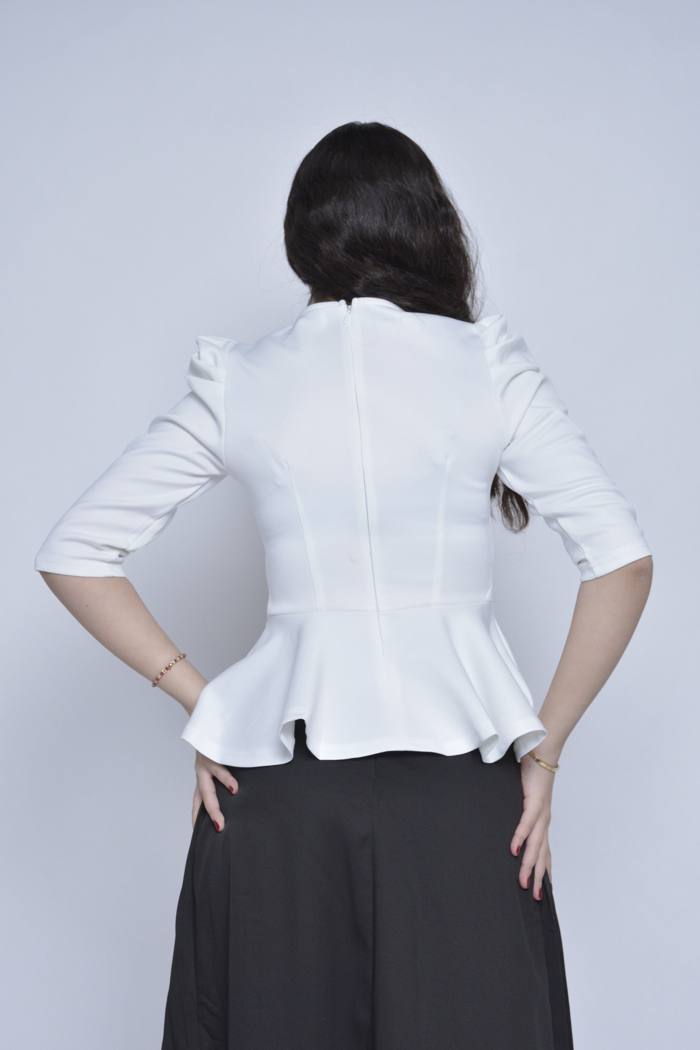 بلوزة فورمال مخصرة مكشكشة من أسفل 3/4 كم نسائي