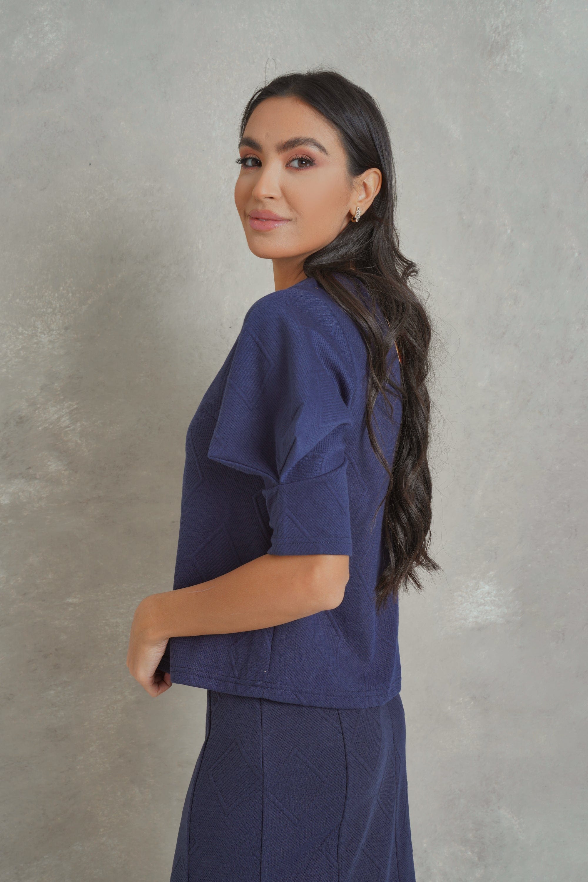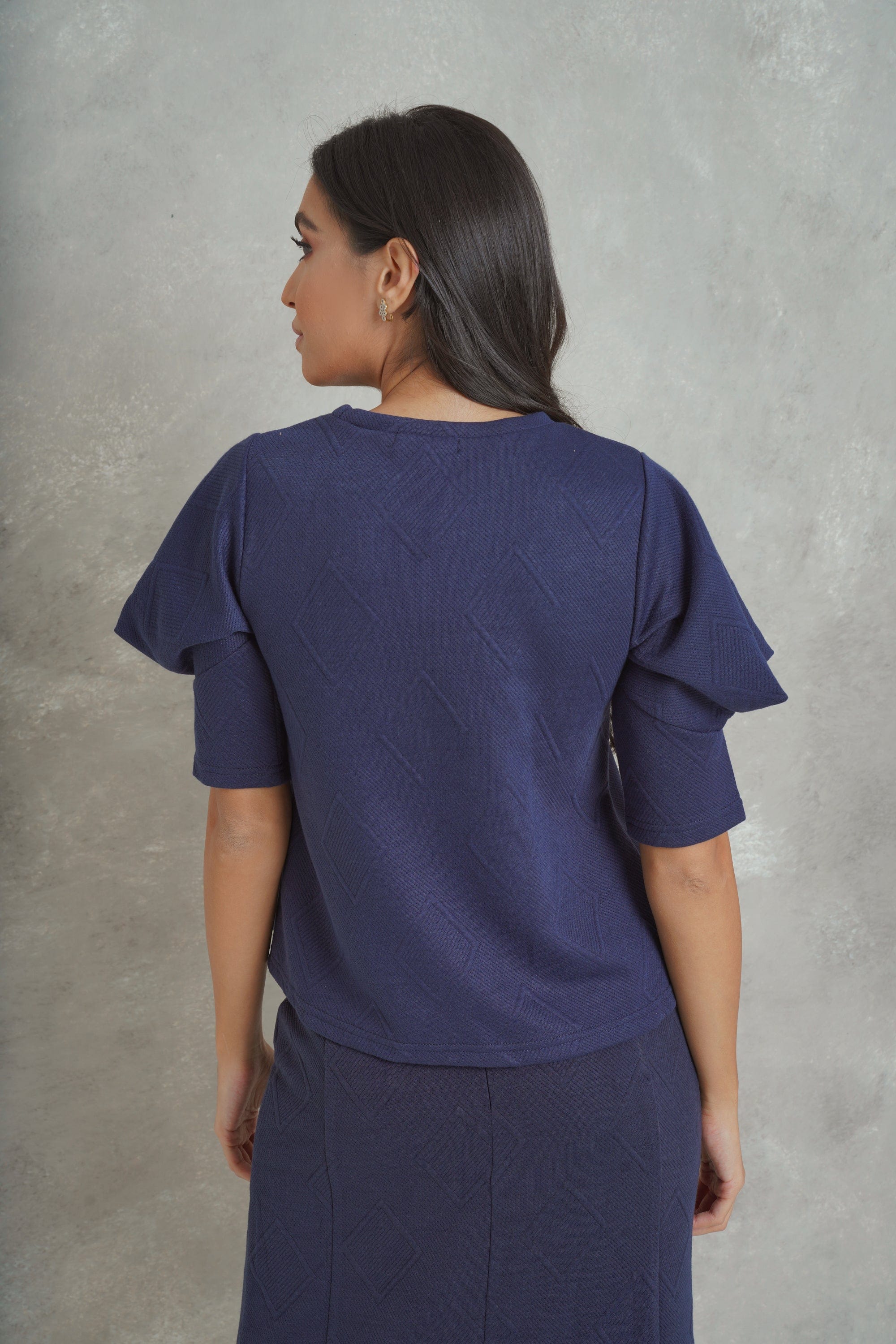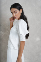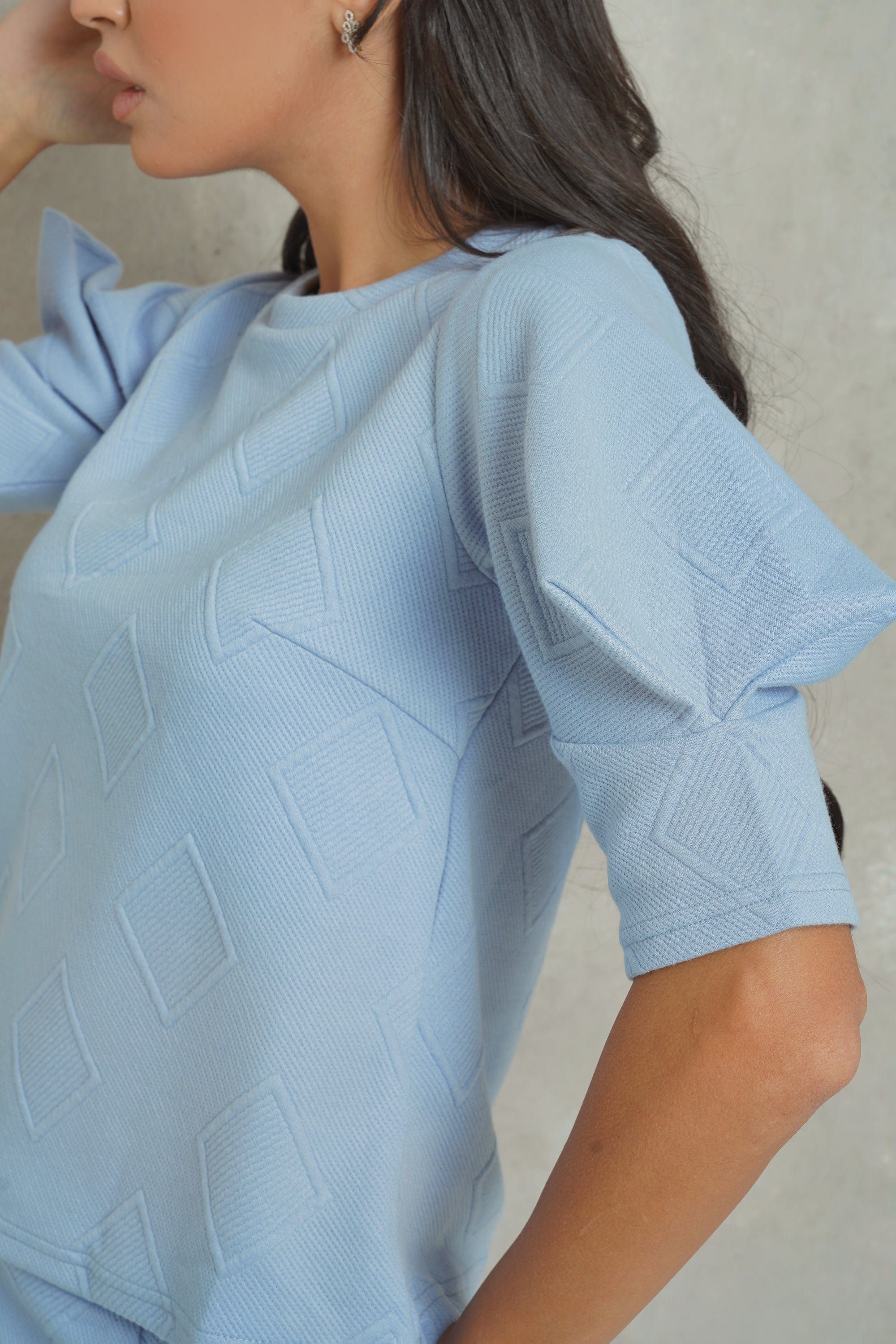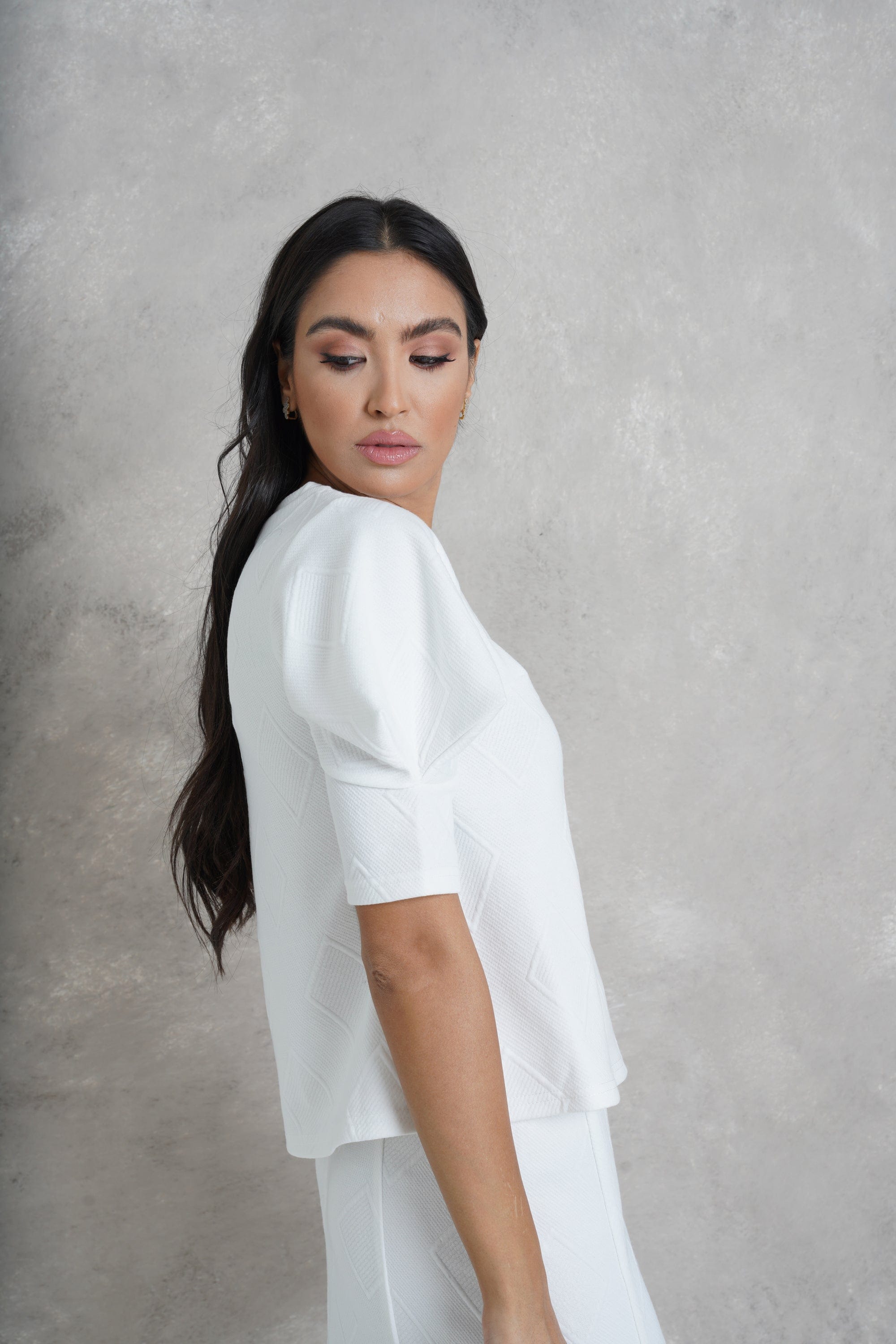 بلوزة كلاسيك سادة بتطريز بارز نص كم منفوخ