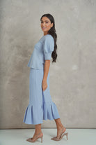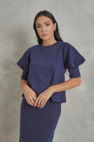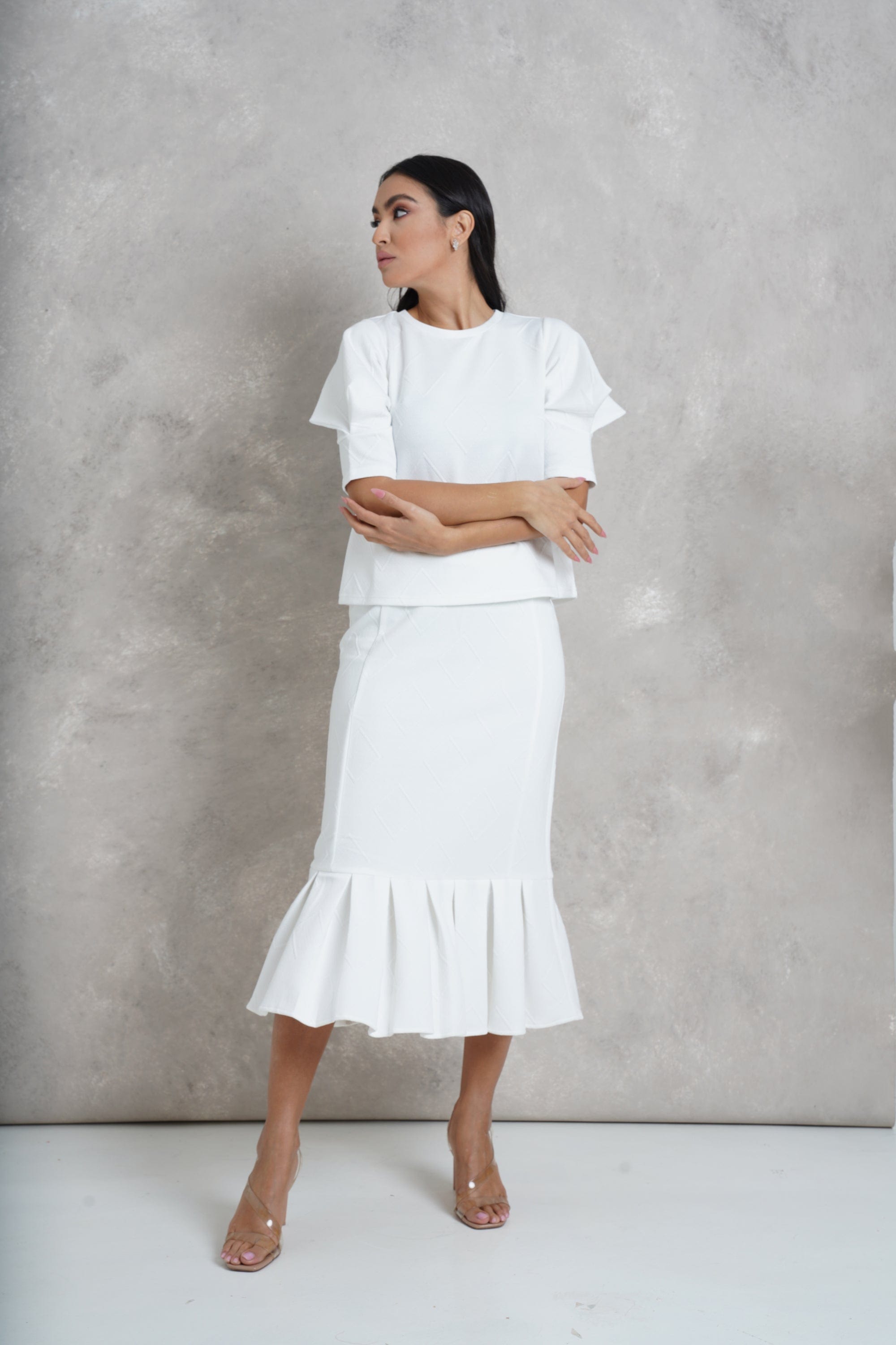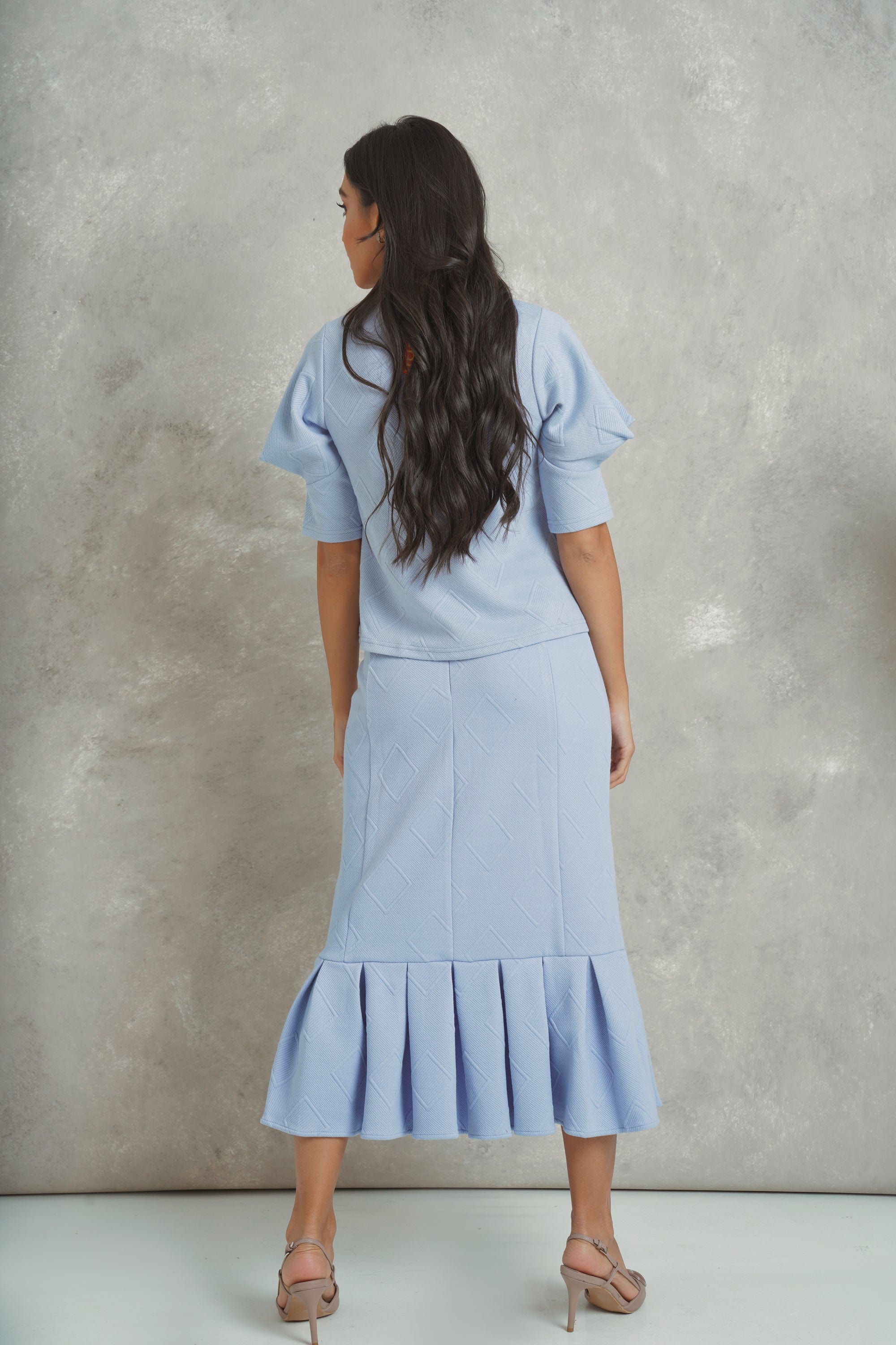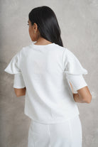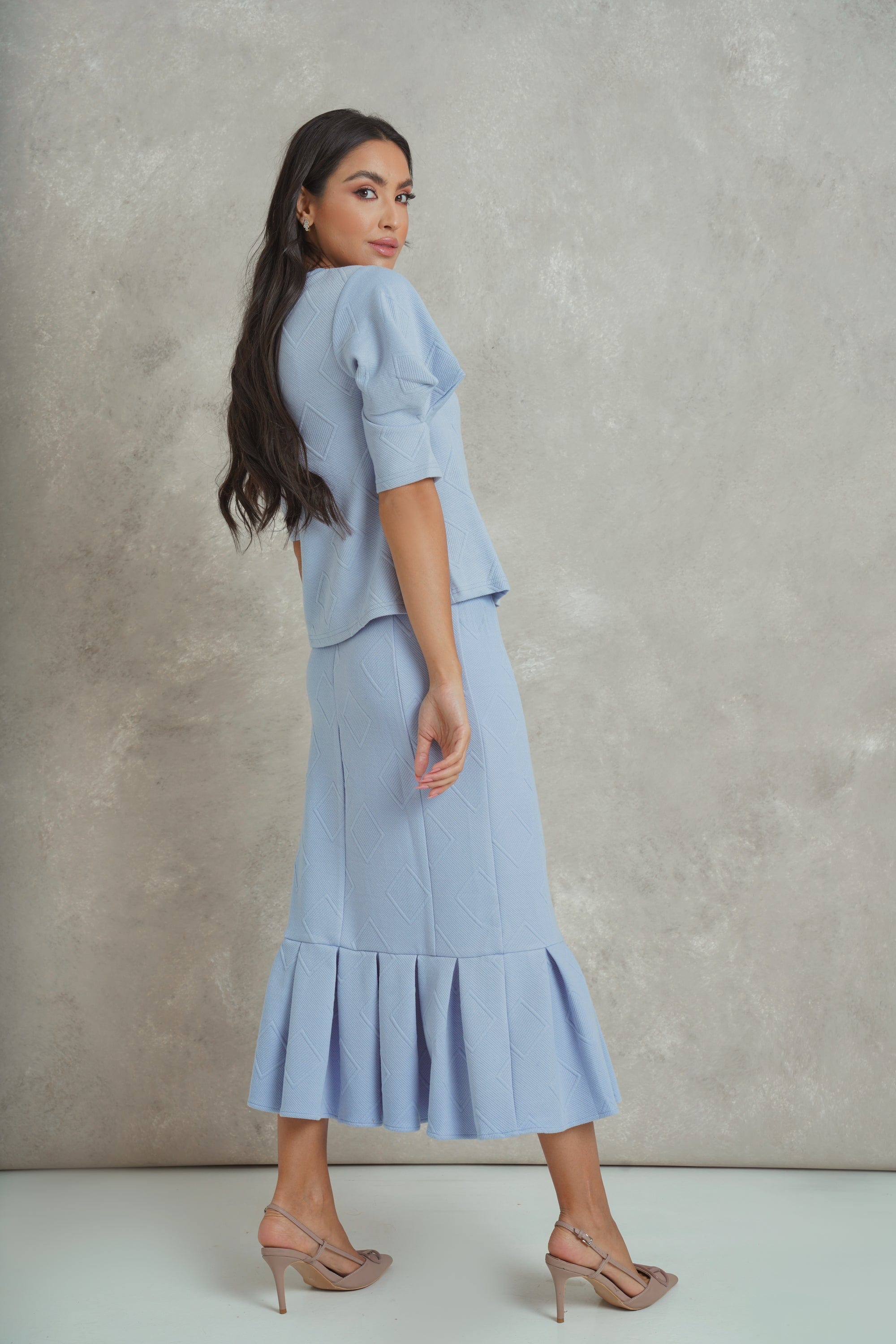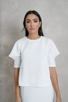 بلوزة كلاسيك سادة بتطريز بارز نص كم منفوخ